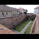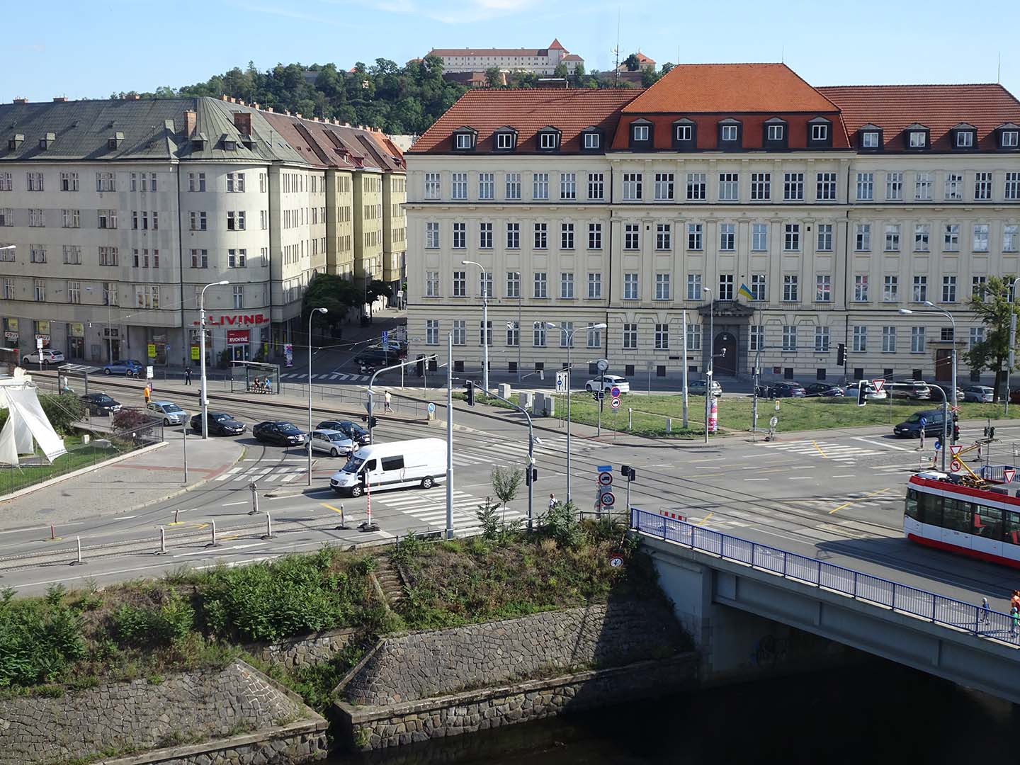 Blick aus dem Frühstückssaal unseres Hotels auf die Festung Špilberk Wo?Nach Rechtsklick