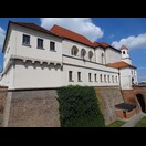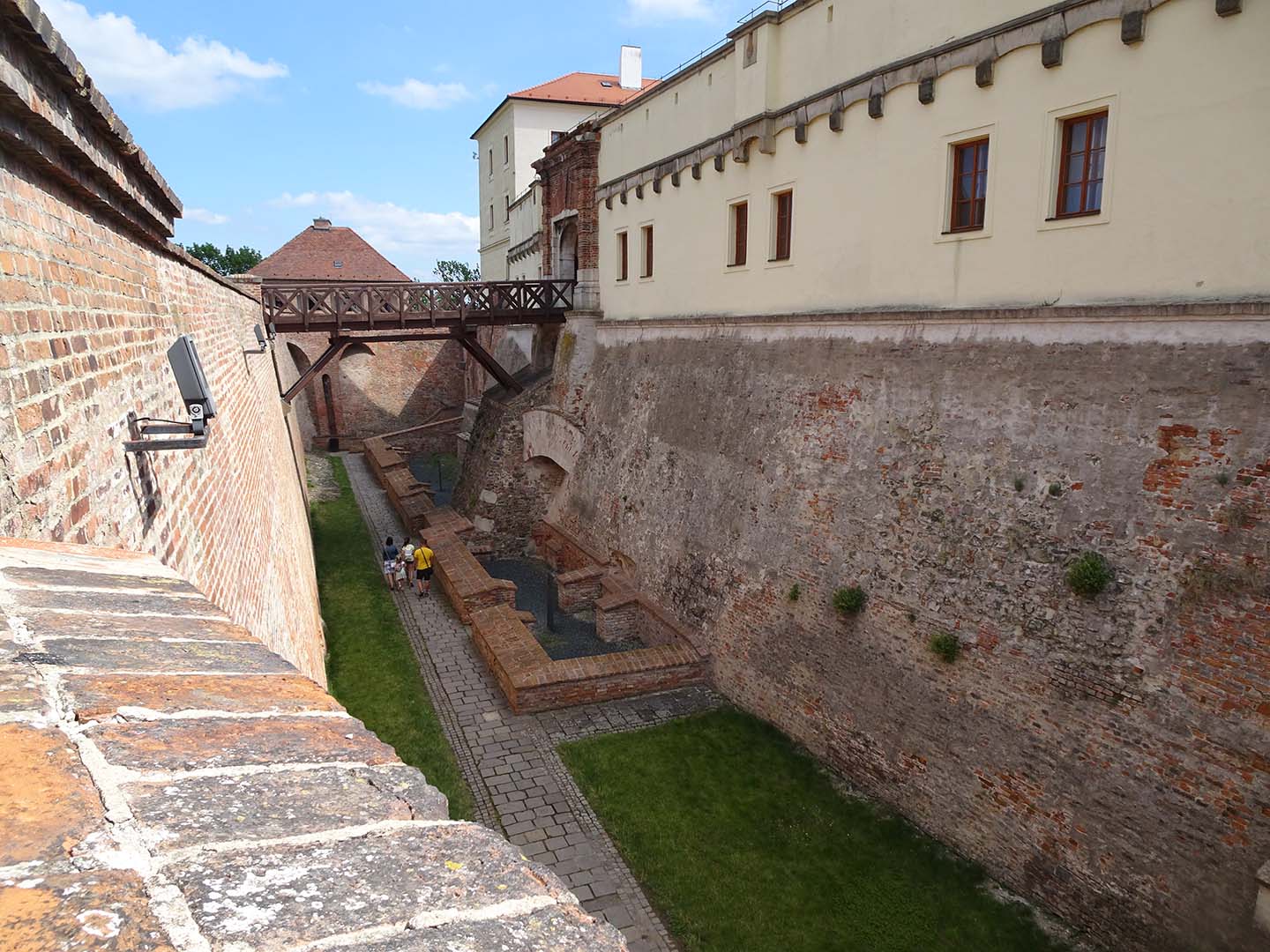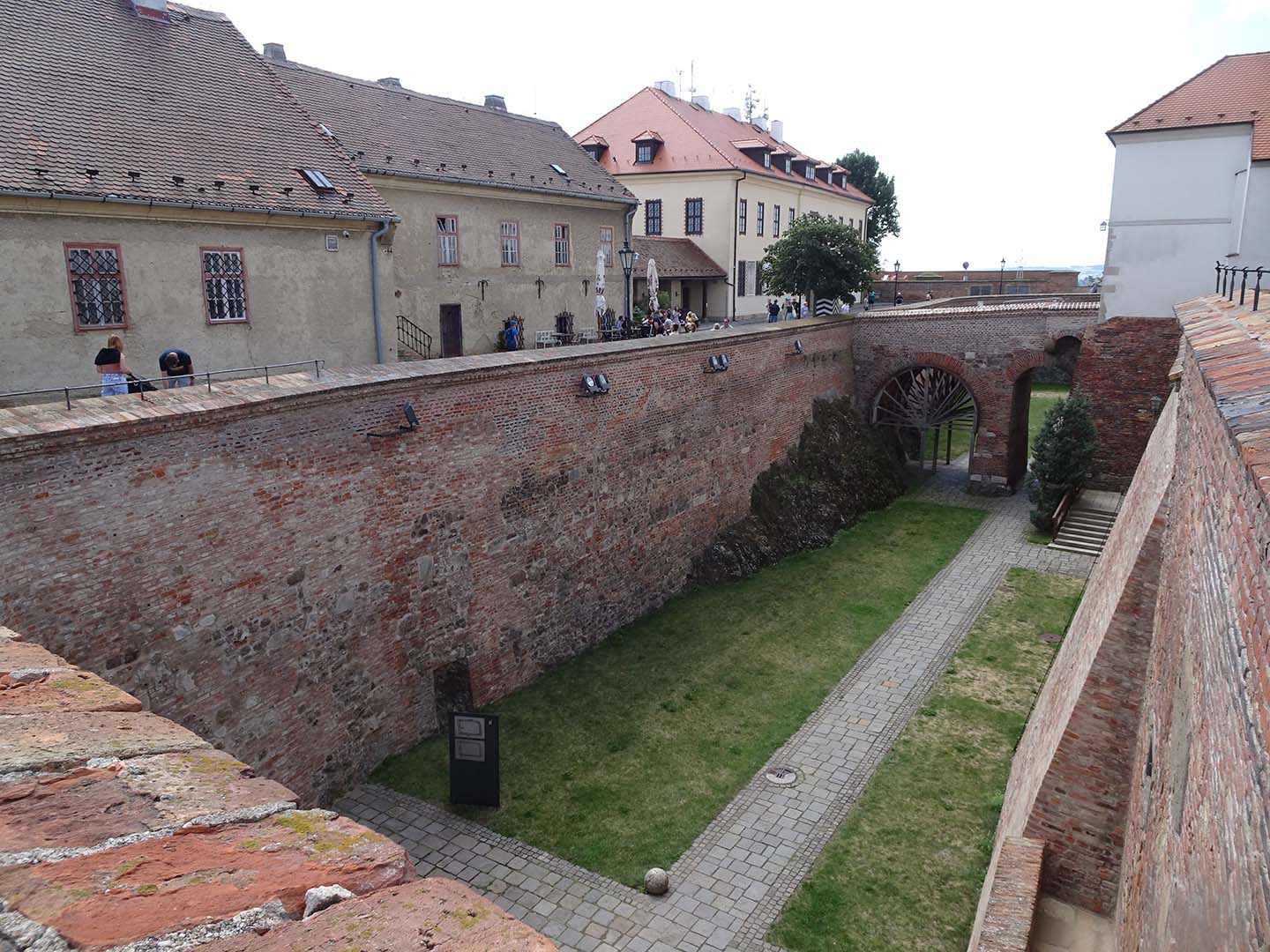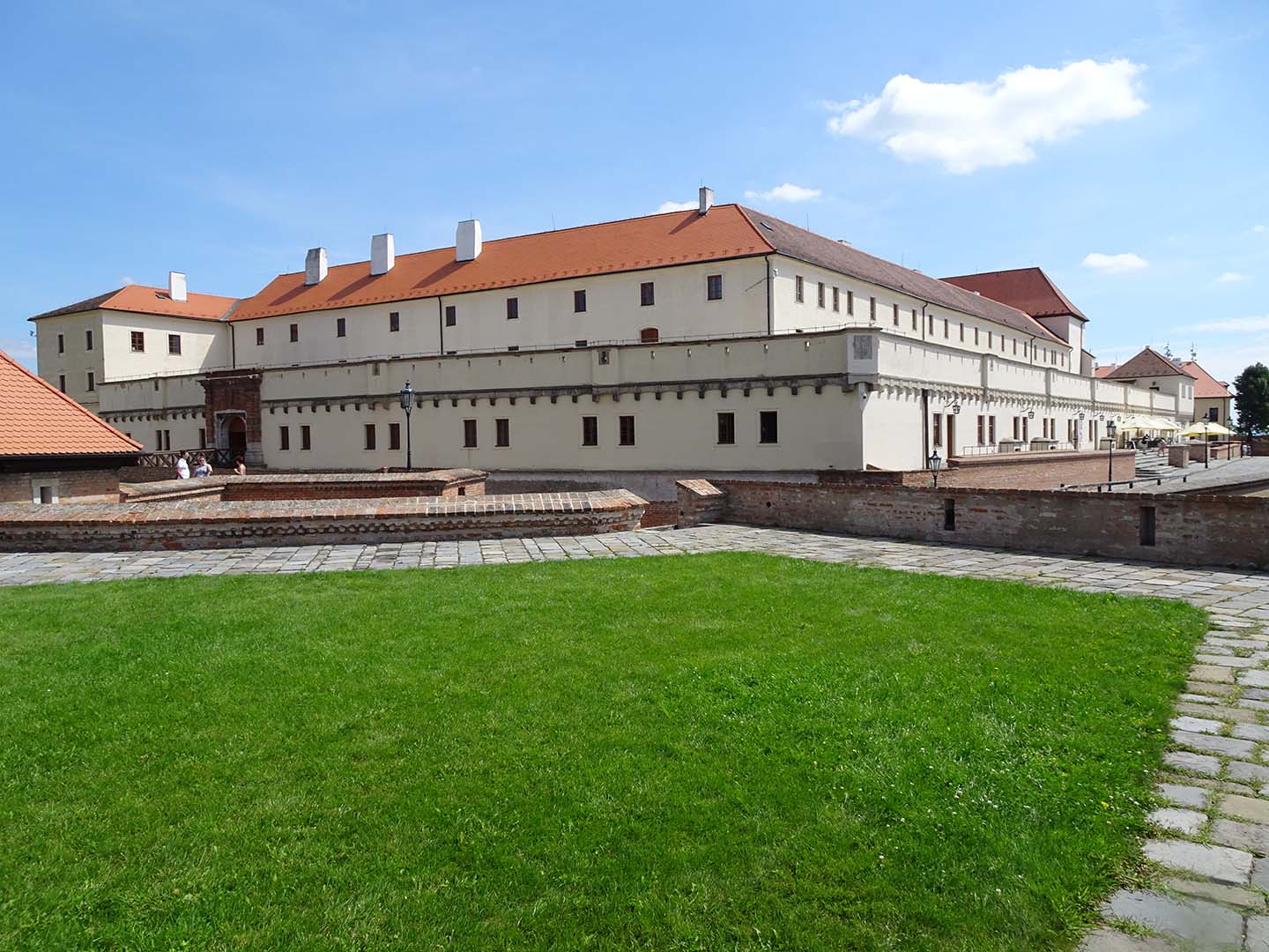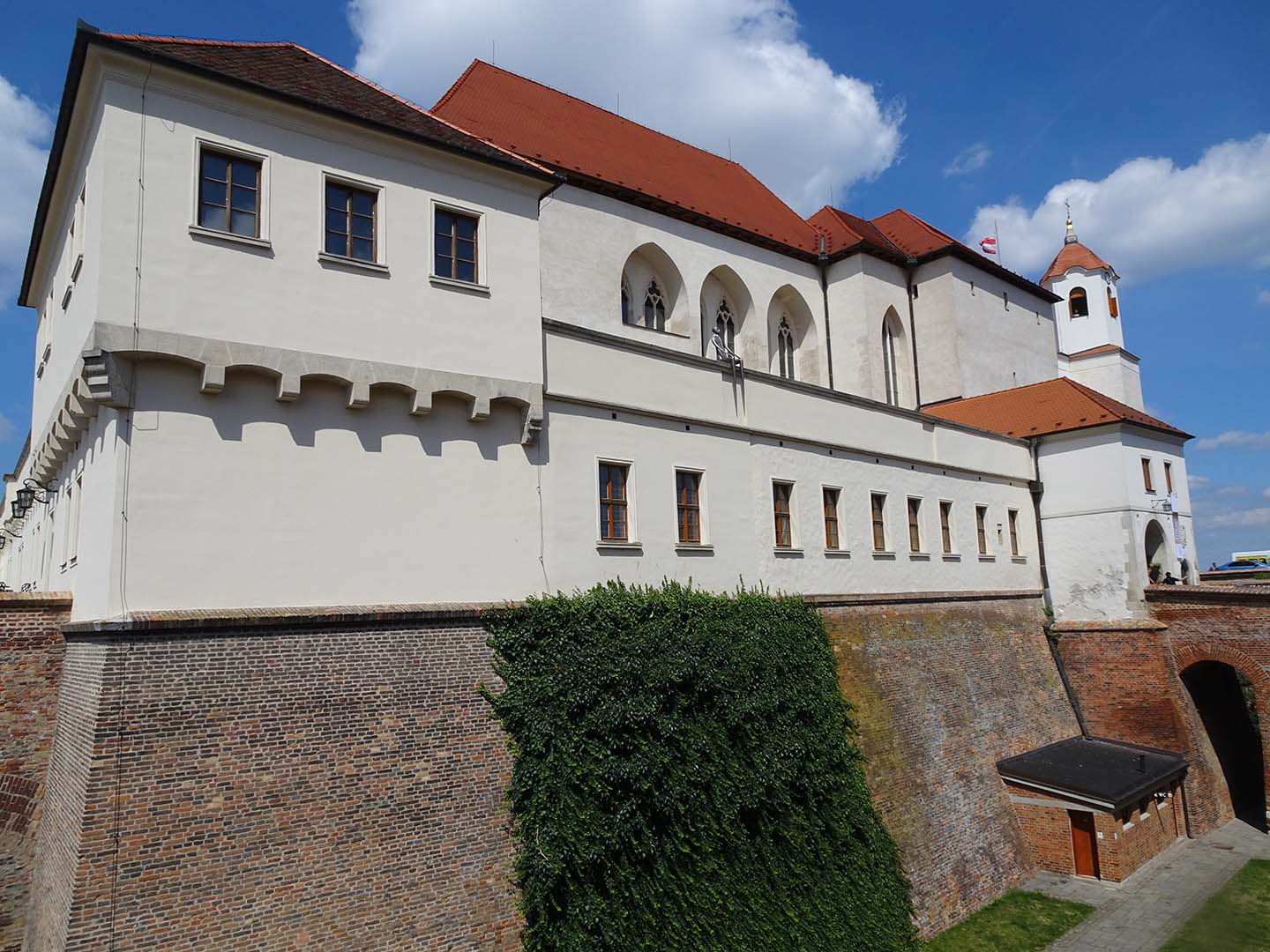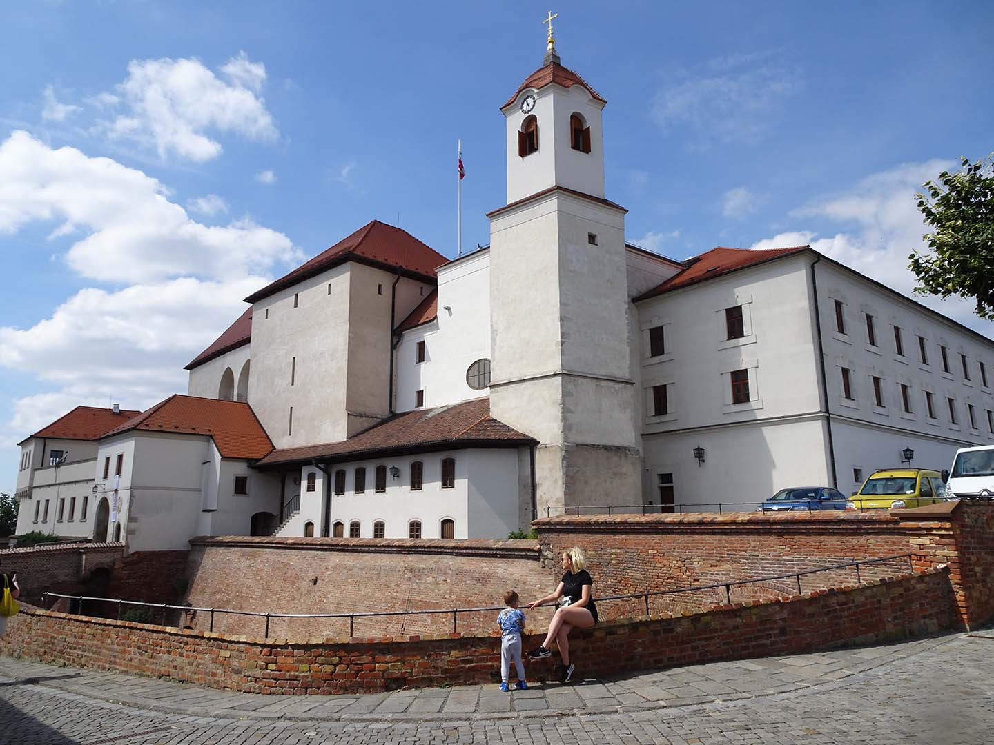 Wie vom Wetterbericht angekündigt, regnete es gestern und wir nutzten die Zeit u. a. zur Planung der weiteren Route. Heute schien wieder die Sonne und wir konnten unser Besichtigungsprogramm mit dem Besuch der Festung Špilberk beginnen. Von der auf einem Hügel liegenden Festung hat man einen guten Überblick über die an seinem Fuß liegende Altstadt und Brünn. Die nach den Plänen von Mies van der Rohe errichtete Villa Tugendhat hätten wir gerne besichtigt, mussten jedoch lernen, dass Termine Monate im Voraus gebucht werden müssen. Für uns, die meist nicht einmal wissen, wo wir uns in zwei Tagen aufhalten werden, eine schwer zu lösende Aufgabe. Also mussten wir uns mit dem Blick von der Festung auf die Villa begnügen.