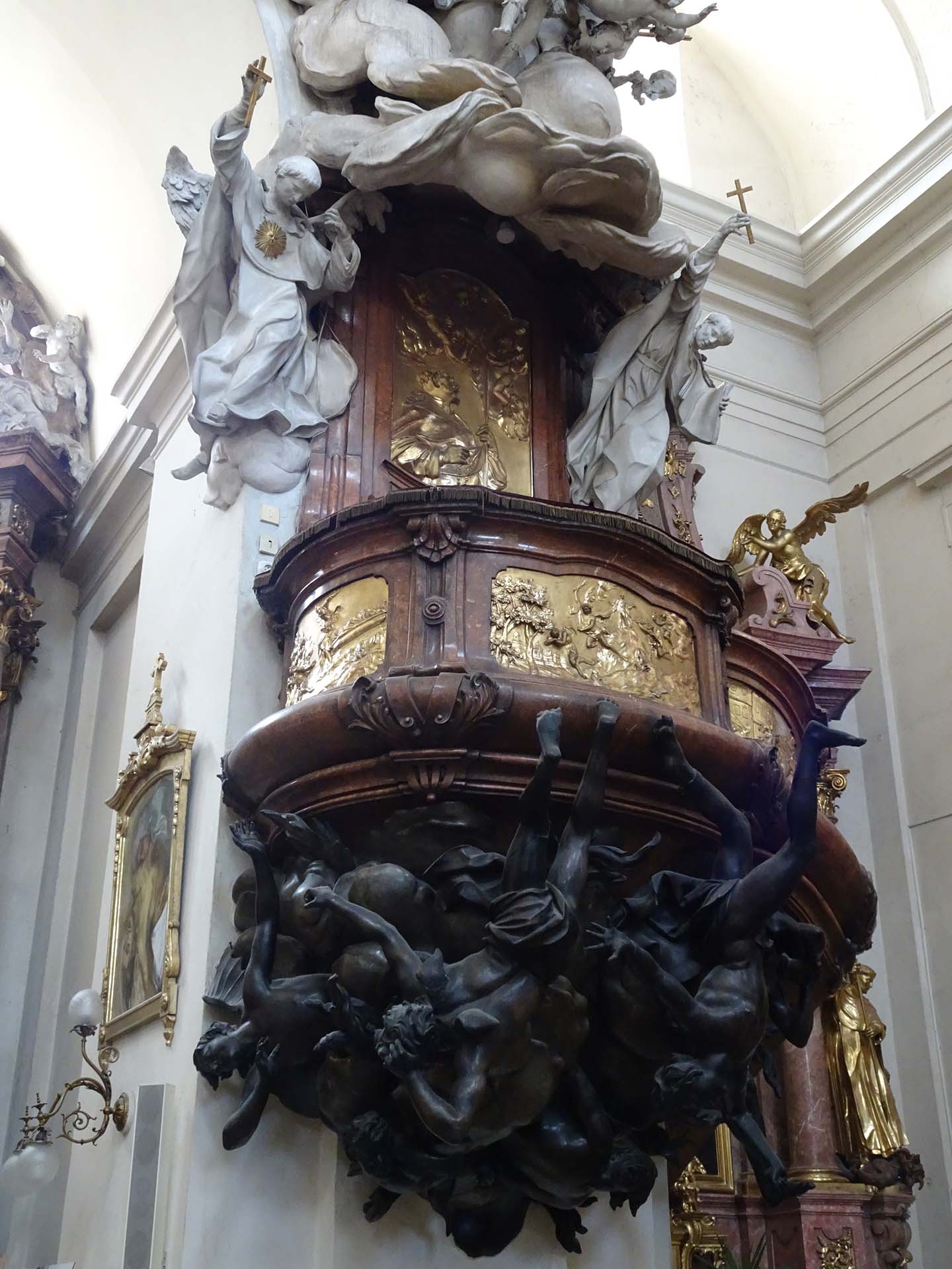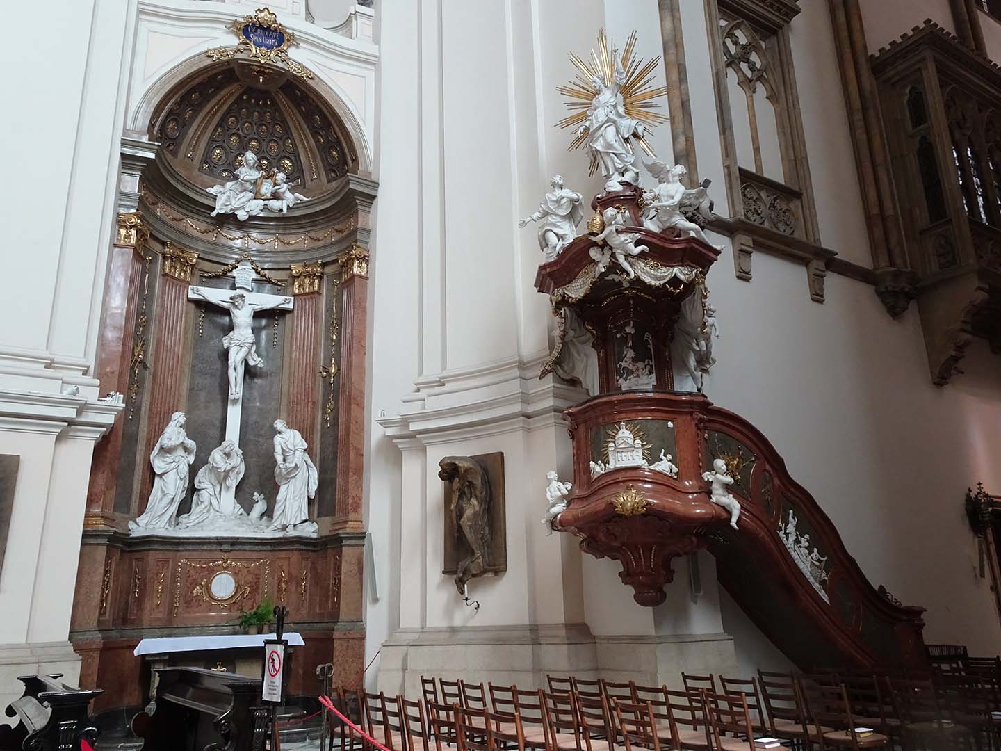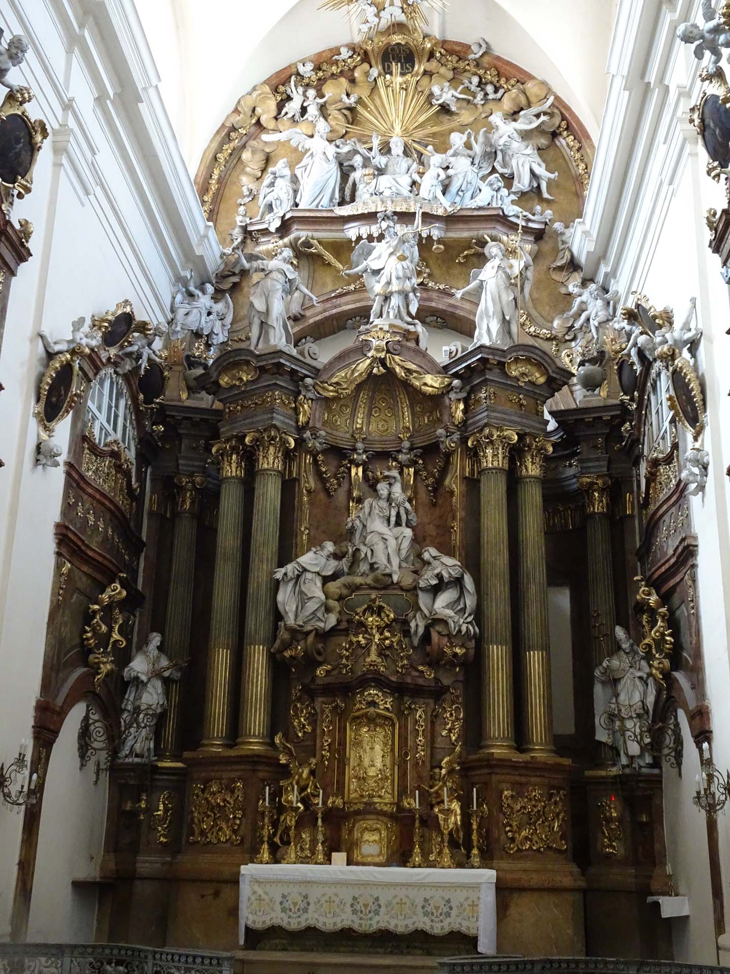 An der anschließend besichtigte Kathedrale St. Peter und Paul fiel uns besonders die bezogen auf die Länge große Breite des Kirchenschiffs auf. Wie in Prag finden sich auch in Brünn zahlreiche Gebäude mit schönen Fassaden, wenn auch nicht in der Anzahl und Dichte wie in der Hauptstadt. Dafür gibt es hier weniger Touristen und die, die hier sind, scheinen den Schwerpunkt nicht so sehr auf den Konsum des guten und günstigen tschechischen Bieres zu legen.