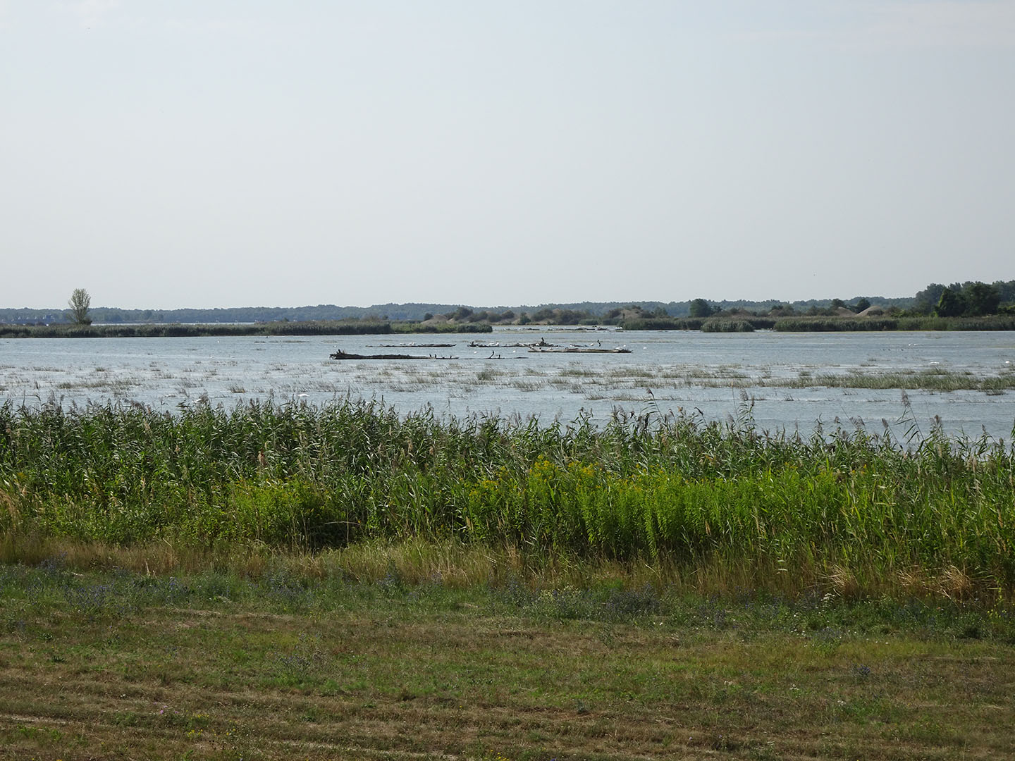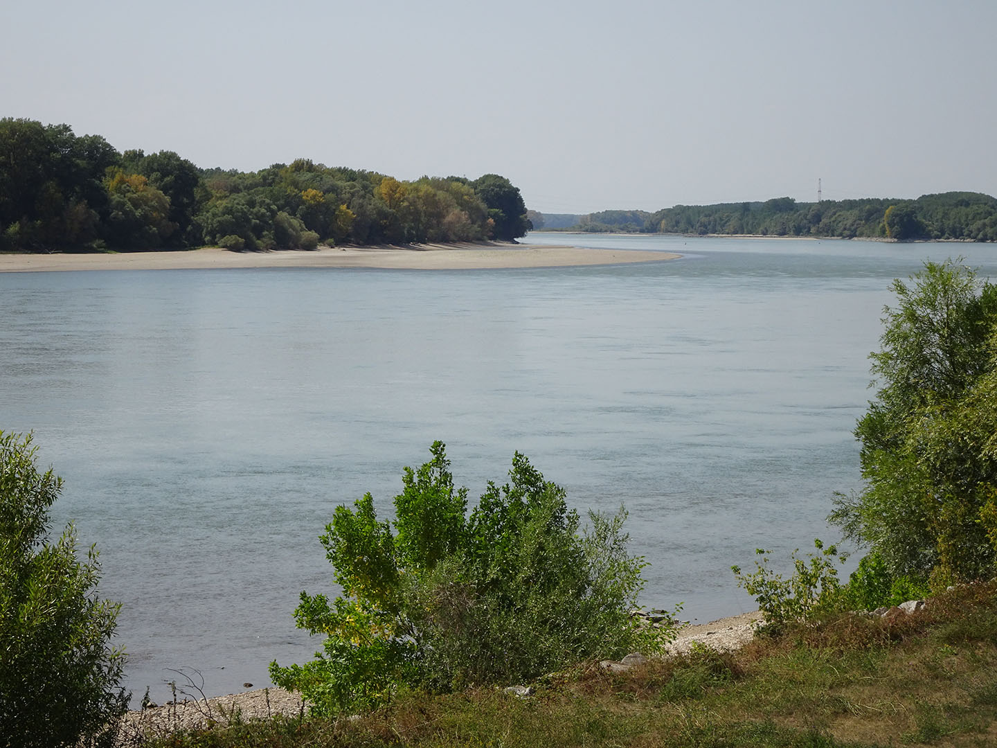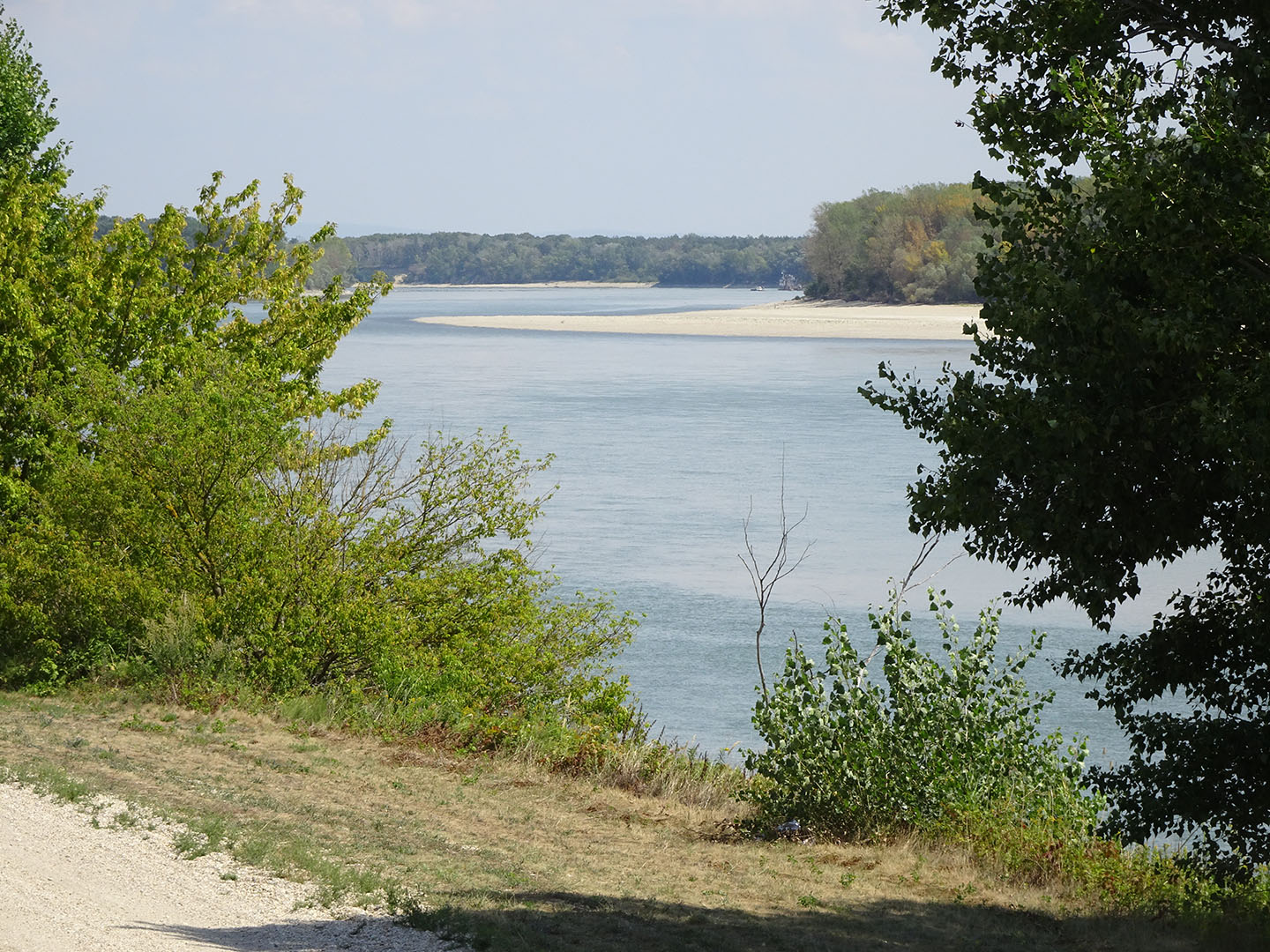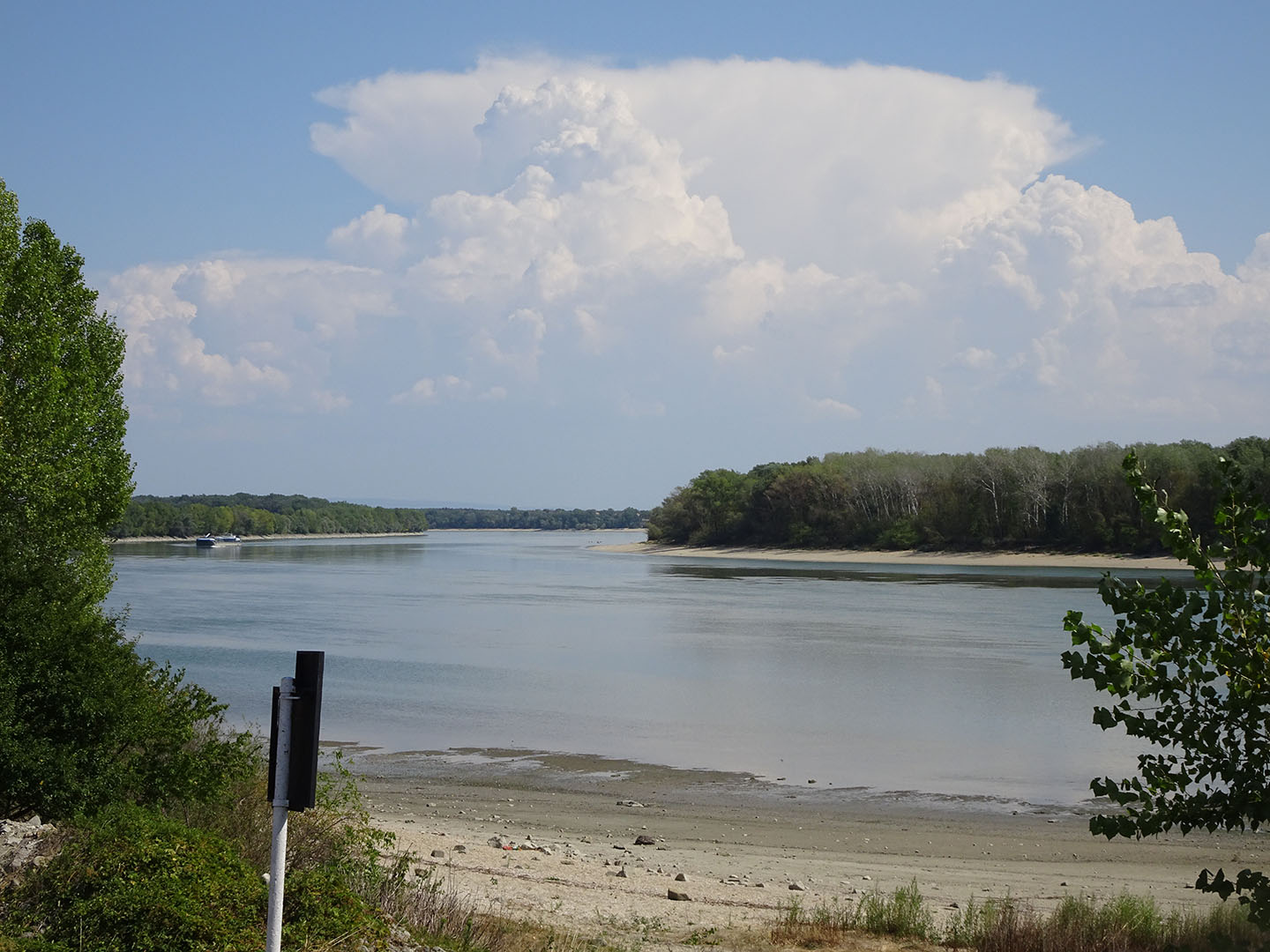 Wir hatten nicht erwartet, dass die seichten Stellen und die Uferzone dieser bedeutenden Wasserstraße so viel natürlichen Lebensraum bieten. Es wechselten sich stark mit Bäumen bewachsene Abschnitte mit breiten Sandstränden, Auwäldern, kanalisierten Abschnitten sowie seenartig verbreiterten Feuchtgebieten mit sehr vielen Wasservögeln ab. Die landeinwärts des Damms liegende Fläche wird meist landwirtschaftlich genutzt. Wir sahen nur wenig Bebauung und freuten uns, als wir zum Füllen unserer Wasserflaschen eine kleine Gaststätte in einer der wenigen Ortschaften in Flussnähe fanden. Anders als auf dem Elbe-/Laberadweg begegneten wir nur sehr wenigen anderen Radtouristen.