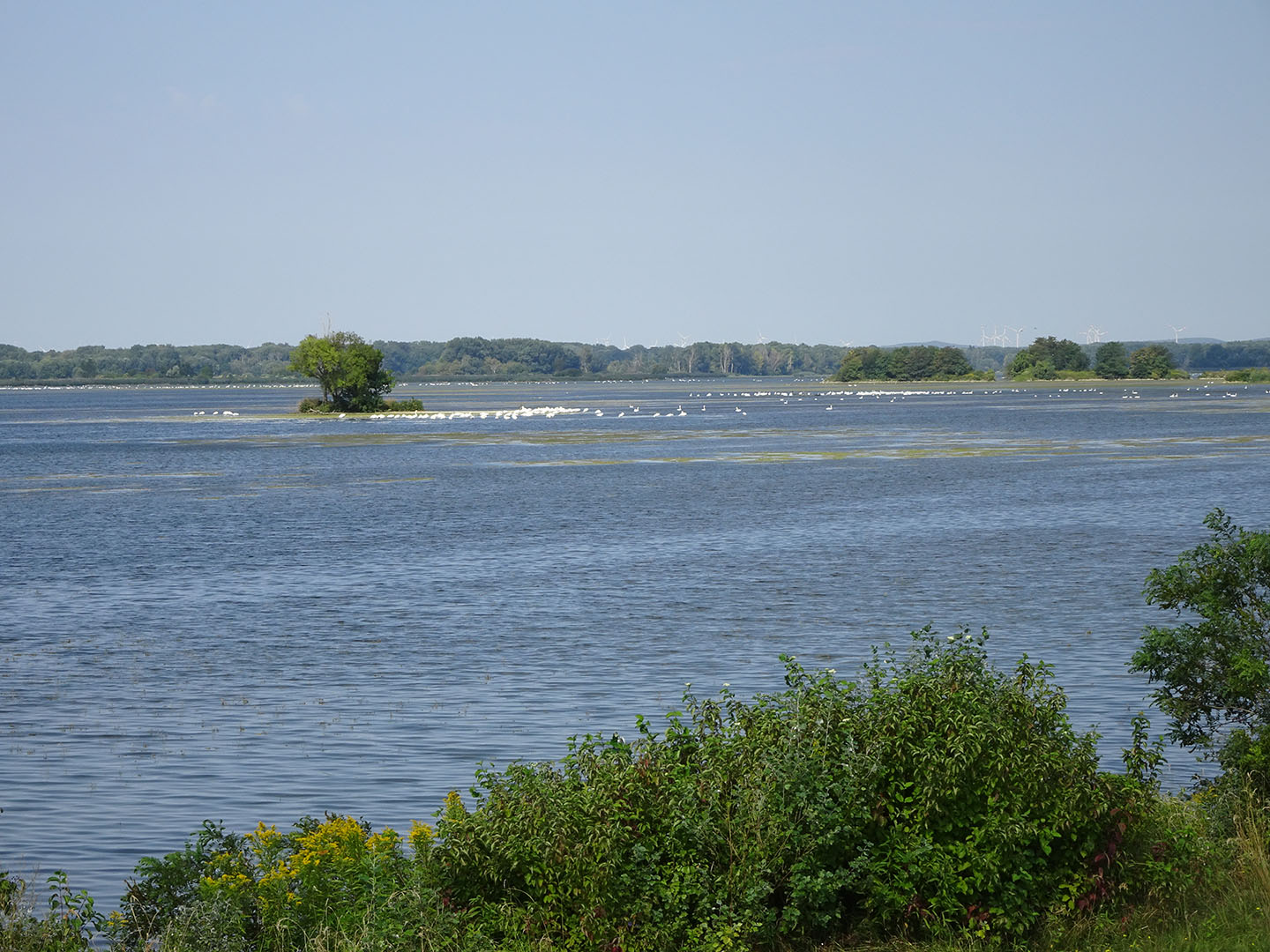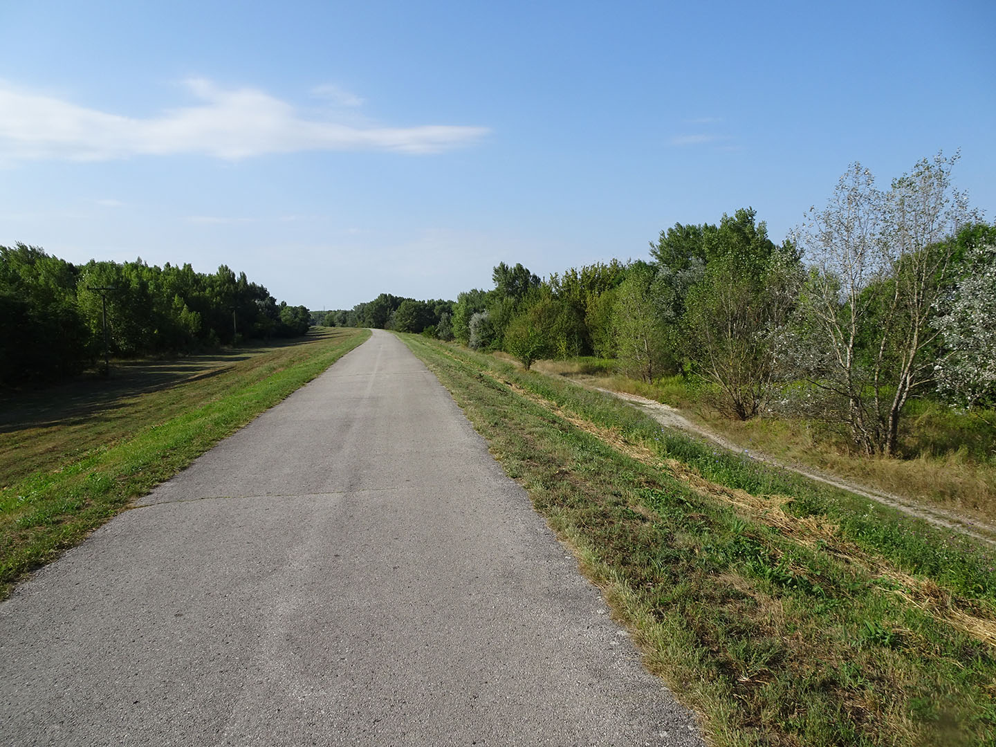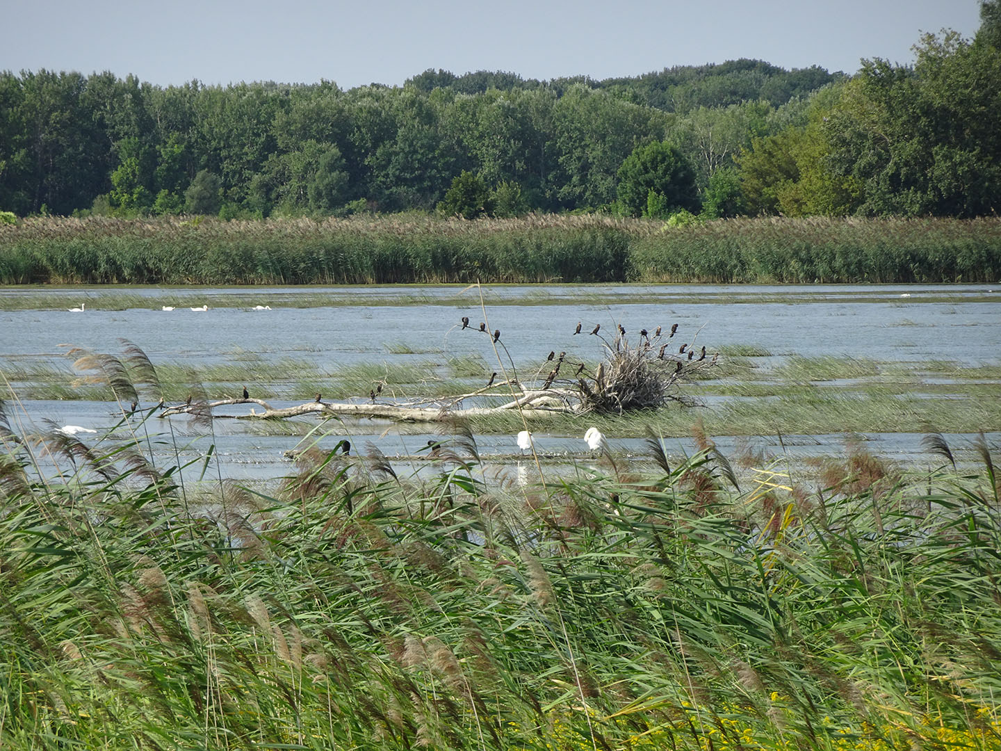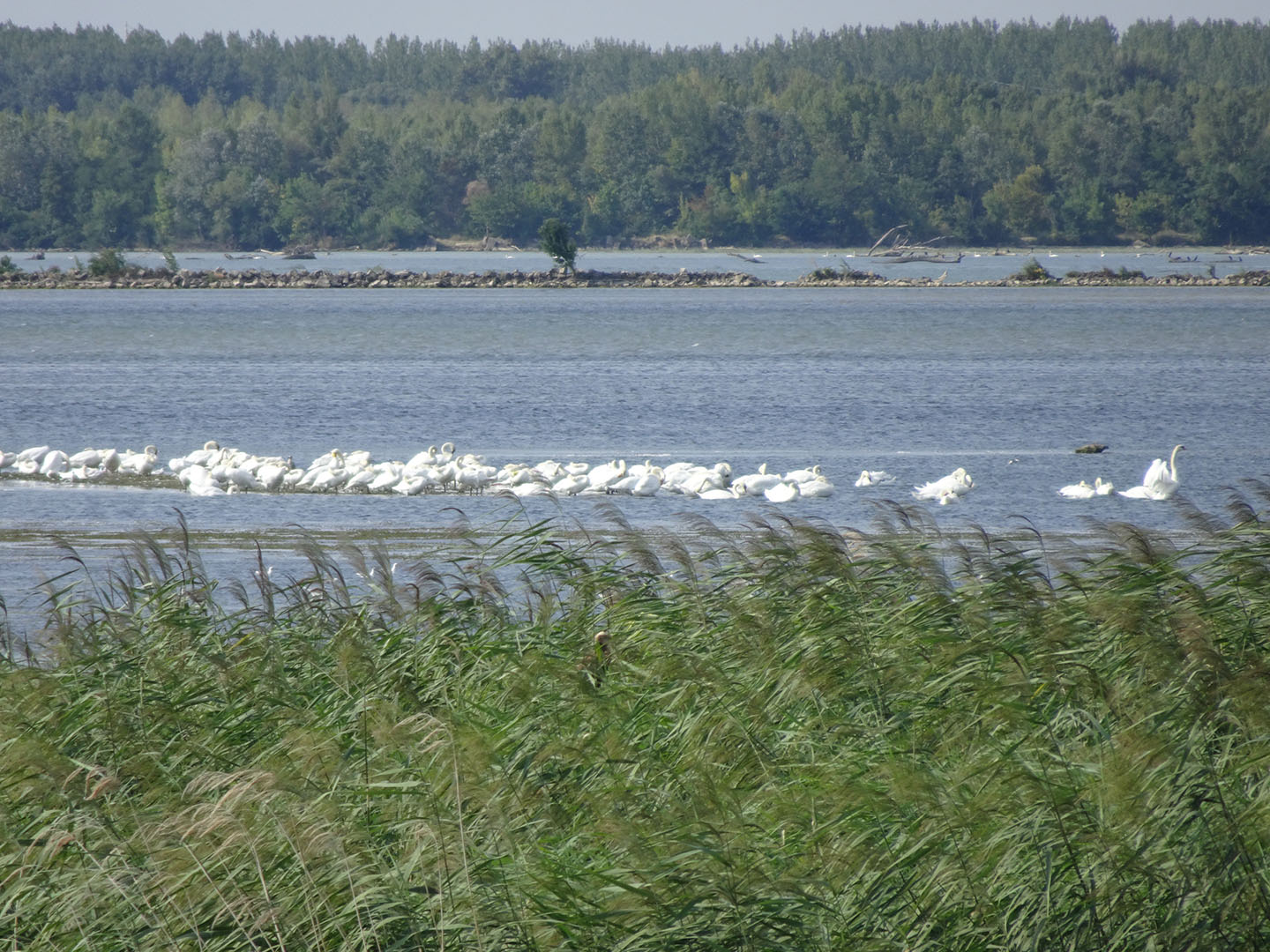Wir hatten nicht erwartet, dass die seichten Stellen und die Uferzone dieser bedeutenden Wasserstraße so viel natürlichen Lebensraum bieten. Es wechselten sich stark mit Bäumen bewachsene Abschnitte mit breiten Sandstränden, Auwäldern, kanalisierten Abschnitten sowie seenartig verbreiterten Feuchtgebieten mit sehr vielen Wasservögeln ab. Die landeinwärts des Damms liegende Fläche wird meist landwirtschaftlich genutzt. Wir sahen nur wenig Bebauung und freuten uns, als wir zum Füllen unserer Wasserflaschen eine kleine Gaststätte in einer der wenigen Ortschaften in Flussnähe fanden. Anders als auf dem Elbe-/Laberadweg begegneten wir nur sehr wenigen anderen Radtouristen.