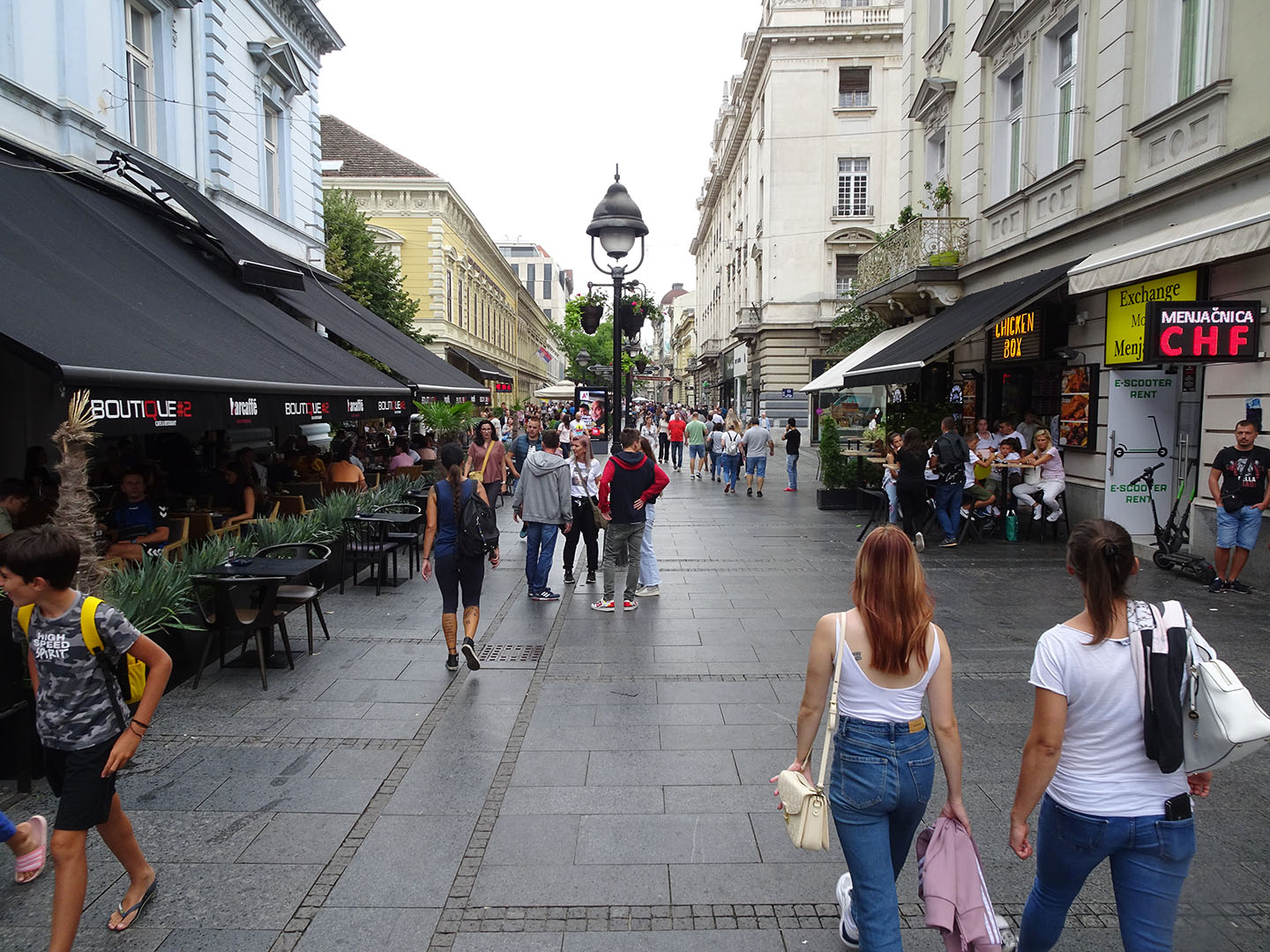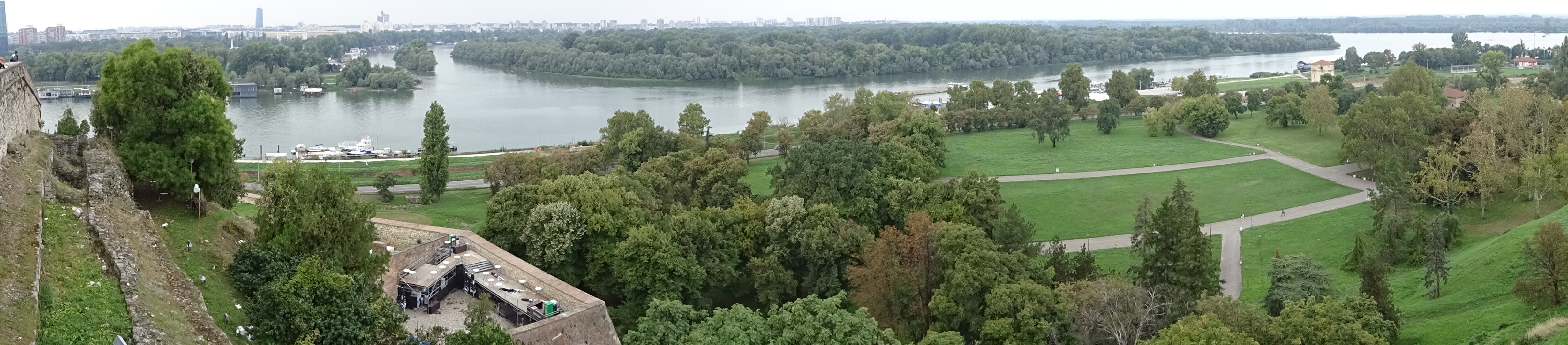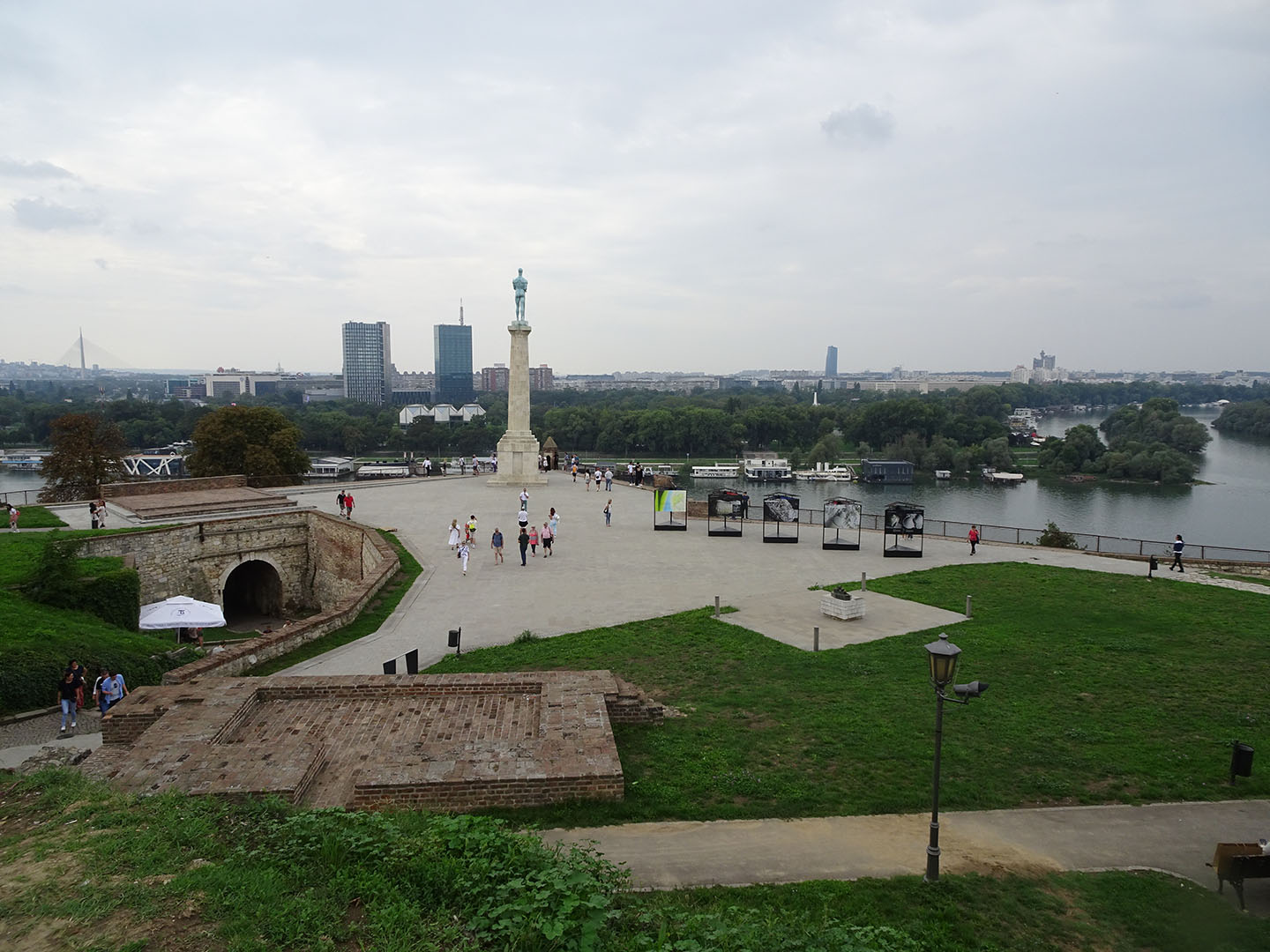 Von hier aus fuhren wir mit einem Taxi zur Festung. Die noch immer in der Restaurierung befindliche riesige Festungsanlage aus dem17. Jahrhundert liegt auf einem Hügel und bietet einen schönen Blick auf die Mündung der Save in die Donau. Die Donau ist hier bis zu 700 m breit, denn auch die Save ist ein breiter Fluss, der große Wassermengen in die Donau einbringt. Der Weg zurück führte uns durch die Innenstadt, die eine große Fußgängerzone hat. Da in Belgrad viele Geschäfte auch sonntags geöffnet haben, war diese sehr belebt.