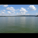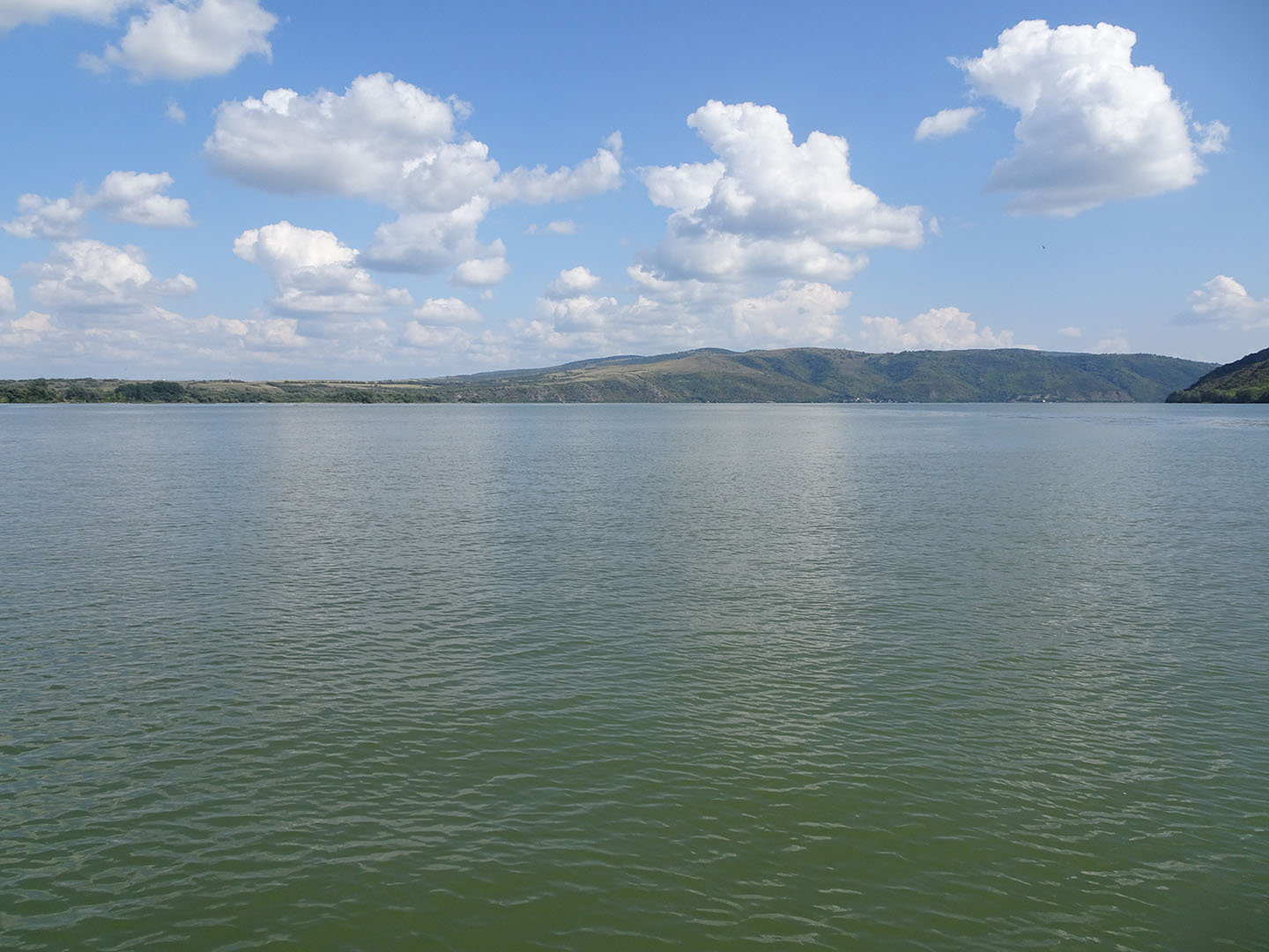 Die Aussicht von der Terrasse unserer Unterkunft auf das gegenüberliegende, rumänische Ufer Wo?Nach Rechtsklick