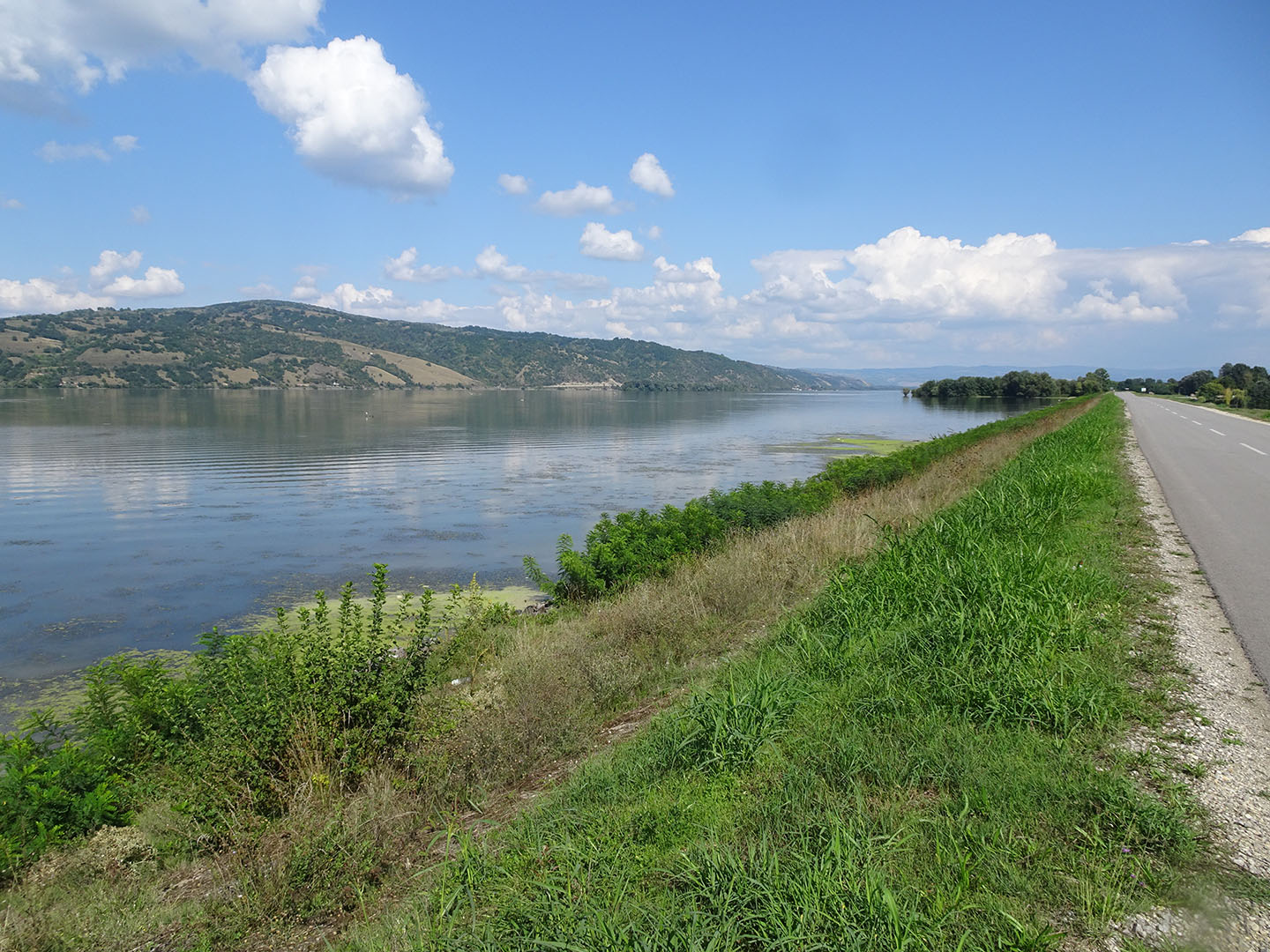 Heute fuhren wir bei morgendlich frischen 17 °C um 7:00 Uhr los. Der Weg stadtauswärts war nur solange gut zu befahren, bis wir nach kurzer Strecke eine stark befahrene Ausfallstraße erreichten. Der offizielle Euroradweg 6 verläuft hier als ausgewiesener Radweg, d. h. ohne die Möglichkeit, auf die zwar stark befahrene, jedoch mit einem besseren Belag ausgestattete Straße ausweichen zu können. Der Radweg ist in sehr schlechtem Zustand und wir benötigten für die ersten 10 km der heutigen Etappe eine gute Stunde. Wenn man gute 100 km vor sich hat, ist das kein angenehmer Beginn. Nachdem wir eine kleinere Straße ohne Radweg, dafür im guten Zustand und mit deutlich weniger Verkehr befahren konnten, kamen wir zügiger voran. Die Landschaft war immer noch flach. Wir durchfuhren die unwirklich anmutende Banater Sandwüste mit Kuh- und Schafherden, die noch von Hirten geführt werden. Nach etwa 80 km erreichten wir wieder die Donau, die wir mit einer Fähre überquerten. Wir erreichten sie in letzter Minute und konnten dank der Freundlichkeit des Kapitäns, der für uns sein Ablegemanöver unterbrach, noch mit an Bord. Wir wissen nicht, ob wir heute noch die Donauseite hätten wechseln können, hätten wir die Fähre verpasst.