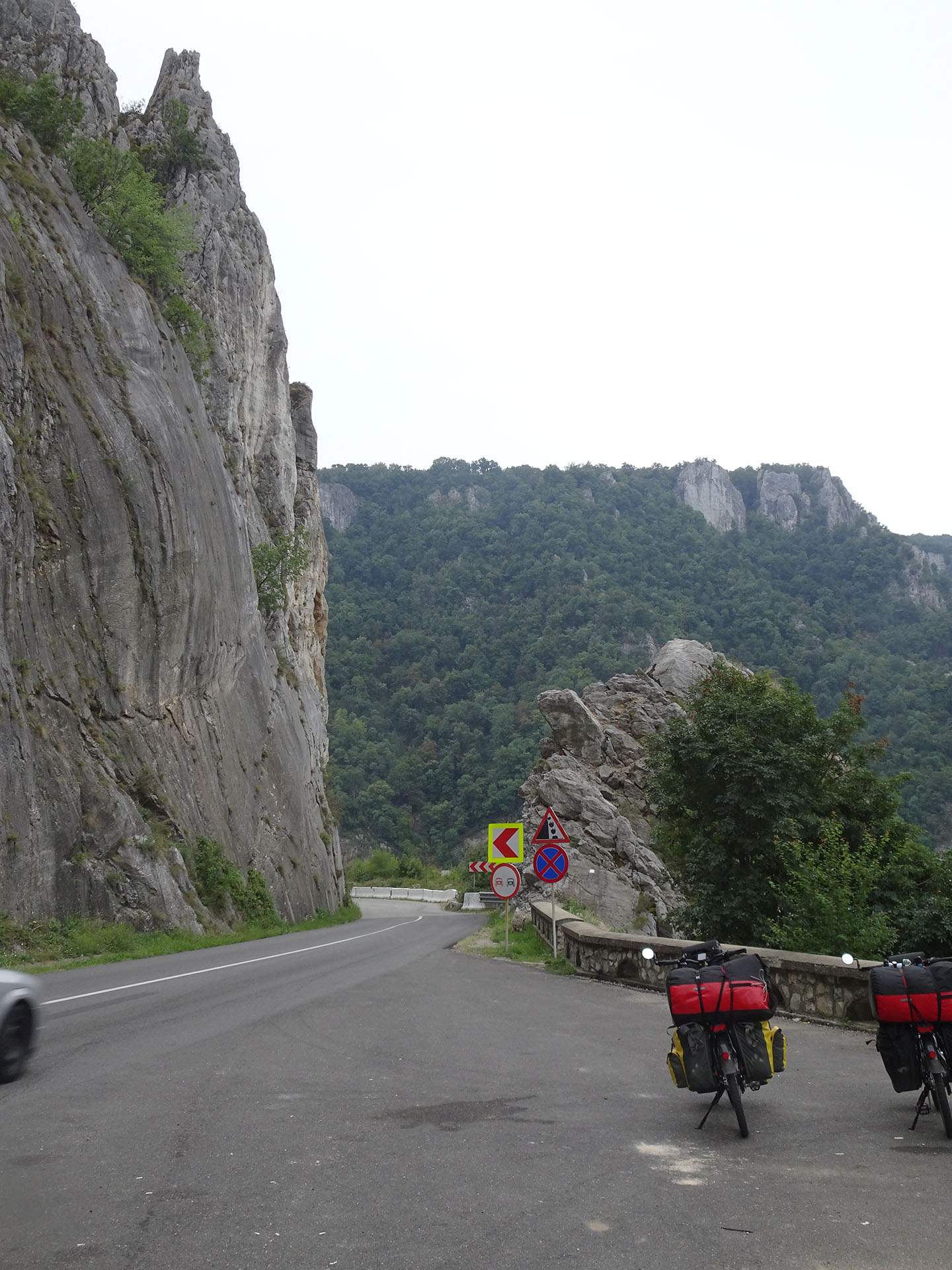 Noch bis Orșova konnten wir die traumhafte Donauschlucht bei wenig Verkehr genießen. Dann mussten wir auf die Europastraße 70, die in einem schlechteren Zustand und schmaler ist als der erste heute zurückgelegte Streckenabschnitt. Sehr oft überholten uns die zahlreichen LKW mit hoher Geschwindigkeit und deutlich zu geringem Sicherheitsabstand. Wir konnten dann manchmal nicht einmal den hohen Asphaltbeulen im Straßenbelag ausweichen und waren froh, bei deren Überfahren nicht gestürzt zu sein. Mit den ersten Regentropfen erreichten wir unser großzügiges, schönes Apartment im Stadtzentrum.