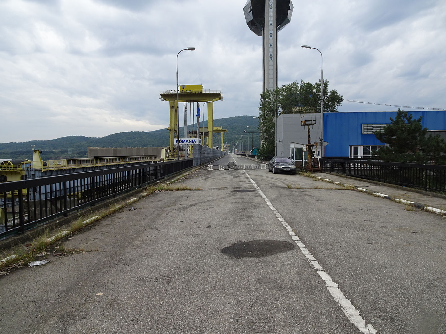 Die Dammkrone mit der Grenze zwischen Rumänien und Serbien in seiner Mitte Wo?Nach Rechtsklick