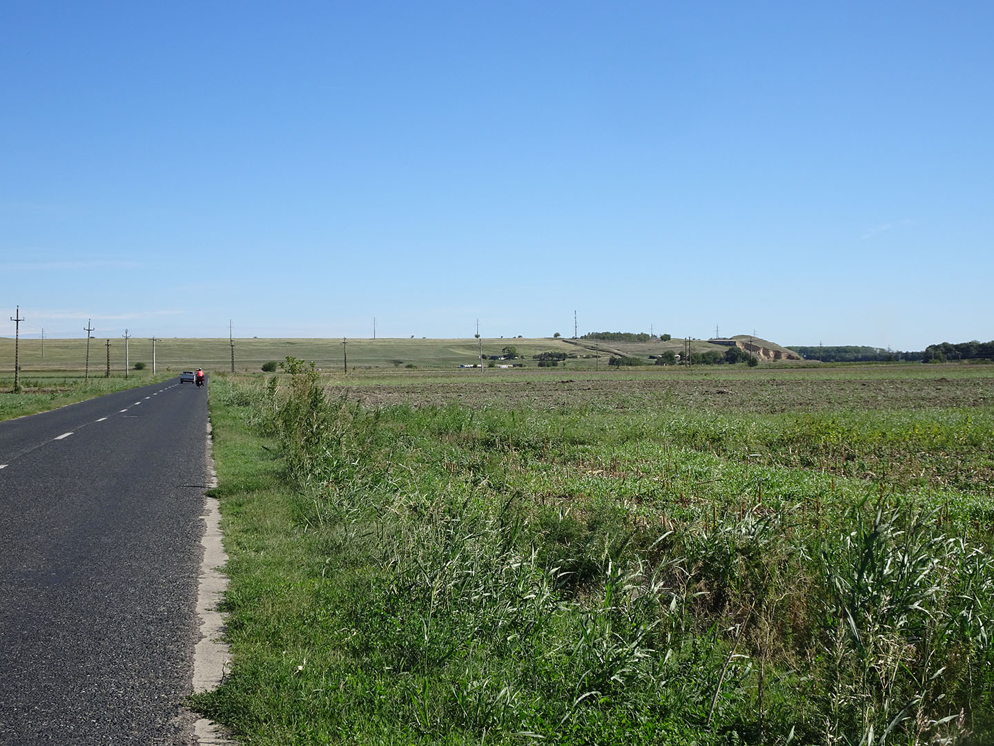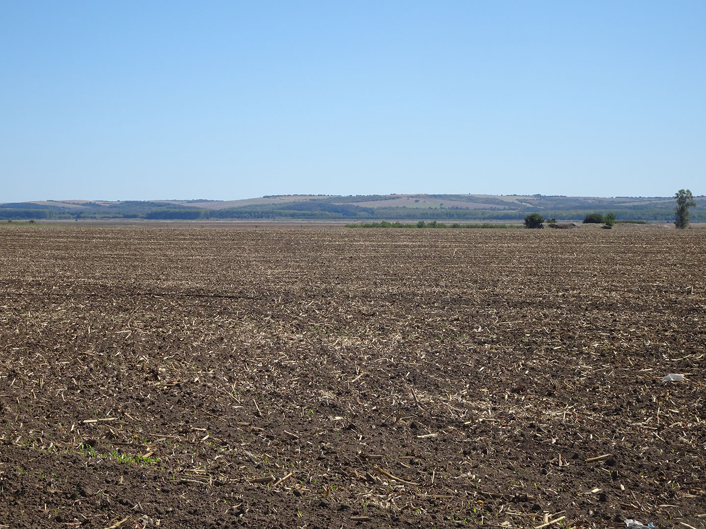 Das übliche Bild: Felder in flachem Gelände bis zur Donau und dahinter die Hügel des bulgarischen Donauufers Wo?Nach Rechtsklick