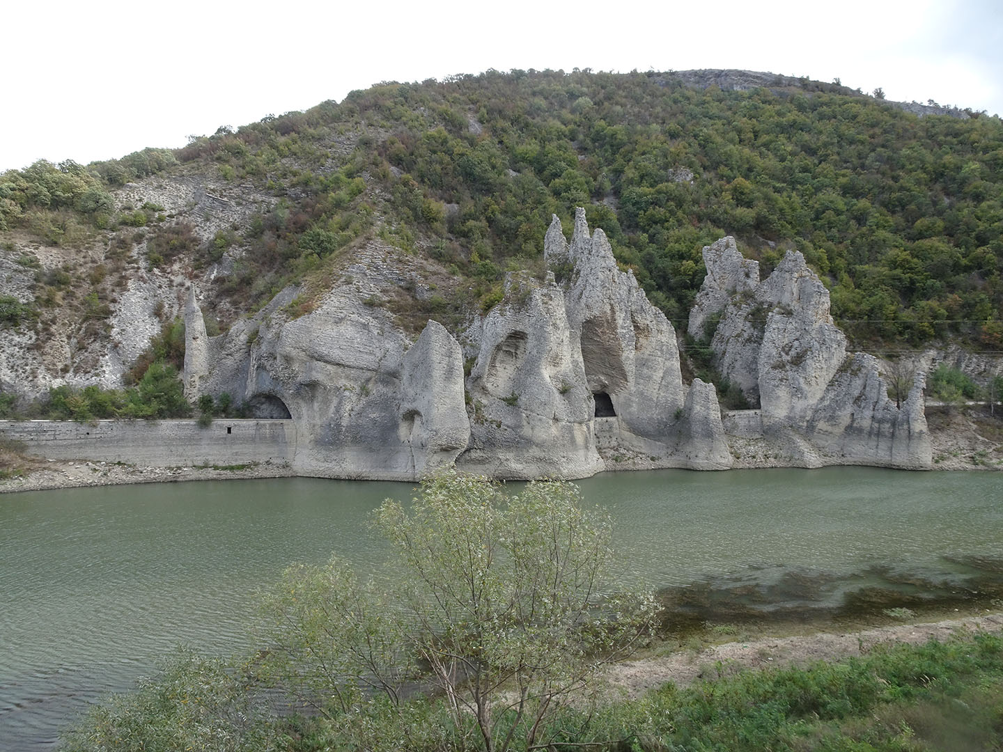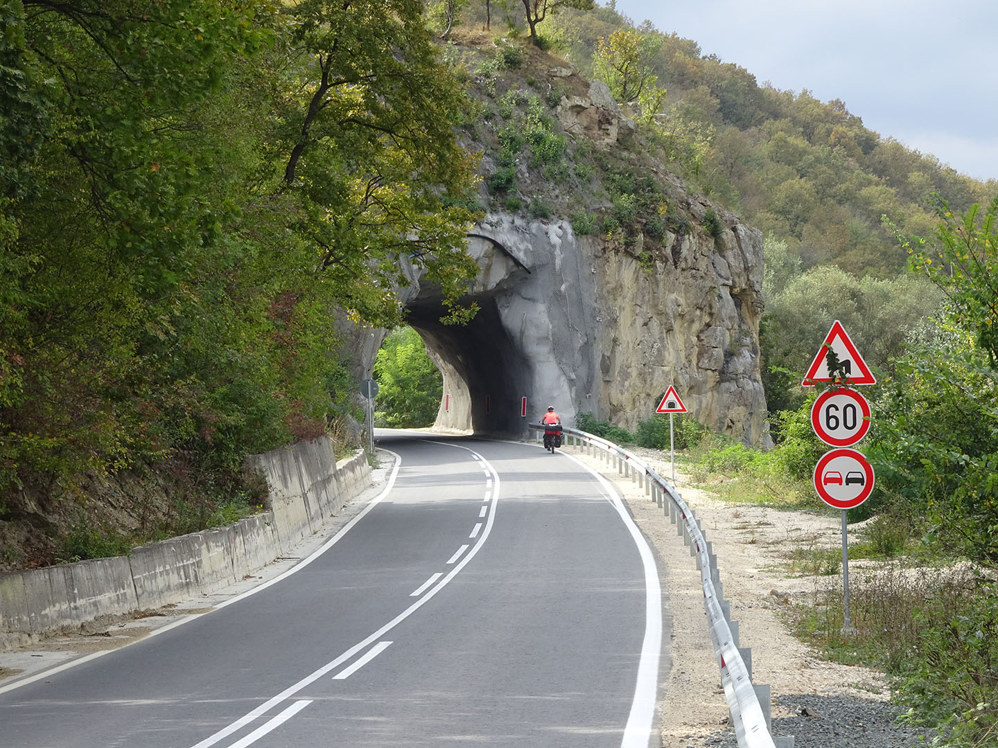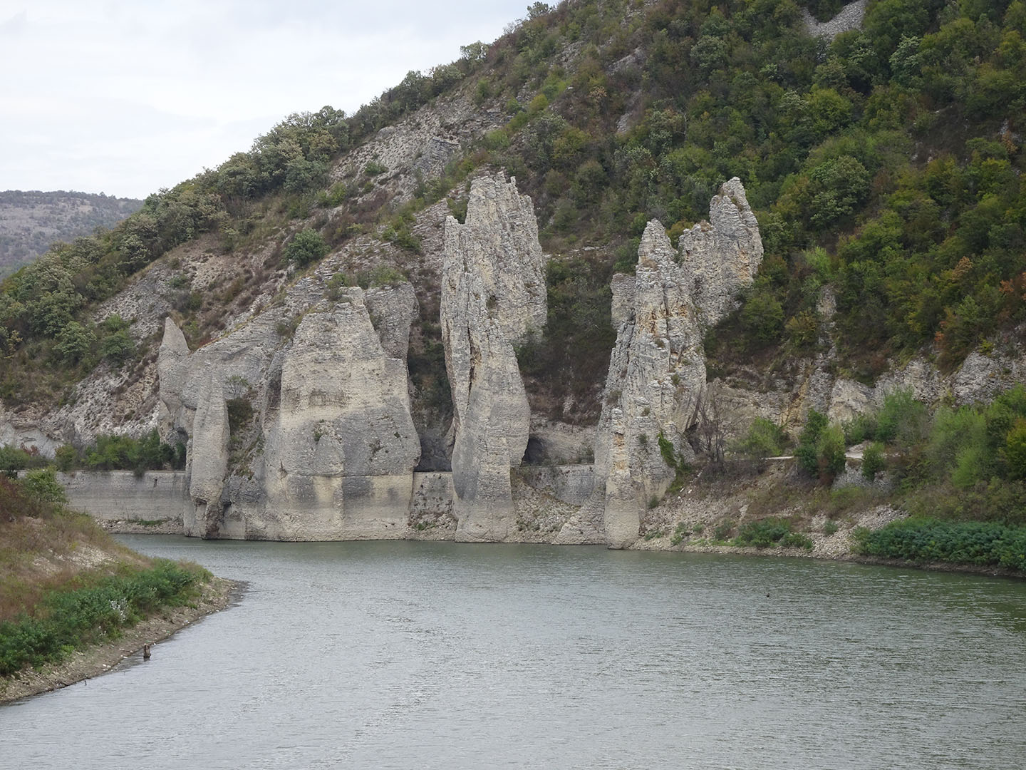Inzwischen sind wir mitten im Balkan Gebirge und sahen ungewöhnliche Felsformationen in steilen, dicht bewaldeten Hügelketten. Ein malerisch gelegener Stausee rundete das schöne Landschaftsbild ab.