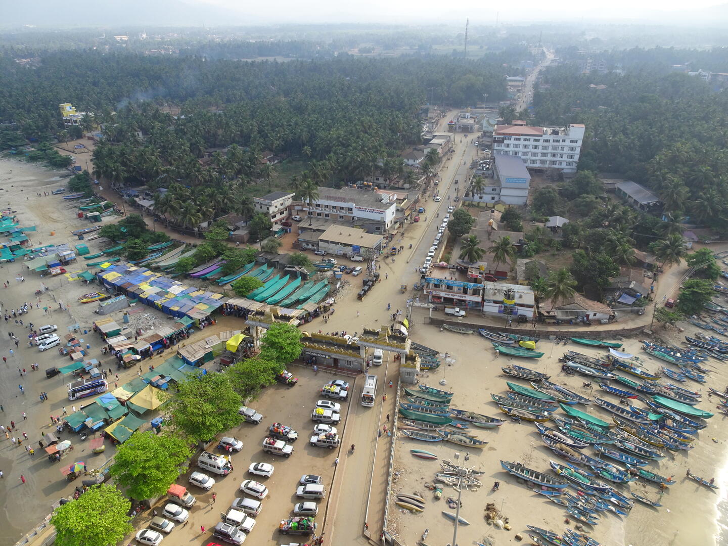 Blick vom Gopuram über die schmale Landbrücke landeinwärts Wo?Nach Rechtsklick
