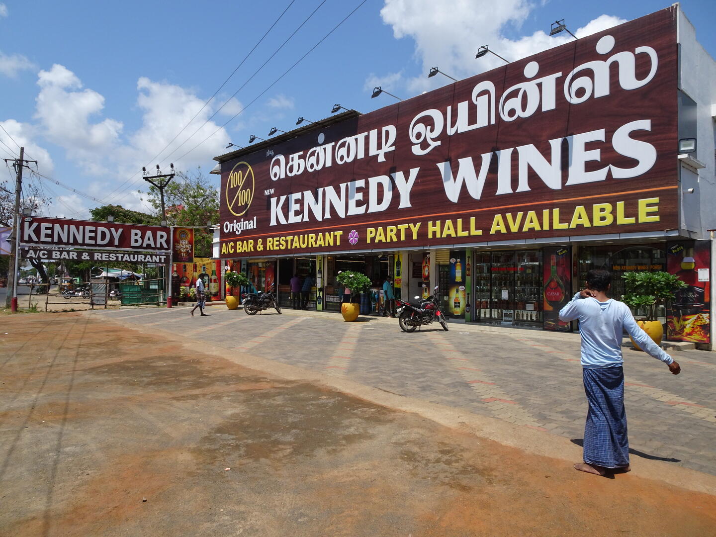 Die große Dichte an Spirituosengeschäften und Bars an der Grenze zu Tamil Nadu auf der Seite von Puducherry verrät, dass alkoholische Getränke hier günstiger zu haben sind Wo?Nach Rechtsklick