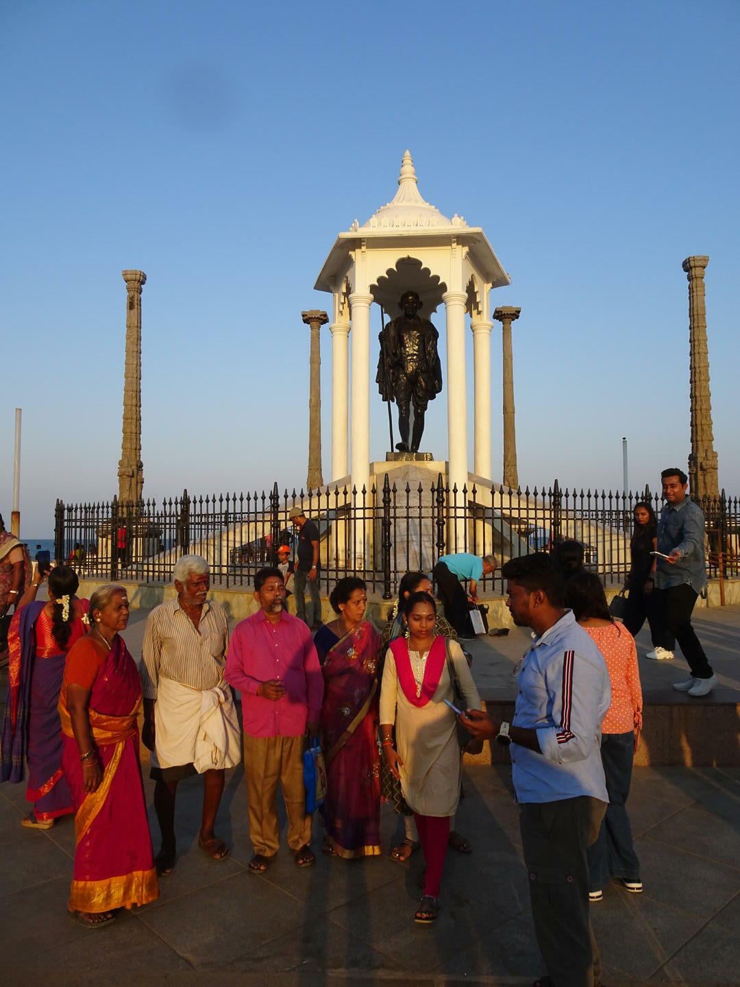 Die Statue von Mahatma Gandhi auf der Strandpromenade ist ein beliebter Fotohintergrund Wo?Nach Rechtsklick