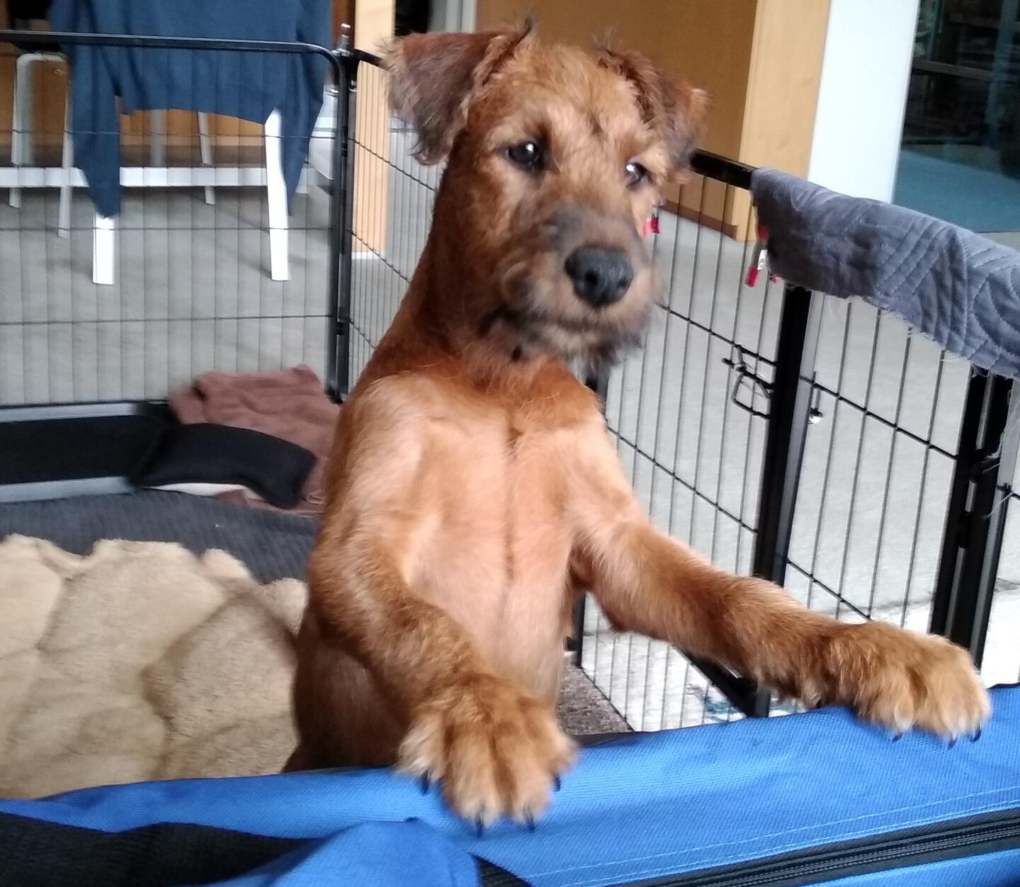 Am Pfingstwochenende besuchte Dagmar Diez‘ Schwester Ina und ihre Familie in Münster mit dem entzückenden neuen Familienmitglied Henry, einem zuckersüßen Irish Terrier Welpen im Alter von damals zehn Wochen.