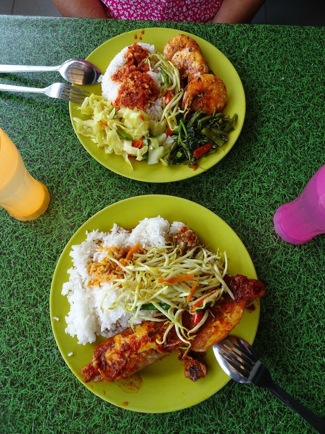 Dass es eine durch Menschen weniger geprägte Gegend ist, zeigt sich auch an der geringen Dichte an Essensständen. Die Gelegenheit, im Dunstkreis von Mersing etwas zu essen, hatten wir ungenutzt verstreichen lassen mit der Folge, dass wir anschließend bis etwa Kilometer 30 warten mussten, bis wir etwas zu uns nehmen konnten.