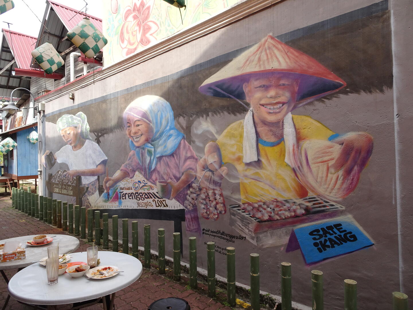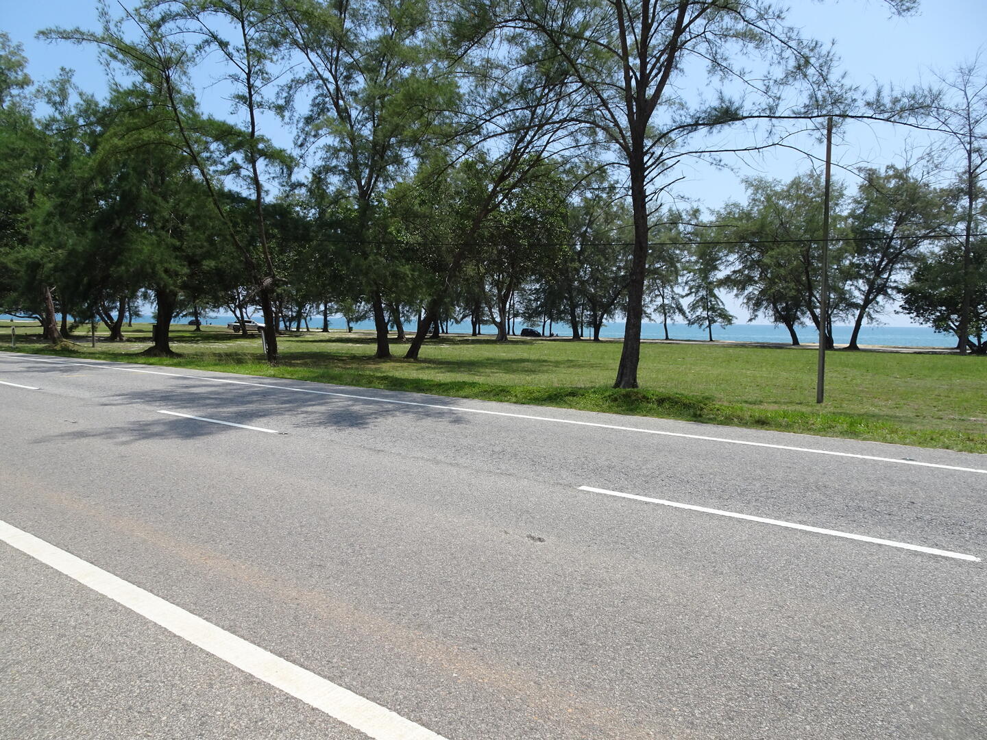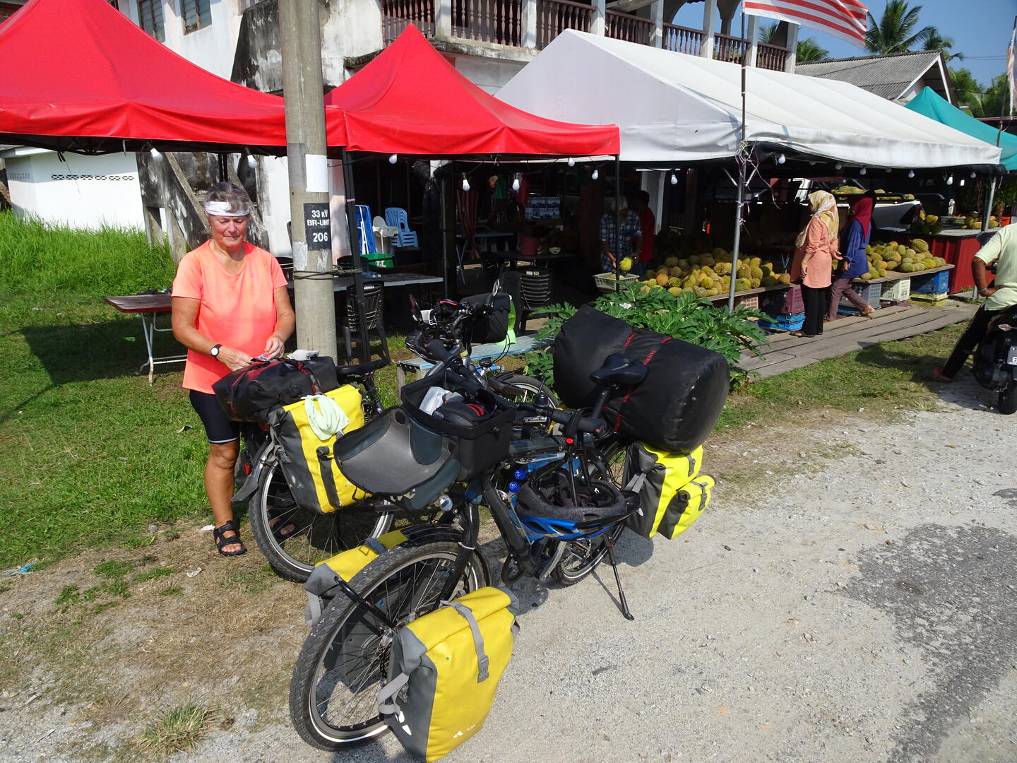 Es hätte der perfekte Start unserer heutigen Etappe werden können: Kein Regen, ein ab 6:00 Uhr geöffnetes Restaurant gleich neben unserem Hotel und die Möglichkeit, unsere Räder ohne Moskitos in der Lobby des Hotels zu packen. Als wir um 7:15 Uhr losfuhren, bemerkte Diez jedoch, dass seinem Hinterrad Luft fehlte. Nach einem Kilometer bot sich eine Tankstelle zur Reparatur an: Es gab dort eine ruhige Ecke, einen Wassereimer zur Lochsuche und die Möglichkeit, sich die Hände zu waschen. Am Tag nach unserer Ankunft in Kuala Terengganu hatte Diez bei der Kontrolle noch keinen Druckverlust feststellen können, woraus wir folgerten, dass es sich um ein sehr kleines Loch handeln müsse. Wir wunderten uns daher noch nicht, als wir beim Absuchen der Decke keinen Verursacher fanden. Mysteriös wurde es erst, als aus dem prall aufgeblasenen Schlauch keine Luftblasen aufstiegen, als wir ihn unter Wasser drückten. Diesmal hatte es sich wohl tatsächlich um einen Fremdkörper im Ventilsitz gehandelt. Nach ca. einer Stunde konnten wir weiterfahren. Bis zum Ziel unseres heutigen Abschnitts hielt die Luft.