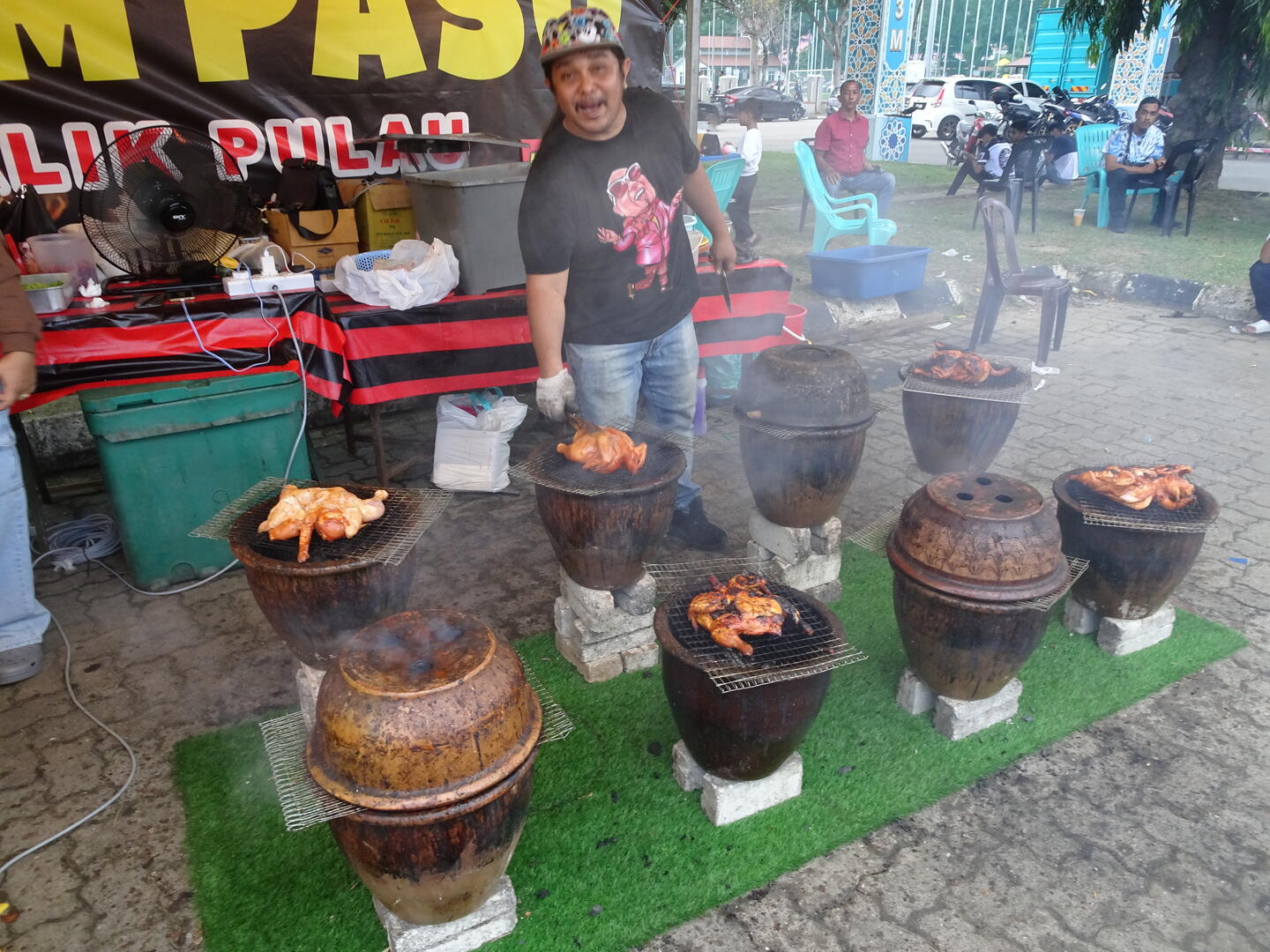 Am gestrigen Samstag folgten wir einer Einladung zum Frühstück. In Terengganu waren wir mit einer ehemaligen Englischlehrerin aus Kota Bharu ins Gespräch gekommen, als wir dort in einem vietnamesischen Café im chinesischen Viertel der Stadt frühstückten. Wir trafen sie hier zufällig wieder, verabredeten uns und lernten so auch ihren Mann, einen ehemaligen Polizisten und ihren Sohn kennen. In einem beliebten Café in der Nähe von Gebäuden des Sultans aßen wir ein unerwartetes Frühstück: Zwei dicke Scheiben Weißbrot, ungetoastet mit viel Butter und darauf zwei angegarte Eier. Außerdem isst man getoastetes Weißbrot, bestrichen mit gezuckertem weichem Eigelb. Essbar, doch wir bevorzugen das traditionelle Frühstück. Das besteht meist aus gedämpftem Reis mit einem gebratenen Ei, frischen Gurken, Erdnüssen, winzigen getrockneten Fischen und einer gut gewürzten roten Soße. Das Treffen mit diesen so gastfreundlichen, offenen und herzlichen Menschen war für uns wieder ein Highlight unserer Reise. Solche Erlebnisse lassen uns unser Nomadenleben immer wieder zu etwas Besonderem werden.