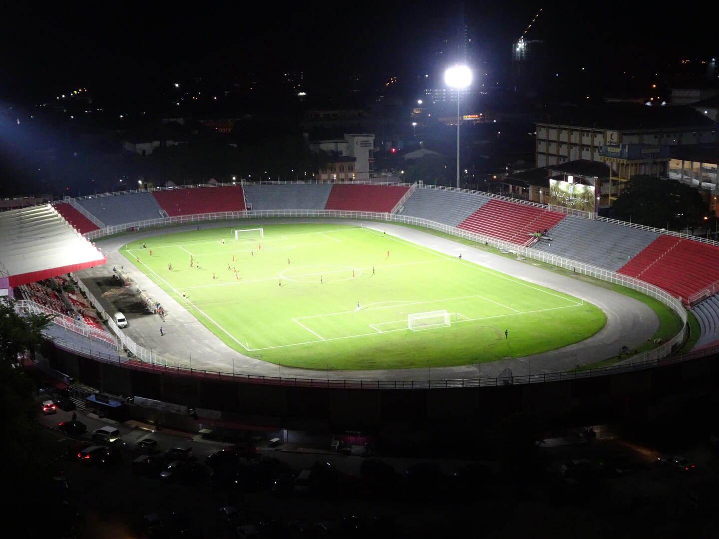 Die wenigen Zuschauer haben sich – wie sich zeigte, berechtigterweise – vorsorglich unter den überdachten Teil der Tribüne gesetzt Wo?Nach Rechtsklick