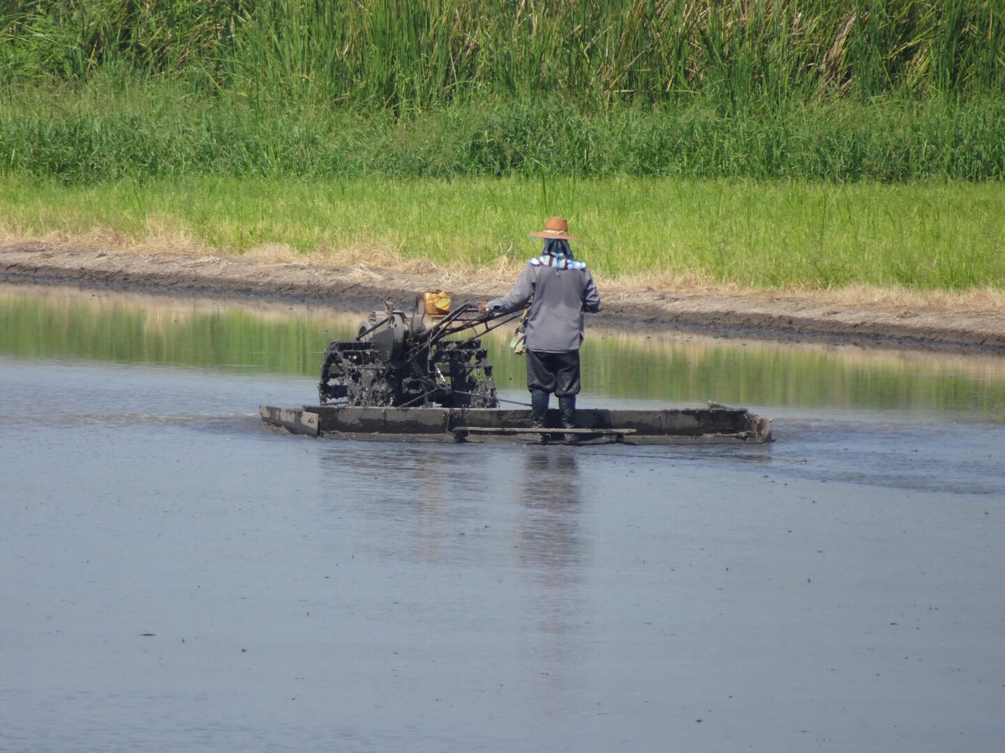 Durchmischung des Bodens eines Reisfeldes mit Hilfe eines Pflugs Wo?Nach Rechtsklick