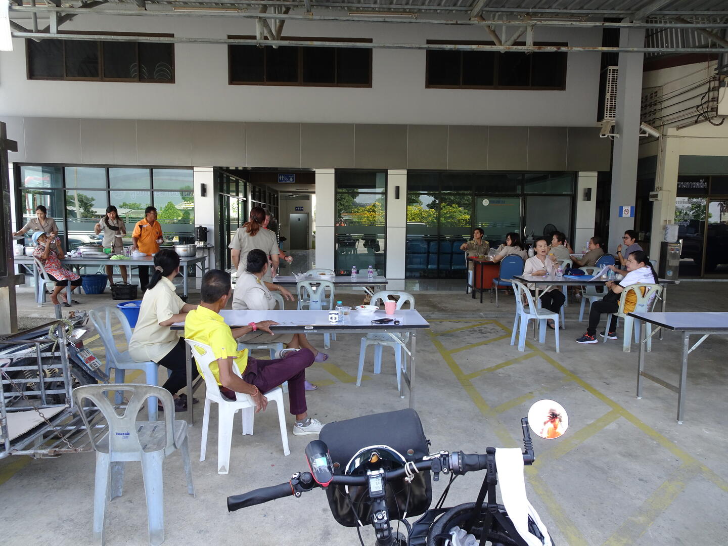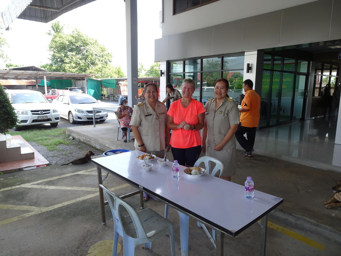 Bei der Auswahl von Lokalen orientieren wir uns gerne an der Anzahl der bereits dort speisenden Gäste – solange es sich bei denen nicht um Touristen oder Passagiere eines Reisebusses handelt. Heute passierten wir ein Gebäude, vor dem etliche meist in einer Art Uniform gekleidete Personen zu Mittag aßen. Durch die vielen Uniformen etwas verunsichert, fragten wir, ob auch wir dort Essen könnten. Das bejahte man und sofort wurden uns Teller mit Reis gereicht und wir wurden aufgefordert, uns am Büfett den Rest aufzutun. Als wir umgehend zahlen wollten, rückte man mit der Information heraus, dass wir zum Mittagstisch einer Behörde gestoßen waren und wir selbstverständlich eingeladen seien. Wir aßen schmackhaft mit Vorsuppe und Dessert, mussten von unserer bisherigen und der geplanten Reise erzählen und erlebten erneut die unglaubliche Gastfreundschaft dieses Landes.