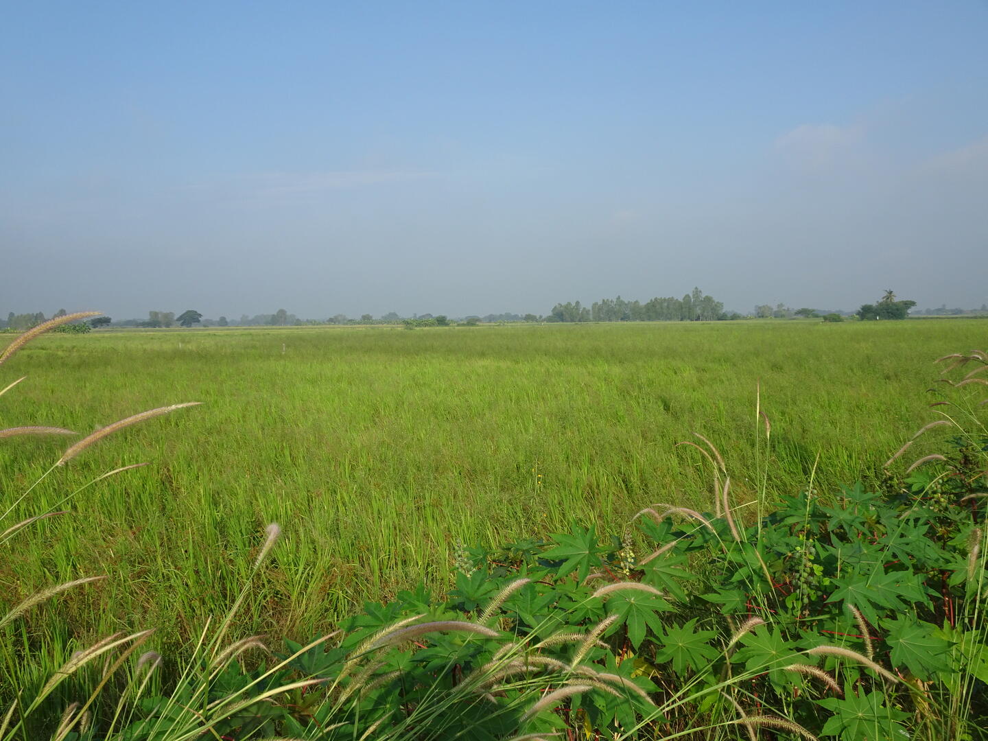 So früh wie heute waren wir selten auf den Rädern. Nachdem wir in einem der wenigen um diese Uhrzeit bereits geöffneten Lokale gefrühstückt hatten, konnten wir unsere Fahrt bereits um 6 Uhr beginnen. Über den Highway waren wir schnell aus der Stadt und erlebten den Tagesbeginn zwischen dunstigen Reisfeldern.