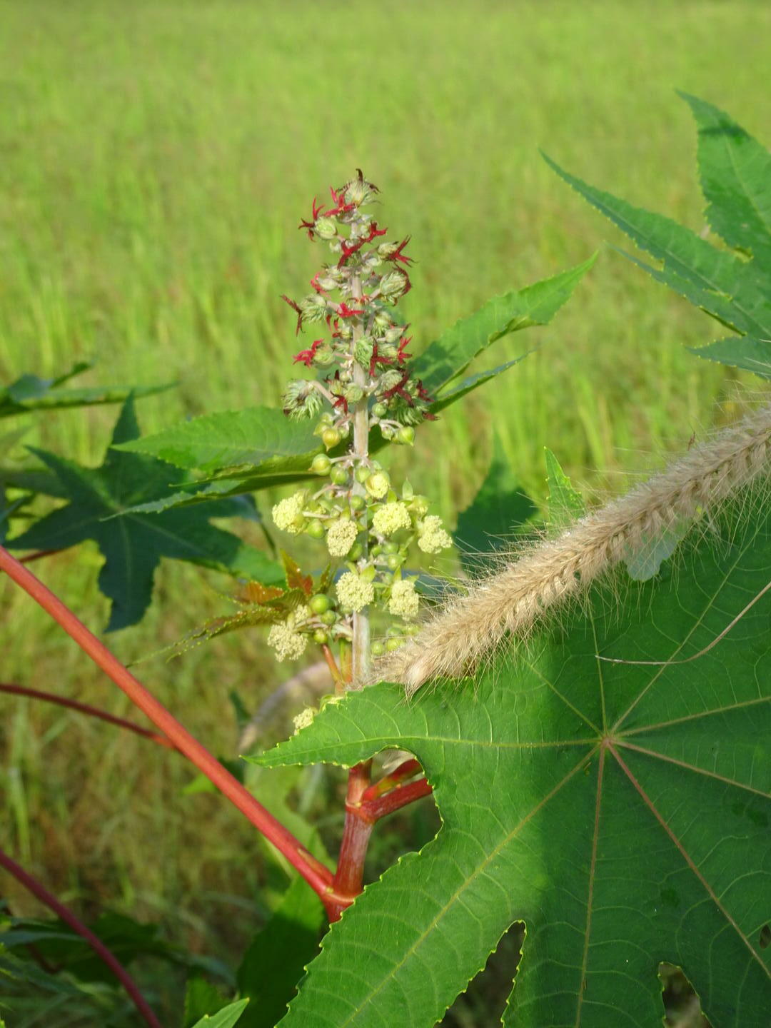 Weibliche (oben) und männliche (unten) Blüten eines Rizinus Wo?Nach Rechtsklick