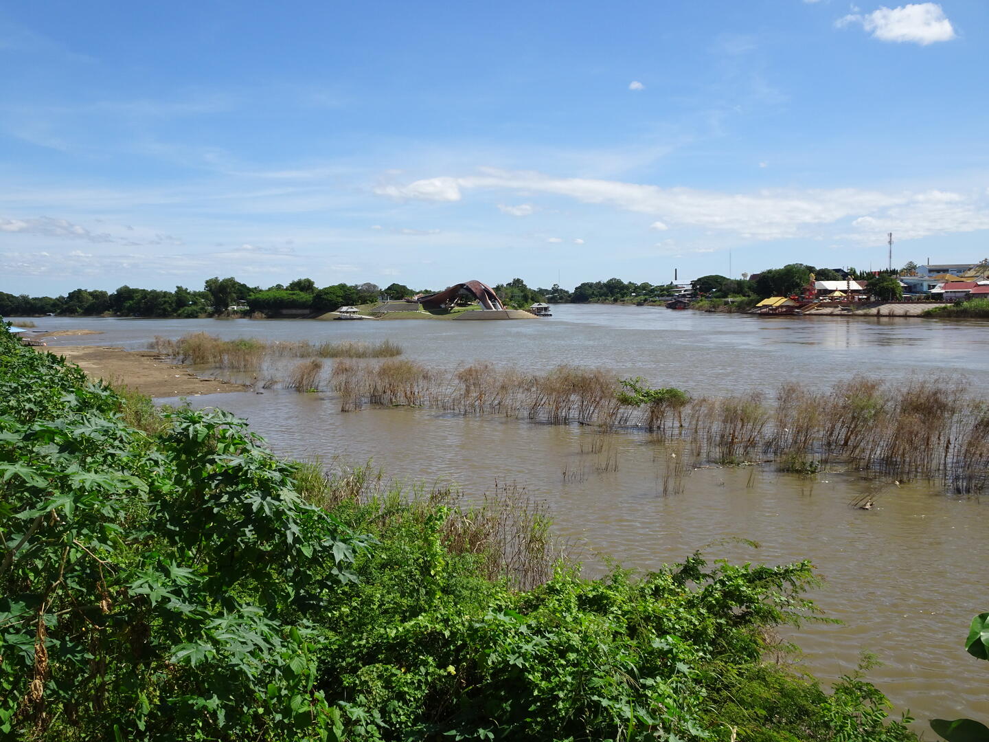Gestern sahen wir uns den Zusammenfluss von Ping und Nan zum Chao Phraya an. Von der Uferpromenade hatten wir freien Blick auf die Flüsse. Die Landzunge ist zu einem Ausflugsziel ausgebaut und kann u. a. mit kleinen Booten erreicht werden.