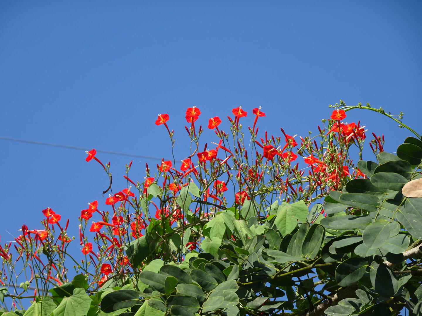 Eine Ranke mit einer ungewöhnlich intensiv rot leuchtenden Blüte Wo?Nach Rechtsklick