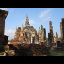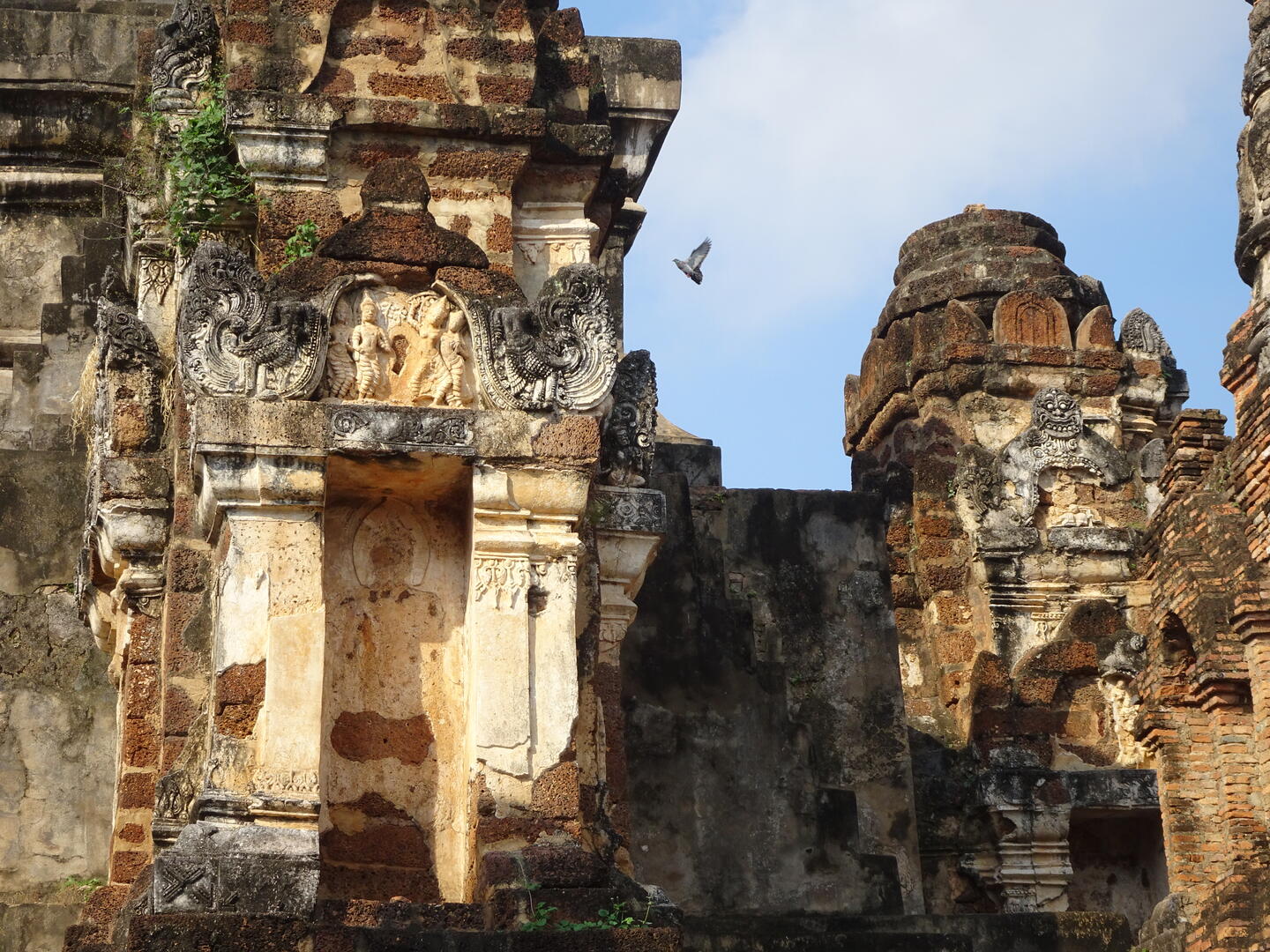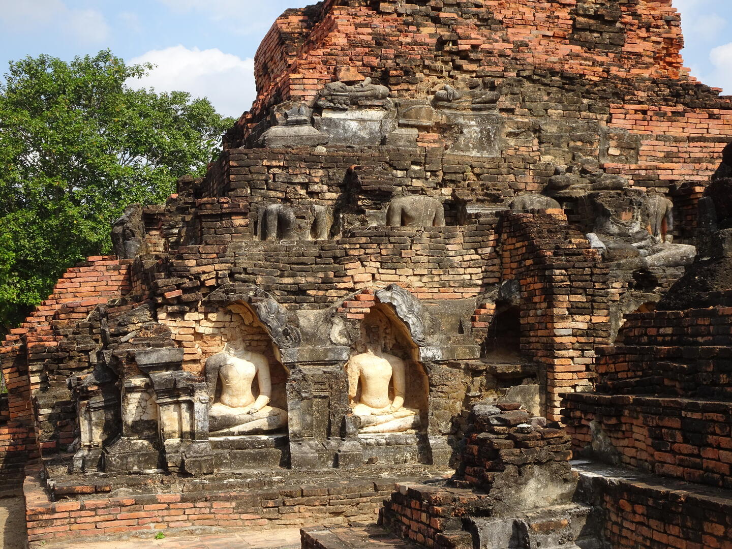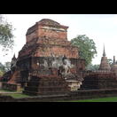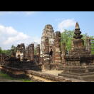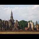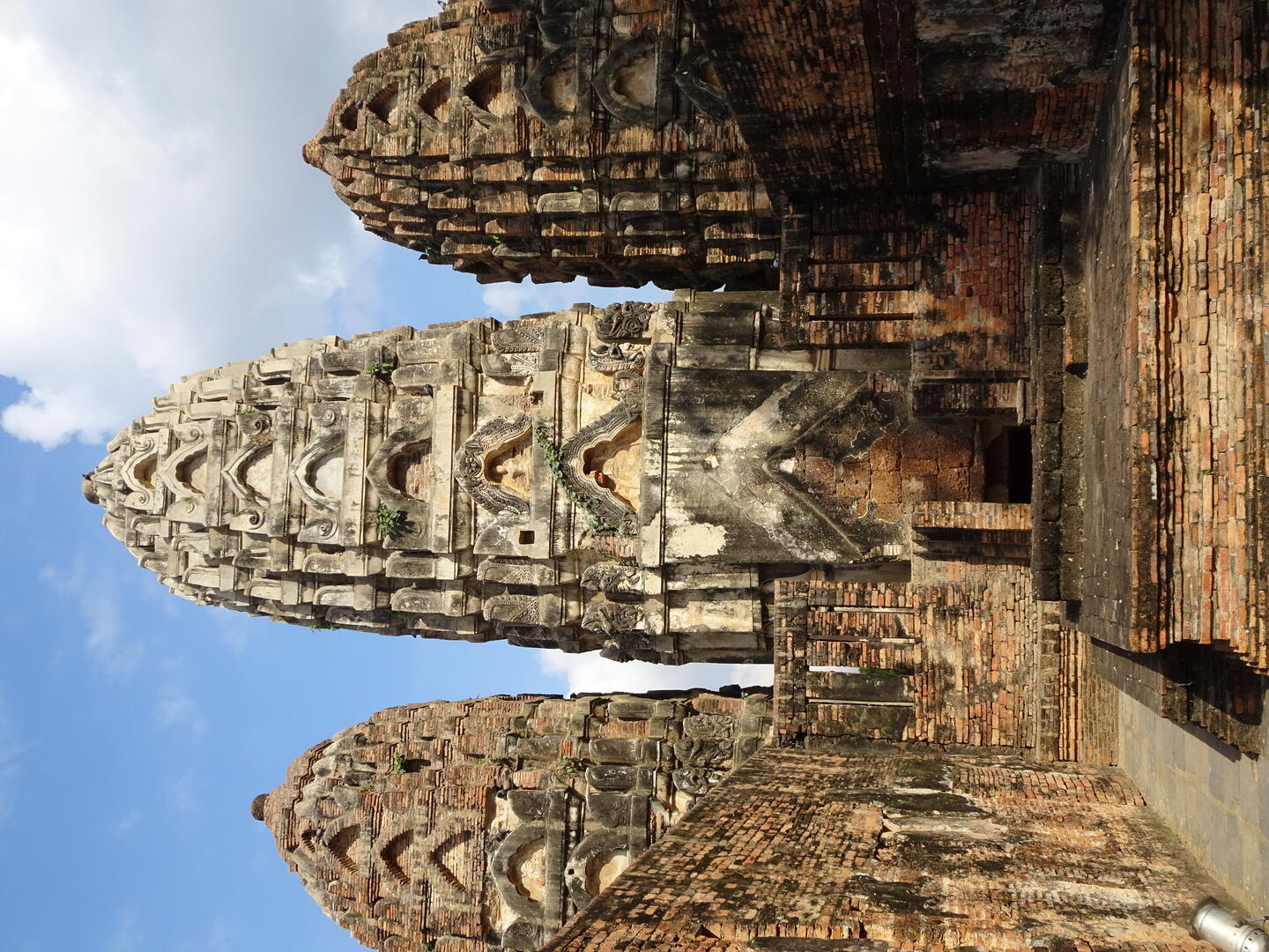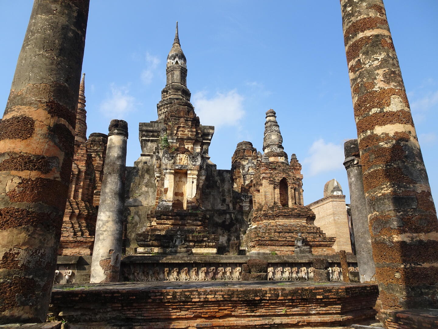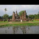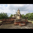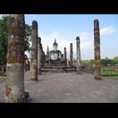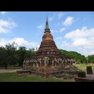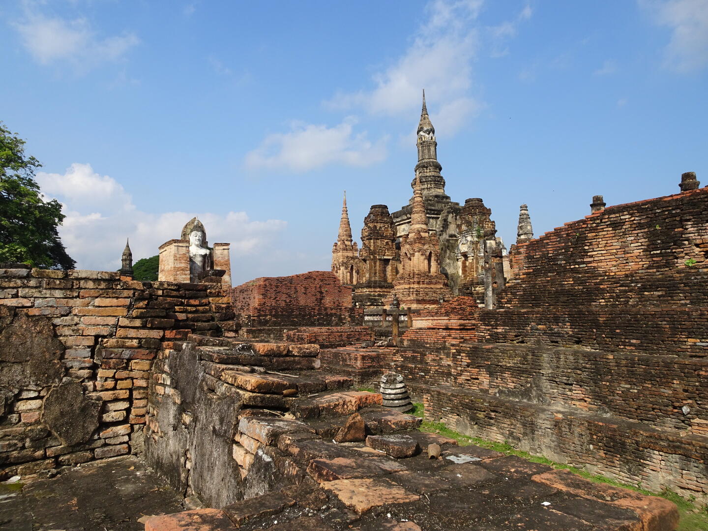 Vorgestern besuchten wir, nachdem wir uns einen Ruhetag gegönnt hatten, den Geschichtspark Sukhothai. Der große Park umfasst zusätzlich zum früher innerhalb von Dreifachstadtmauer- und -grabensystem gelegen Teil Sehenswürdigkeiten in der näheren Umgebung. Die teilweise restaurierten Klosteranlagen lassen die ehemalige Pracht dieser Stadt erahnen. Sukhothai war im 13. und 14. Jahrhundert Hauptstadt des ersten großräumigeren Königreichs der Thai. Im weiträumigen Areal legten wir mit unseren Fahrrädern etwa 15 km zurück.
