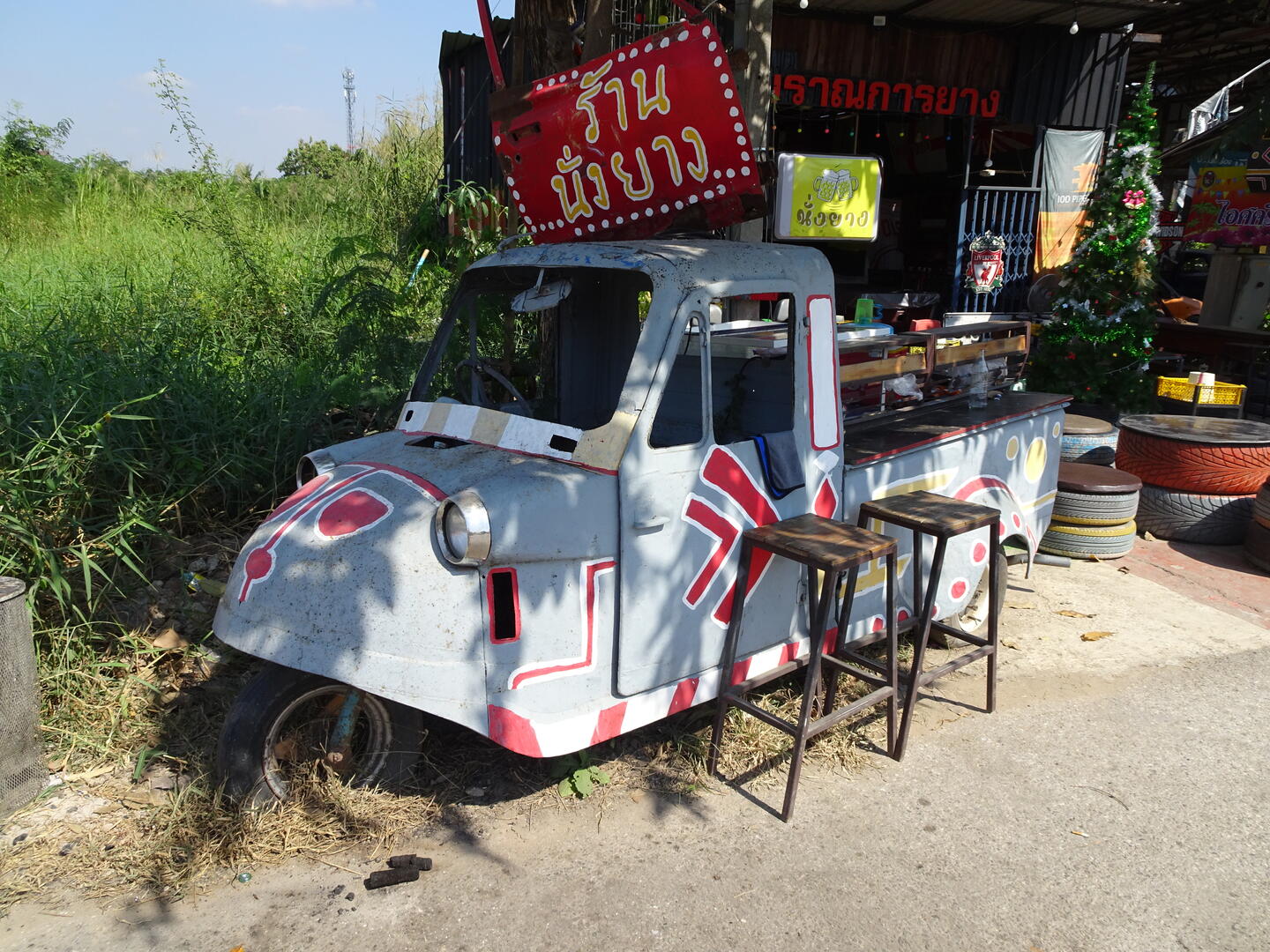Auf dem letzten Drittel der heutigen Etappe wird der Highway ausgebaut und über 30 km steht nur ein Fahrstreifen pro Richtungsfahrbahn zur Verfügung. Dank des geringen Verkehrsaufkommens und der rücksichtsvollen Fahrweise der thailändischen Auto- und Lastwagenfahrer fühlten wir uns dennoch nicht bedrängt.