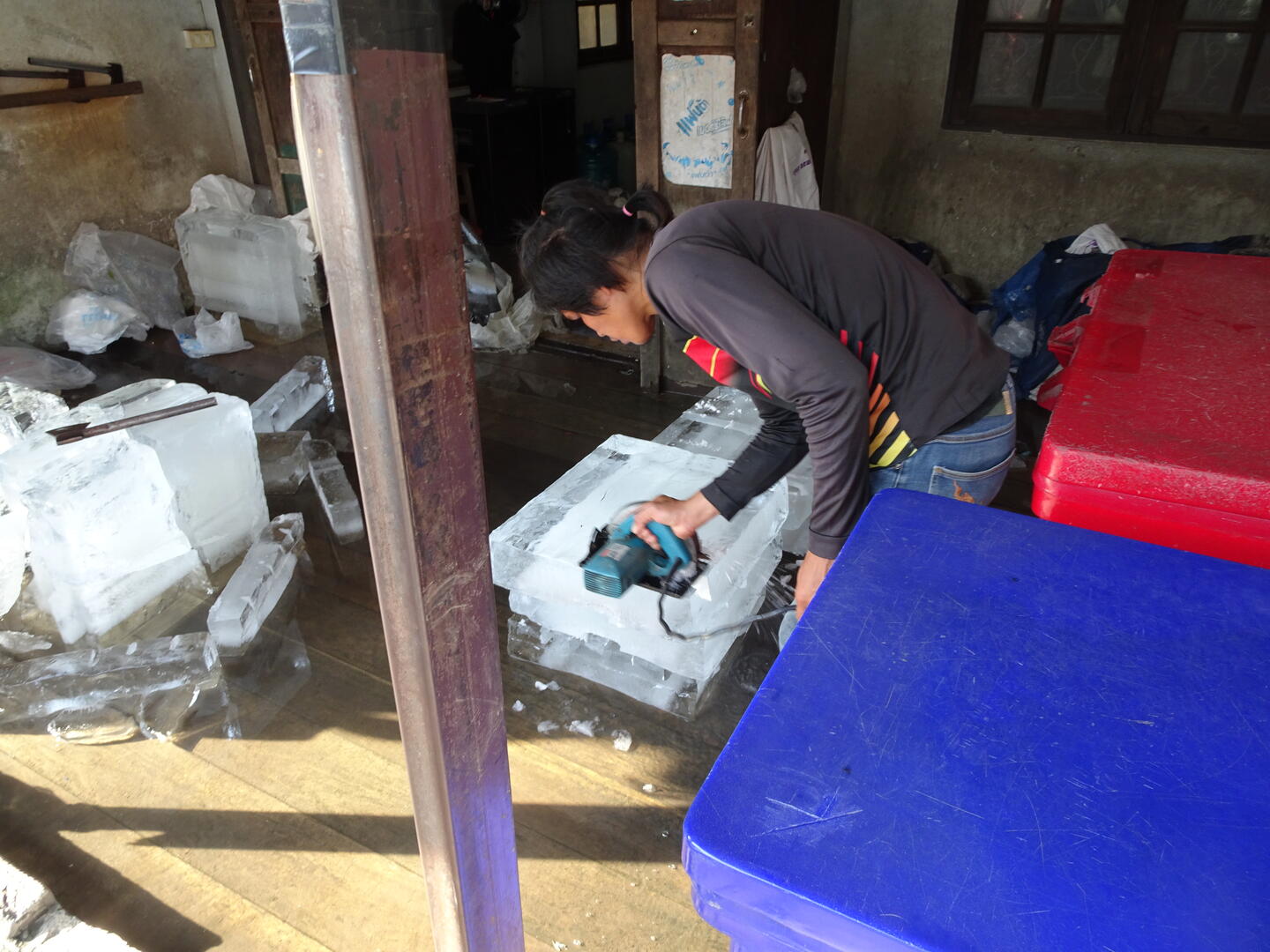 Eis wird mit der Kreissäge portioniert Wo?Nach Rechtsklick