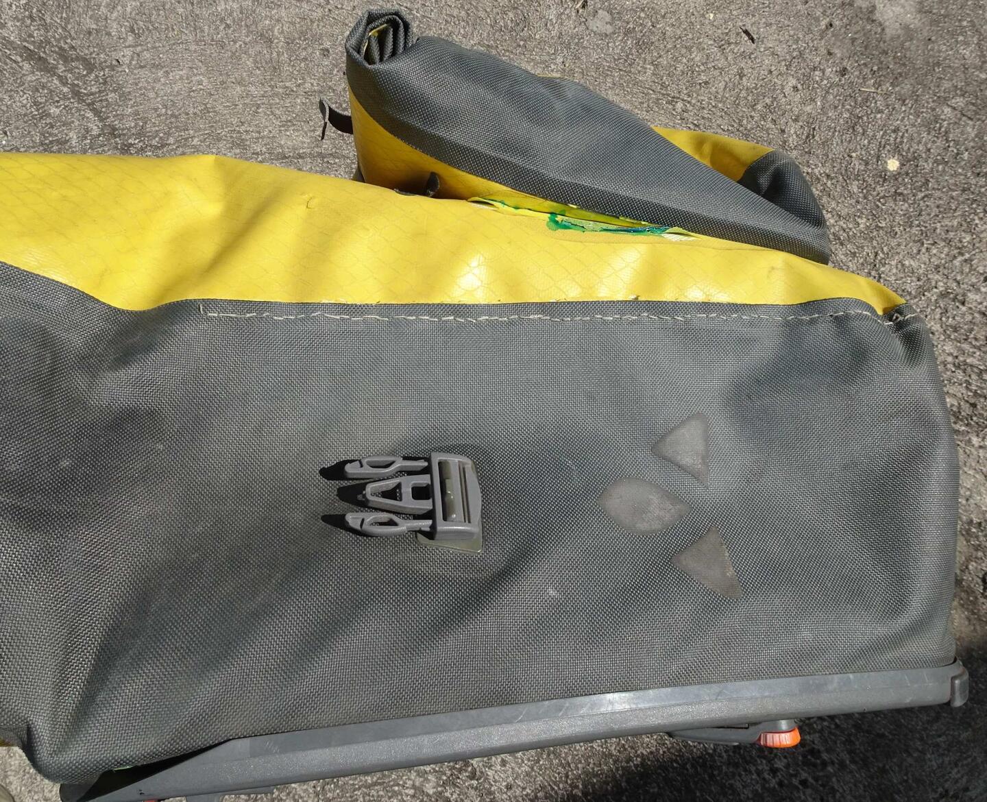 Für die darauffolgende Etappe behalfen wir uns noch damit, dass wir die Fahrradtasche mit einer großen Plastiktüte auskleideten. Sie hinderte das Werkzeug am Herausfallen. Eine Lösung bis wir Ersatz für die Taschen haben, war das jedoch nicht. Daher nutzte Dagmar den gestrigen Tag, um über mehrere Stunden Nähte an den drei Taschen mit gewachstem Garn und viel Kraft per Hand zu schließen. Wasserdicht sind diese Nähte natürlich nicht mehr, doch wenigstens kann so der Tascheninhalt nicht unbemerkt verlorengehen.