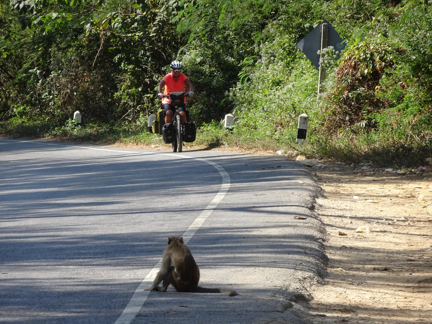 Wir durchfuhren ein Naturschutzgebiet, sahen eine große Gruppe dickfelliger Affen, teilweise auf der Straße sitzend. Leider jedoch wieder keine Elefanten, vor denen Schilder am Straßenrand warnen. Es gibt nur wenige kleine Ansiedlungen in dem Gebiet und es dauerte lange, bis wir einen Supermarkt für die verdiente Kaffeepause fanden.