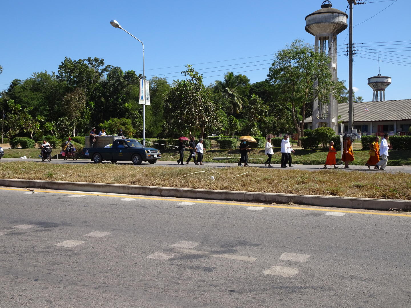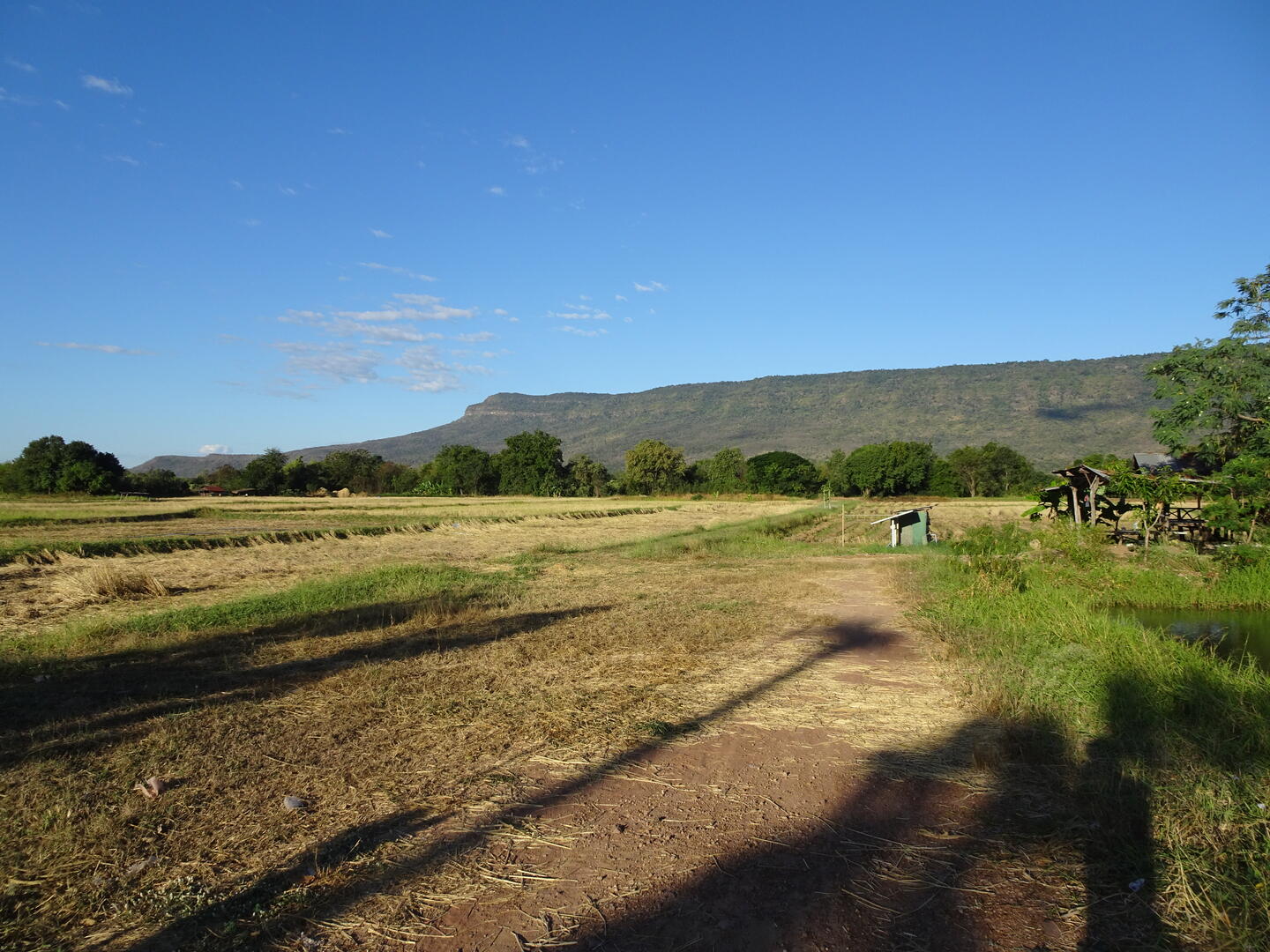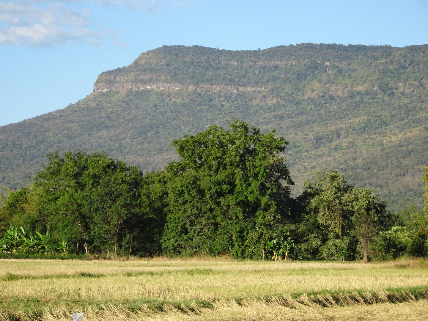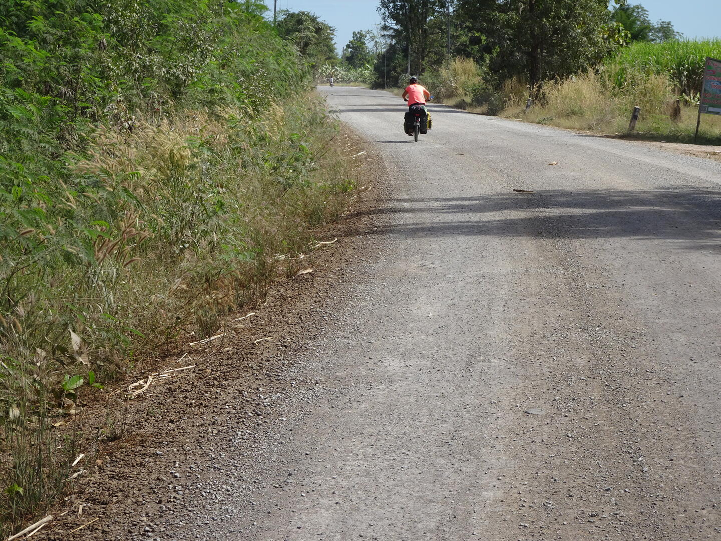 Die Rechnung, durch die weit nach Süden ausgedehnte Route viele Höhenmeter einzusparen, die uns die Berge auf dem direkten Weg zwischen Phitsanulok und Khon Kaen auf dem Highway 12 beschert hätten, ist aufgegangen. Die heutige Etappe führte uns wieder entlang eines Tals mit entsprechend geringen Höhenunterschieden. Für diejenigen, die sich mit Motorkraft fortbewegen, werden fahrzeitoptimierte Straßen gebaut und die nehmen nur wenig Rücksicht auf die Topografie und verbinden die größeren Städte möglichst geradlinig. Wenn wir hingegen möglichst schnell ein Ziel erreichen wollen, ist das in unebenem Gelände selten auf solchen Straßen zu realisieren. Es verwunderte uns daher nicht, dass unser für Fahrradfahrer optimierter Weg über untergeordnete Straßen führte. Gegenüber den wichtigen Highways bedeutete das: Weniger Verkehr, weniger Unterkünfte, weniger Verpflegungsmöglichkeiten, andererseits eine interessantere Gegend, Einblicke in die dörflichen Strukturen und mehr Kontakte zur Bevölkerung.