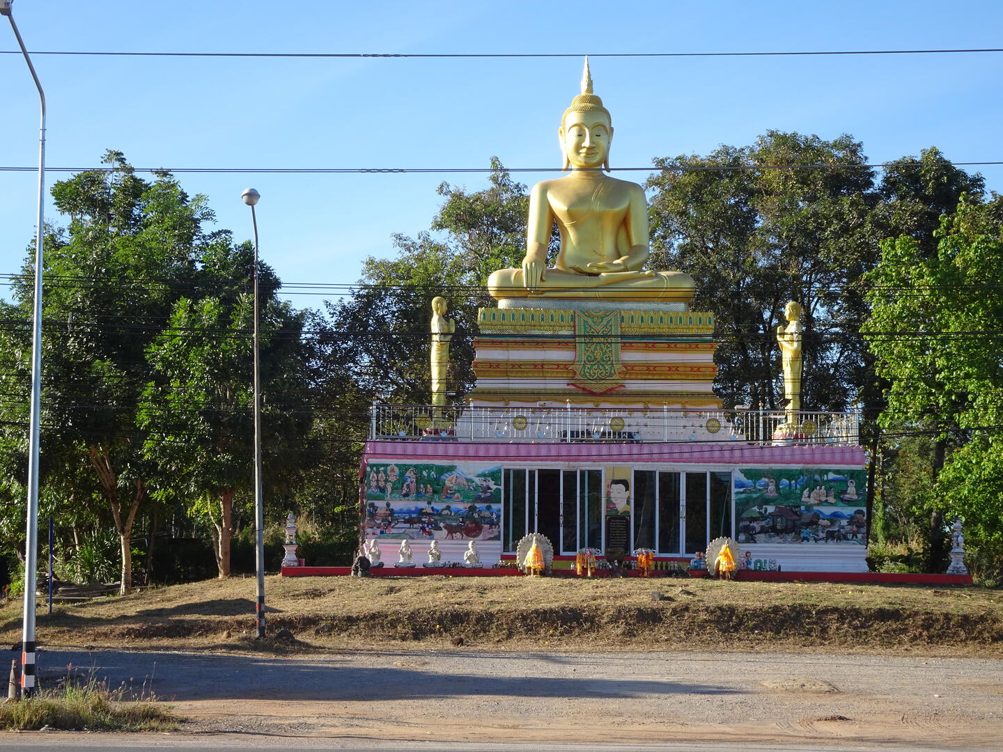 Da wir heute nur eine kurze Etappe vor uns hatten, standen wir etwas später auf und verließen erst gegen 7:15 Uhr bei strahlendem Sonnenschein die Stadt. Durch unsere späte Abfahrt gab es stadtauswärts anfangs relativ dichten Verkehr auf dem jetzt wieder befahrenen Highway 12, den wir kurz hinter Phitsanulok nach Süden verlassen hatten. Der Wind behinderte uns heute nicht und die Etappe ist flach.