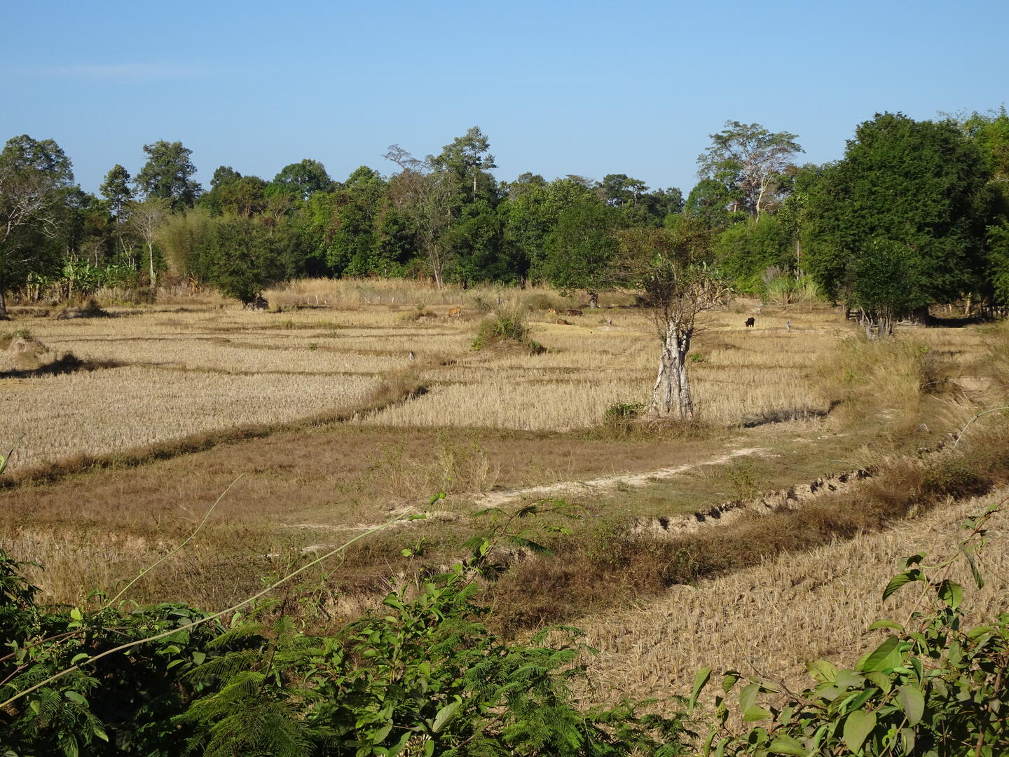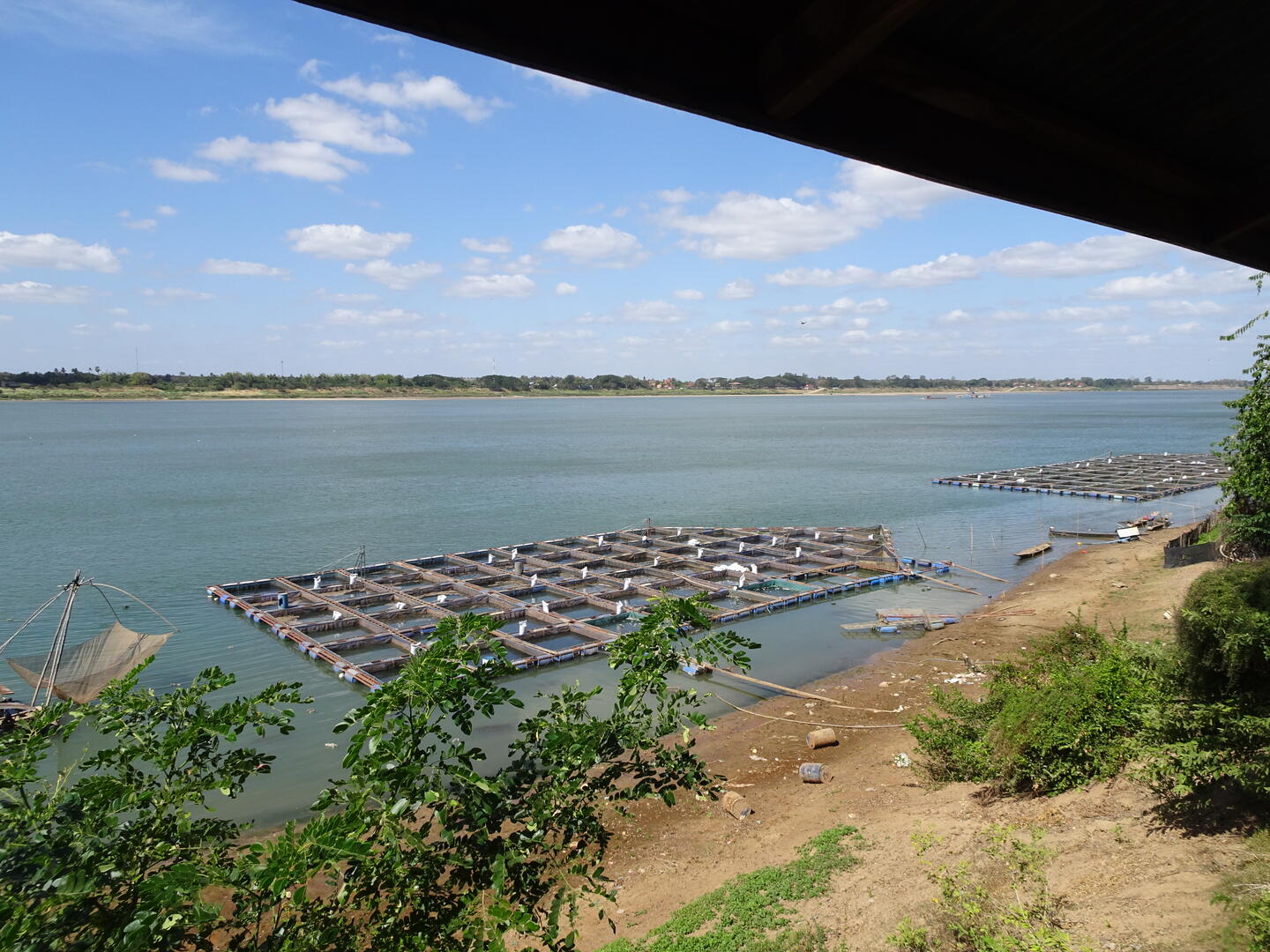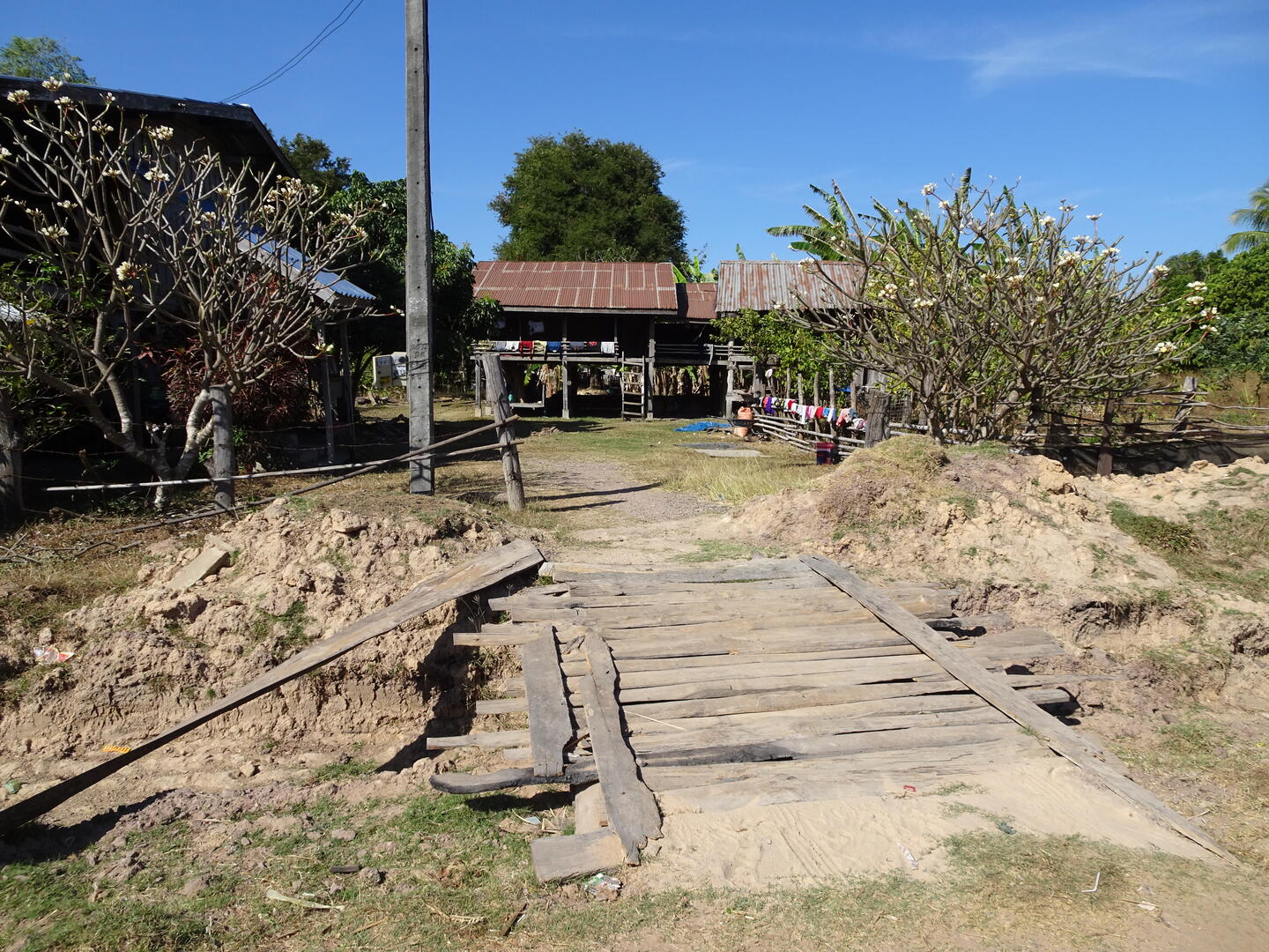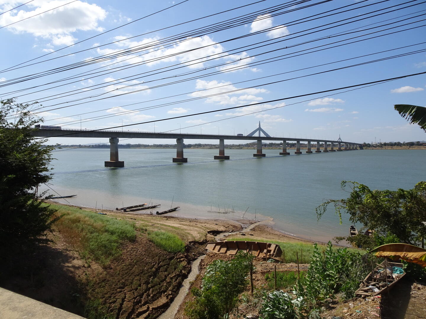Wir hatten es heute nicht sehr weit und daher eine Route geplant, die nach 31 km den Highway verlässt und zum Schluss am Mekong verläuft. Laos hat nur erschreckend wenig asphaltierte Straßenkilometer. Hätten wir am Abzweig festgestellt, dass die untergeordnete Straße, die wir fahren wollten, nicht dazugehört, wären wir einer von zwei vorsorglich ausgearbeiteten Alternativrouten gefolgt. Der Beginn machte einen guten Eindruck, was jedoch nicht garantierte, dass auch der Rest akzeptabel ist. Wegen der kurzen Etappe mit einem ausreichenden Zeitpolster ausgestattet, wagten wir die Fahrt. Es herrschte sehr wenig Verkehr und wir sahen nur einige wenige LKW. Das machte uns aufgrund unserer Erfahrung beim ersten Besuch von Laos misstrauisch, denn für durchgehend gute Straßen ist das ungewöhnlich. Zu unserer Überraschung blieb der Zustand der Straße gut und nach etwa 20 km erreichten wir wieder den Mekong. Bis dahin waren wir zwar dem Mekong in seinem breiten Tal gefolgt, hatten den Fluss selbst jedoch nur selten gesehen.