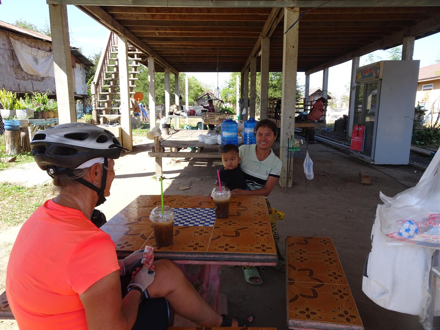 Heute hatten wir auf unserem Weg nach Savannakhet mehr Glück als gestern. Bei strahlendem Sonnenschein und nach einem hervorragenden Frühstück, zu dem wir bereits nach knapp 14 km kamen, fuhren wir die ersten etwa 31 km auf gutem Straßenbelag.
