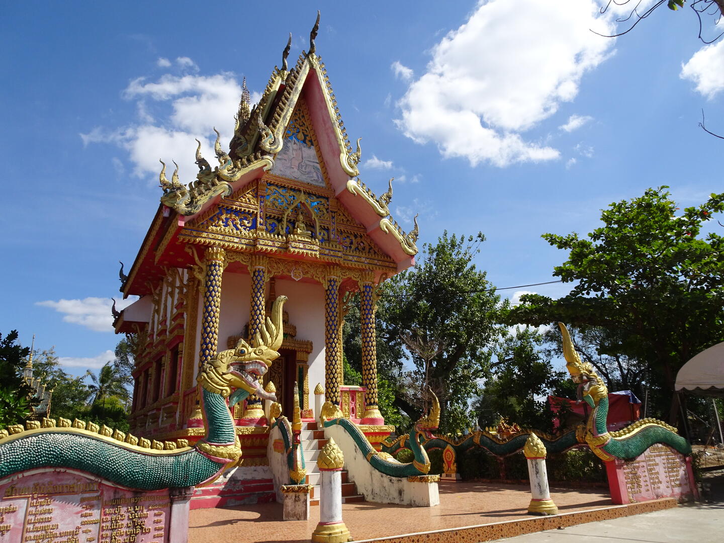 Zwischen den Bauten eines Tempels ist der Mekong zu sehen Wo?Nach Rechtsklick