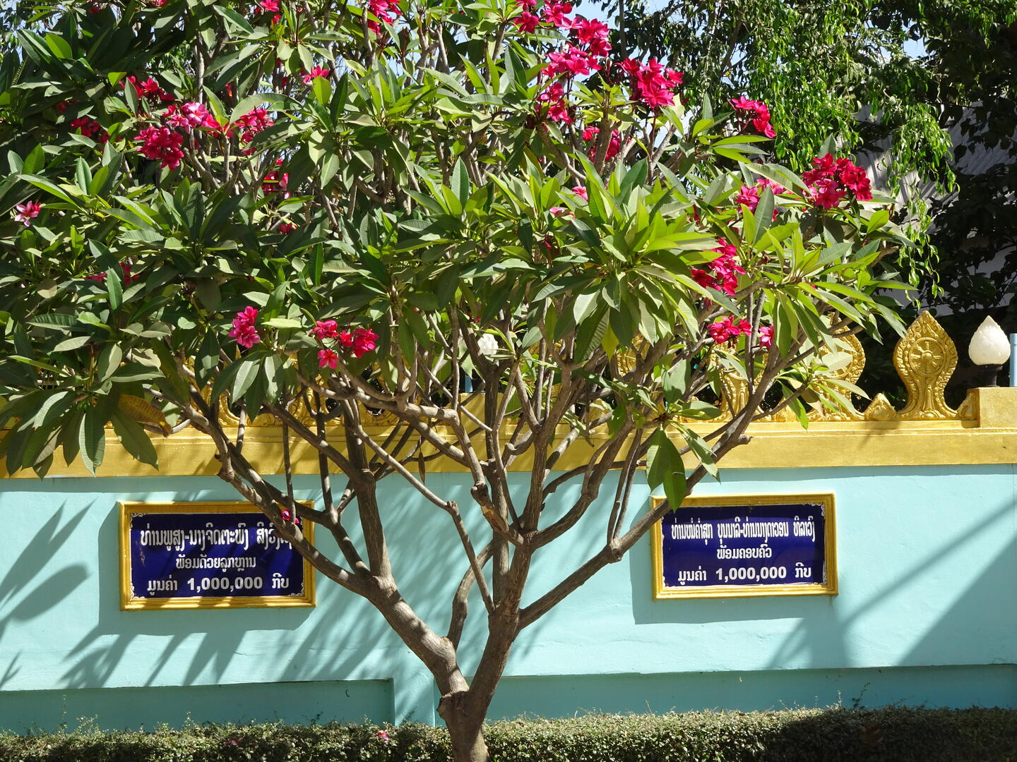 Bereits mit einer Spende von 1.000.000 Kip (entspricht 44 €) zugunsten des Tempels wird man mit einer Plakette an der Außenmauer geehrt; in Deutschland wären damit nicht einmal die Kosten für die Tafel gedeckt Wo?Nach Rechtsklick