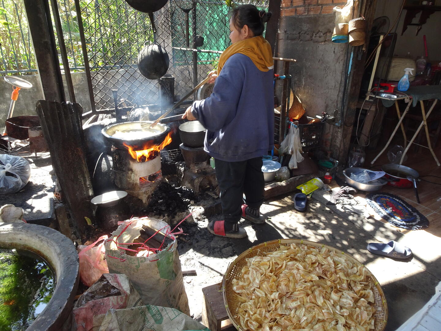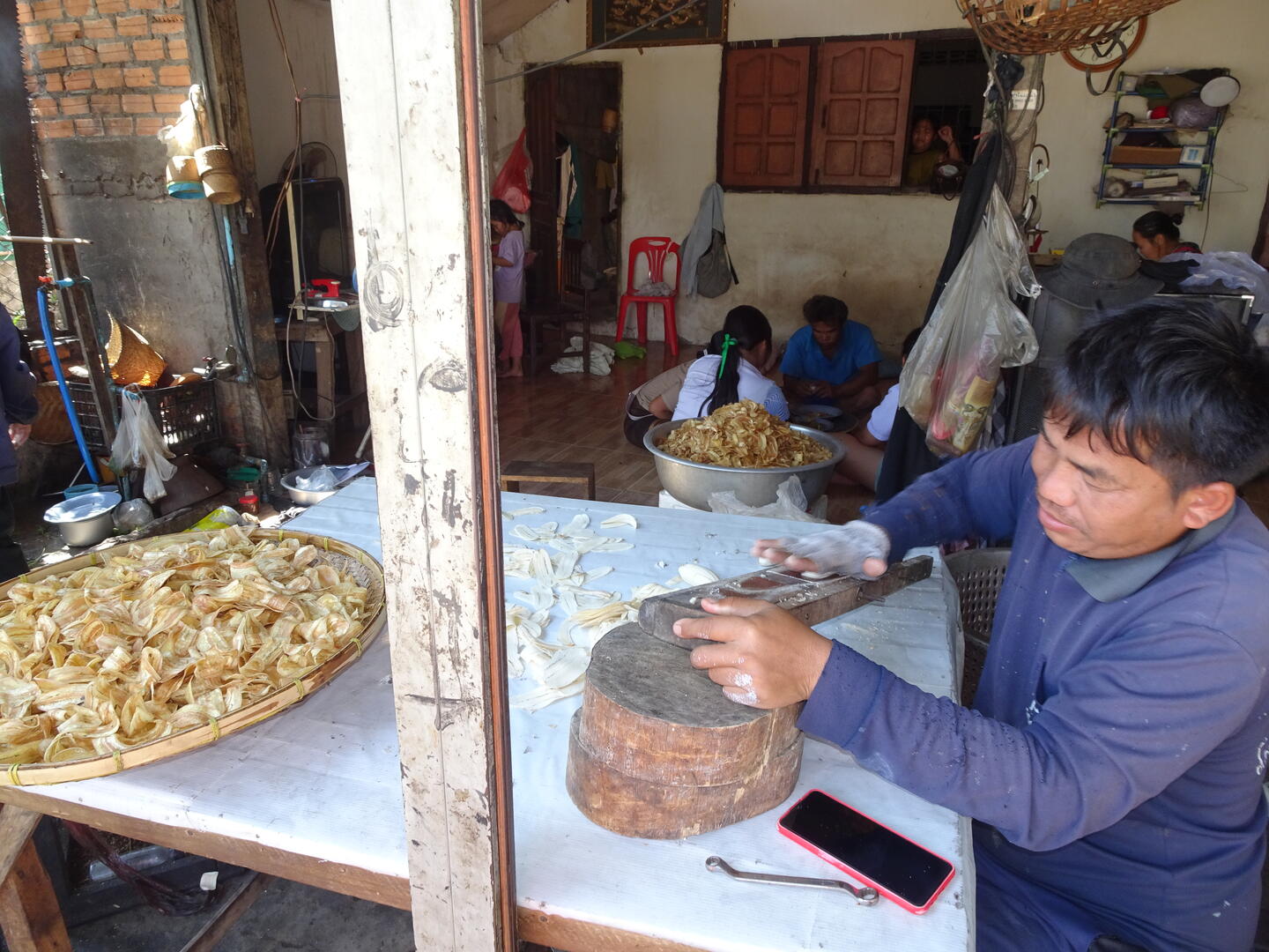 Um unsere Sachen zu waschen, kauften wir für etwas mehr als einen Euro eine große Waschschüssel. Es gibt zwar Wäschereien, doch sind wir nicht sicher, ob z. B. die Sitzpolster unserer Fahrradhosen die Wäsche unbeschadet überstehen würden. Und da wir nicht so schnell an Ersatz kommen würden, verzichten wir auf derartige Experimente. So bequem wie in Malaysia und Thailand ist es in Laos nicht. Selbst in größeren Städten, Savannakhet ist die zweitgrößte des Landes, gibt es keine Waschsalons, die den Vorteil haben, dass man dort das Programm und die Temperatur selbst bestimmen kann.