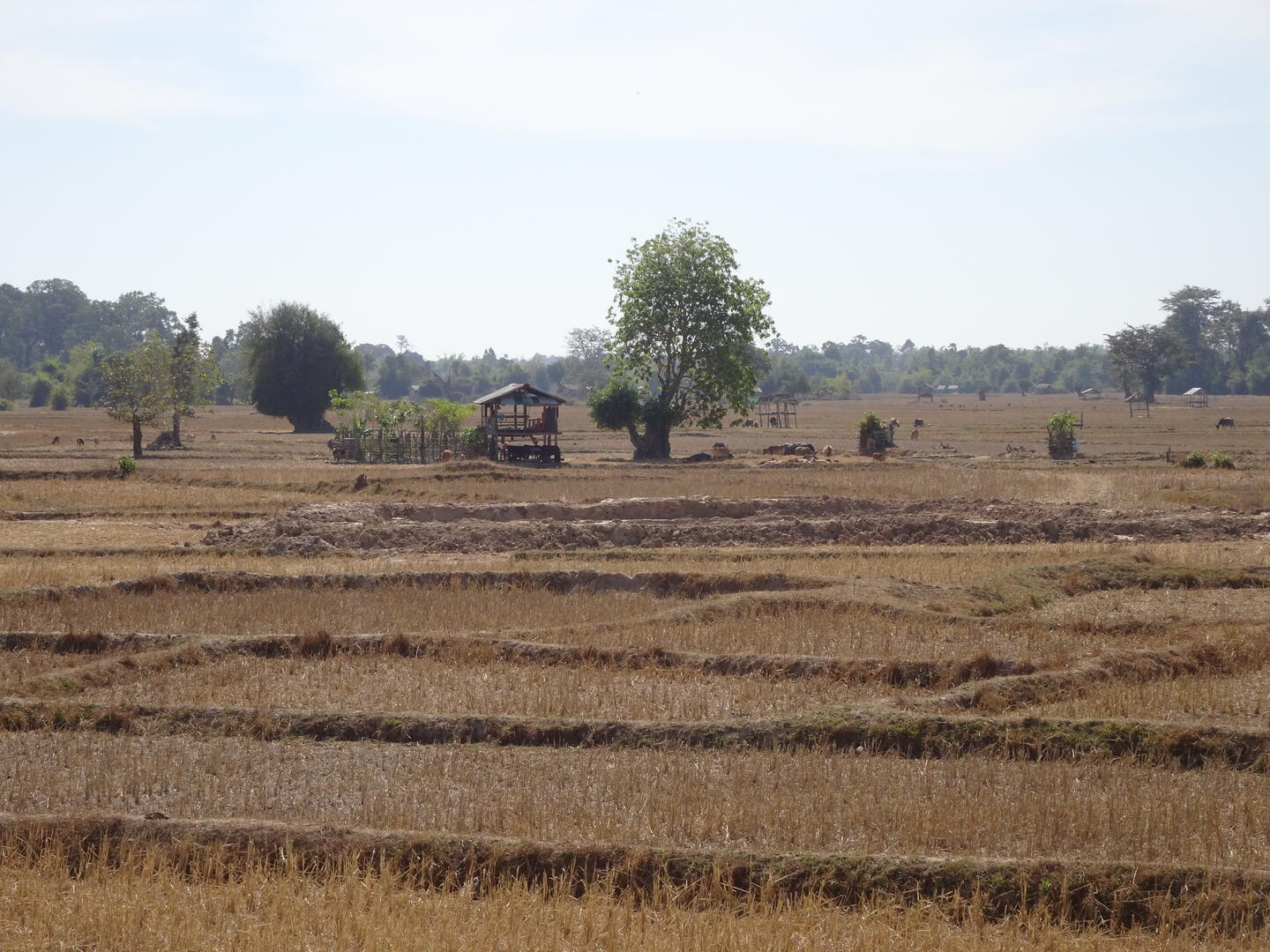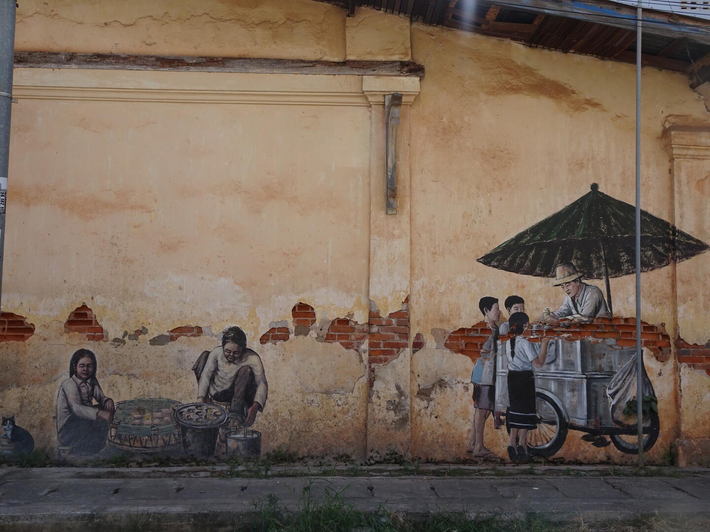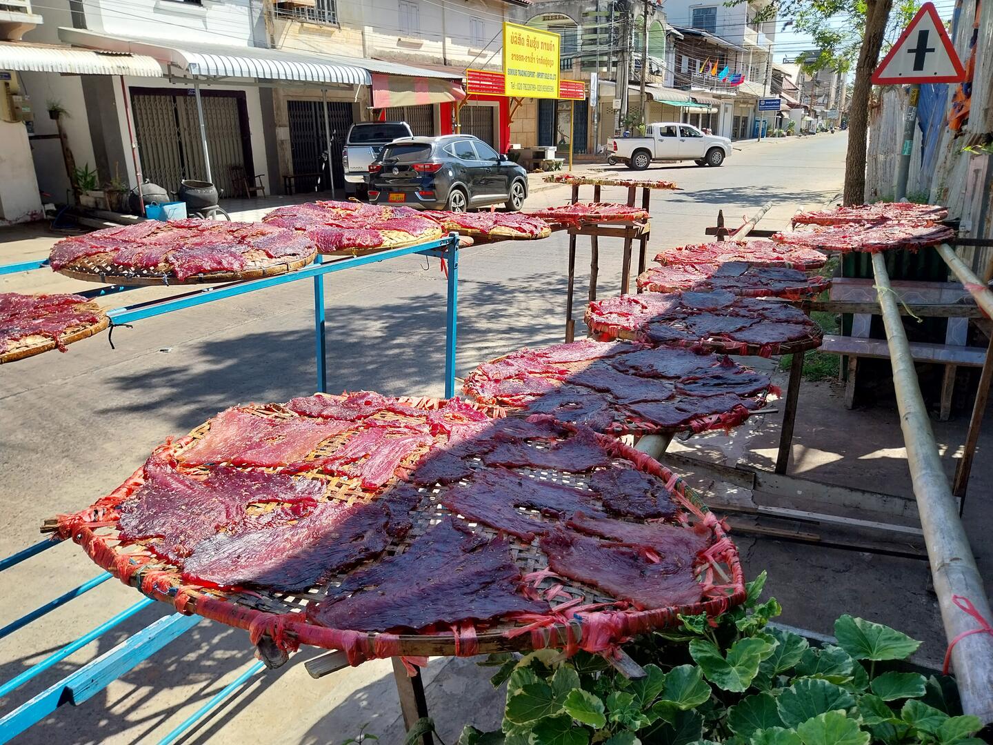 Heute Morgen hatten wir schnell den AH16 erreicht. Der Straßenzustand ist viel besser als befürchtet und es herrscht wenig Verkehr. Viele LKW aus Thailand benutzen diese Straße nach Vietnam. Auffällig ist, dass Personen zumeist in Sammeltaxis transportiert werden. Das sind Pick-ups, die an den Seiten der Ladefläche und in der Mitte, parallel zur Fahrtrichtung, Sitzbänke haben und feste Routen ohne Fahrplan fahren. Neben den Fahrgästen wird deren Gepäck mitgenommen, das oft einen erheblichen Umfang einnimmt. Selbst Motorroller und Ziegen werden – oft auf dem Dach – transportiert. Relativ früh erreichten wir unsere Unterkunft. Die Zeit reichte noch zum Wäschewaschen. Ein Restaurant für das Abendessen fanden wir auch.