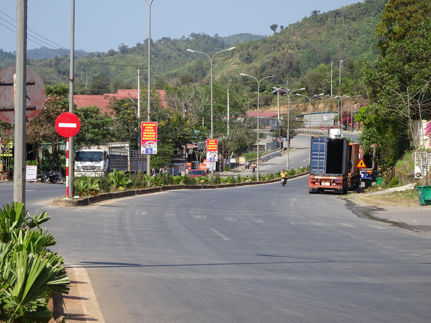 Es standen noch weitere 17 km zum Hotel an. Die hatten es in sich. Nachdem wir bis zur Grenze schon etliche Höhenmeter bewältigt hatten, wartete nach der Grenze noch ein langer Anstieg. Die weiter im Norden verlaufende Straße, die wir während unseres ersten Teils auf dem Weg von Vietnam zum Mekong zu bewältigen hatten (10. April 2019), war jedoch wesentlich unangenehmer. Wie am Vortag blies der Wind kräftig von vorn, sodass zumindest Dagmar froh war, als wir unser Hotel erreichten. Es war noch früh genug um unsere Fahrradsachen zu waschen, denn morgen wollen wir bis zum kurz vor der Küste liegenden Đông Hà fahren.