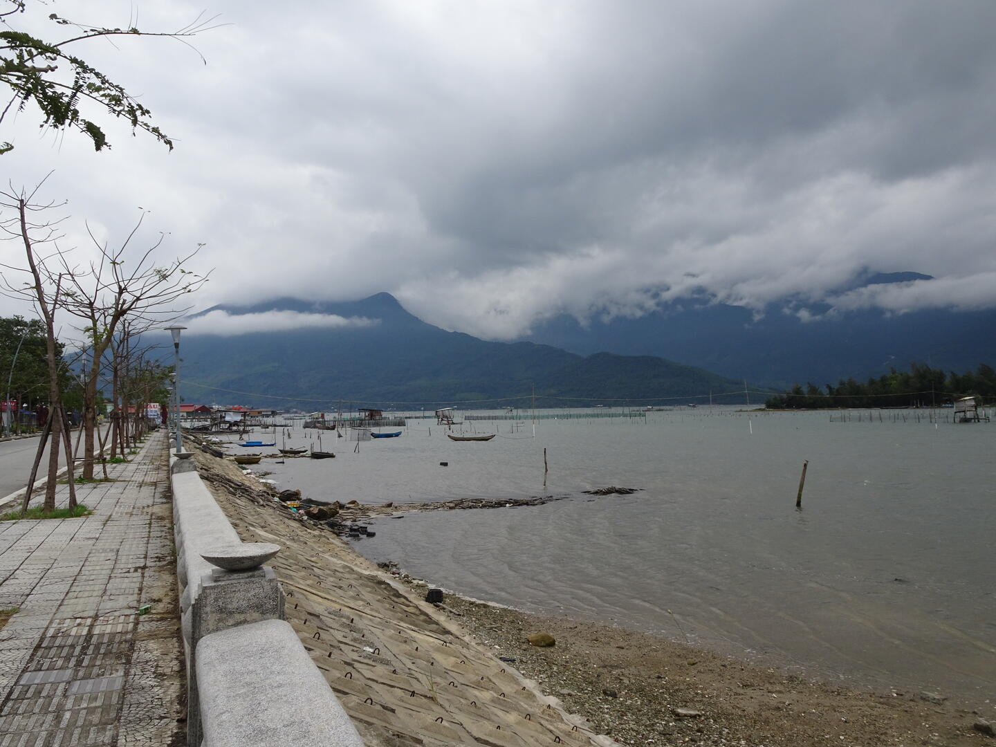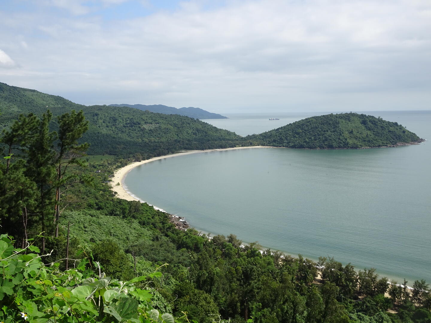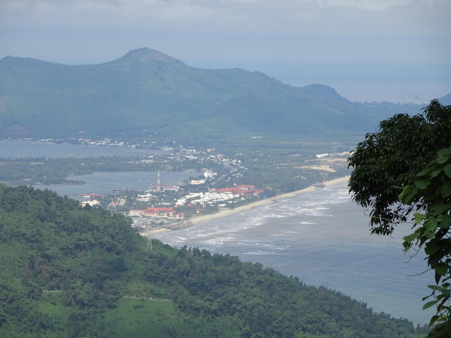 Etwa 10 km lang ist der Aufstieg von fast Meereshöhe auf den etwa 480 m hohen Đèo Hải Vân. Entschädigt wurden wir durch spektakuläre Ausblicke, die uns das dort nicht häufig anzutreffende gute Wetter gewährte. Nach dem Aufstieg gönnten wir uns auf der Passhöhe den verdienten vietnamesischen Kaffee. Zur ebenfalls 10 km langen Abfahrt, meist mit Blick auf Đà Nẵng, zogen wir unsere Windjacken an.