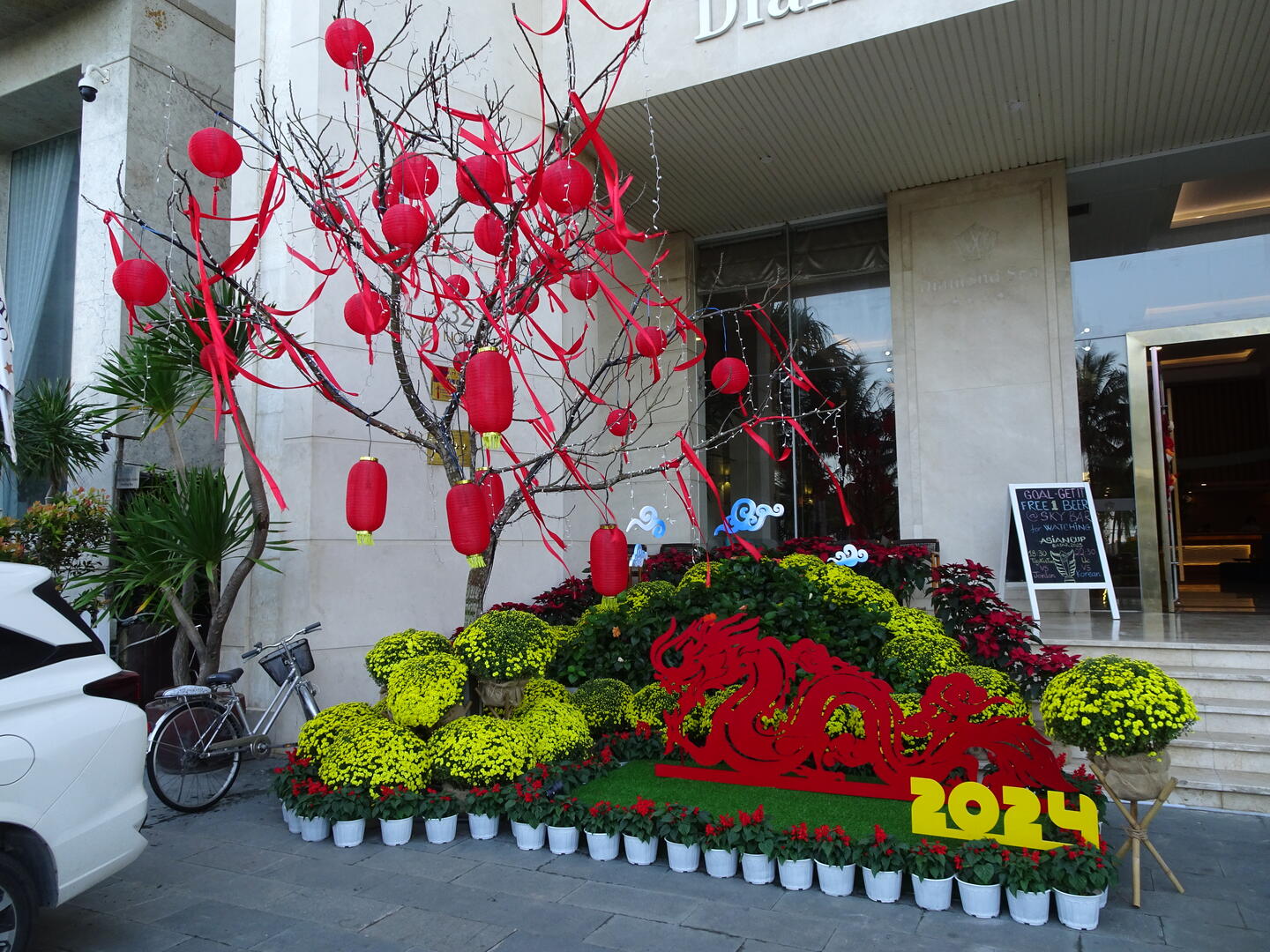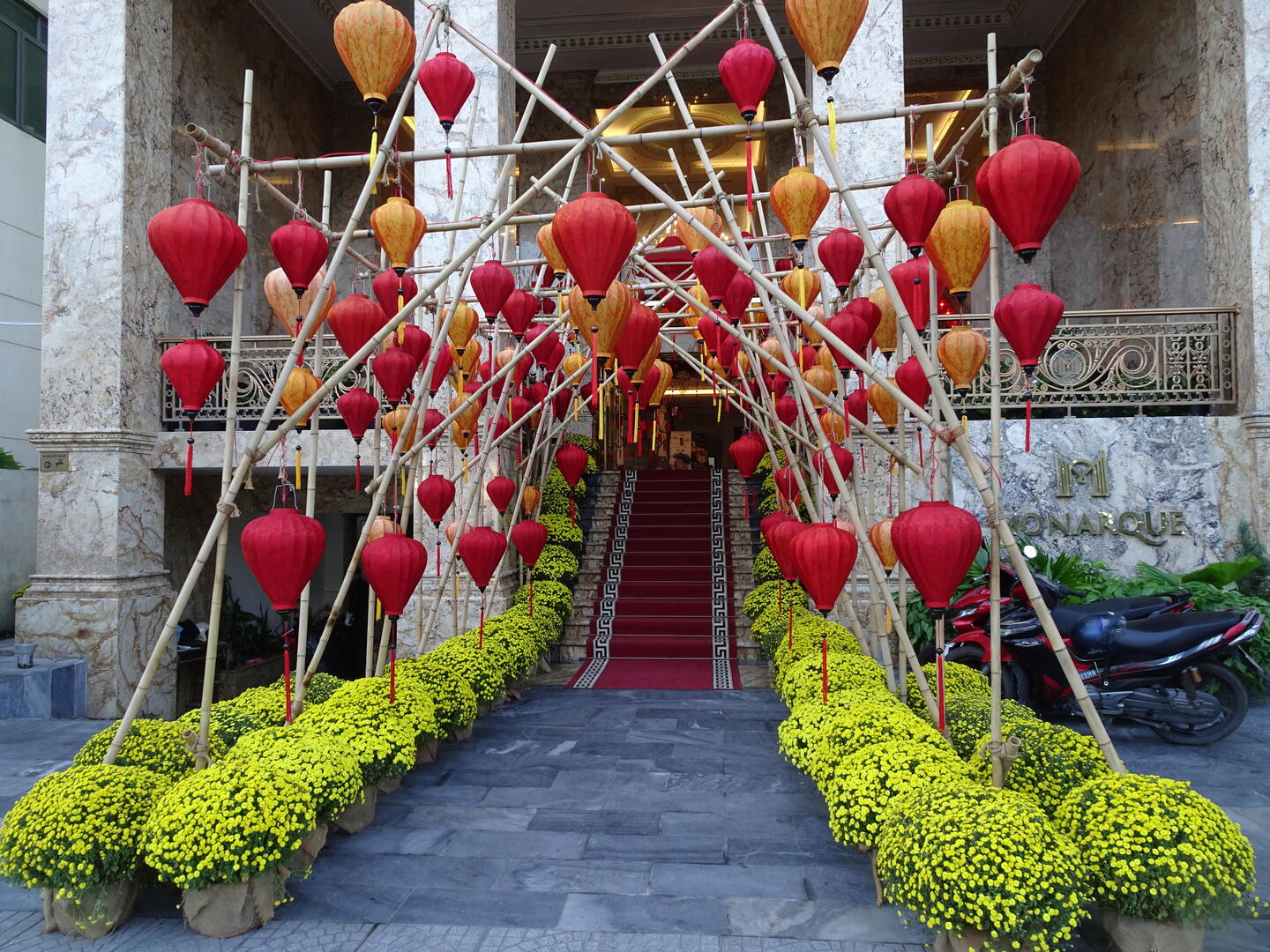 Wir bewohnen ein großes Zimmer mit einem kleinen Balkon. Das Hotel bietet ein gutes Frühstück und auf der 11. Etage einen Swimmingpool mit Blick aufs Meer. Rund um das Hotel sind viele Restaurants und Geschäfte. Das vietnamesische Neujahrsfest (Tết Nguyên Đán) naht und überall herrscht geschäftiges Treiben, denn an diesem wichtigen Termin entscheidet sich, so die Überzeugung, wie das kommende Jahr verlaufen wird.