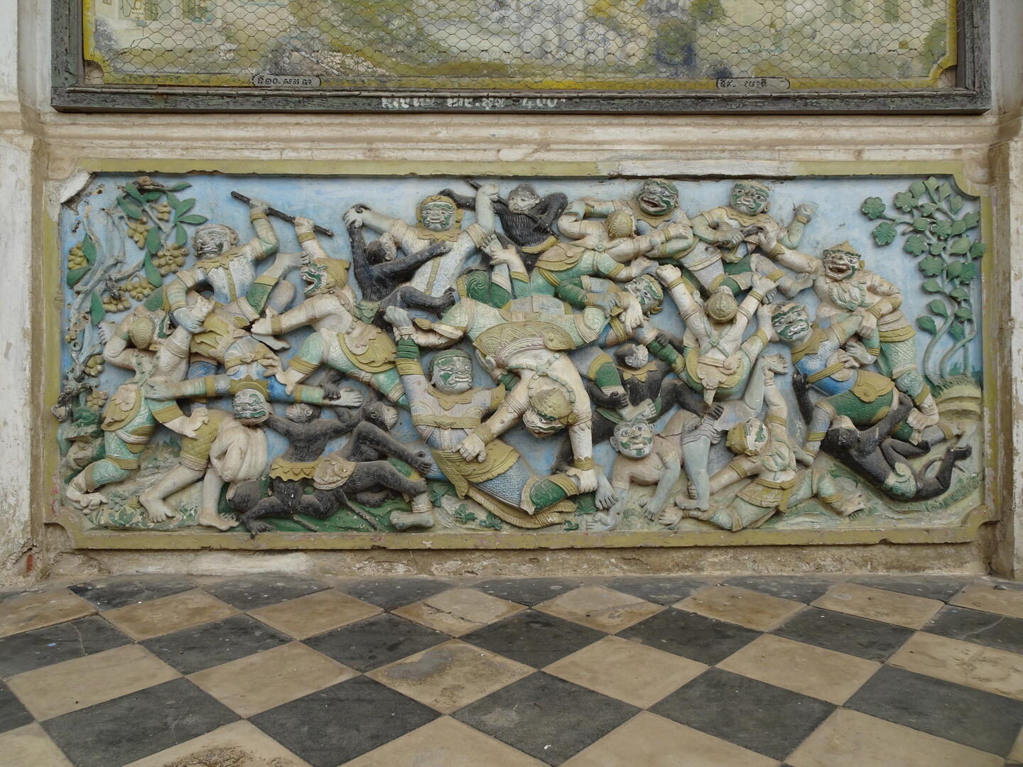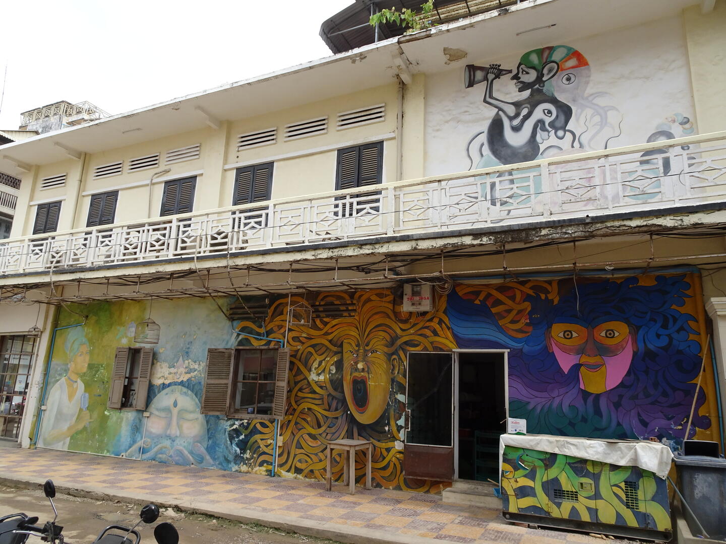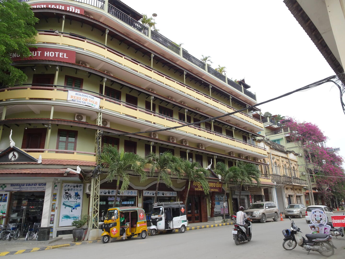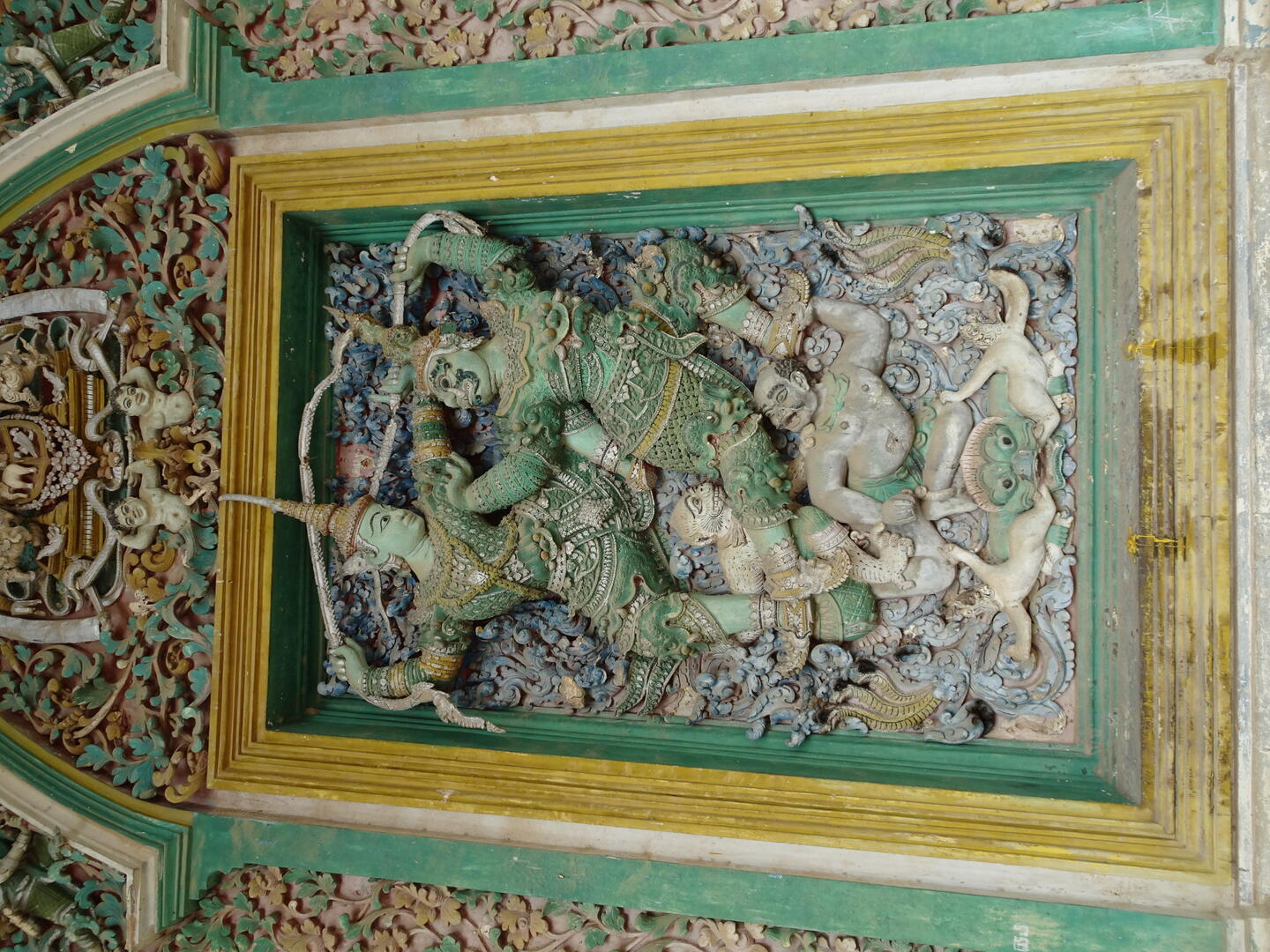 Nach einem ausgiebigen Frühstück in unserem Hotel fuhren wir heute um kurz nach halb acht los. Die Temperatur lag trotz des abendlichen Gewitters bei etwa 27 Grad. Wieder war es die für Kambodscha typische flache Etappe durch trockene, abgeerntete Reisfelder. Nach etwa der Hälfte der heutigen Strecke frischte der Wind auf und wehte uns kräftig ins Gesicht. Dagmar bemühte sich, im Windschatten von Diez zu fahren. Nach anstrengenden 110 Kilometern erreichten wir den Grenzübergang nach Thailand. Dagmar blieb wie immer zunächst bei den Rädern, während Diez als Erster die Grenzformalitäten absolvierte. Wir hatten schon länger den Himmel beobachtet und nun zogen binnen Minuten dunkle Wolken auf. Schon nach dem ersten Blitz fielen dicke Tropfen und wir stellten uns und unsere Räder unter einem Dach unter. Der Wolkenbruch dauerte zum Glück nicht lange und wir konnten unsere Fahrt bald fortsetzen. Während Dagmar im Abfertigungsgebäude war, montierte Diez die Rückspiegel wieder auf die rechte Seite. Nach Laos, Vietnam und Kambodscha haben wir in Thailand wieder Linksverkehr. Wir staunen selbst darüber, wie schnell wir uns inzwischen den jeweiligen Verhältnissen anpassen.