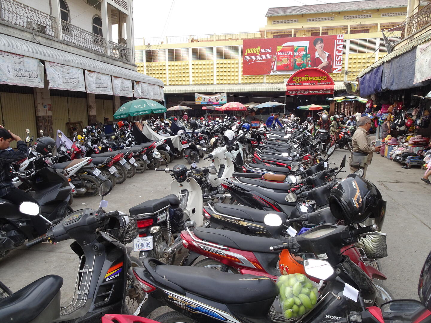 Mopeds vor dem Boeung Chhouk Markt Wo?Nach Rechtsklick