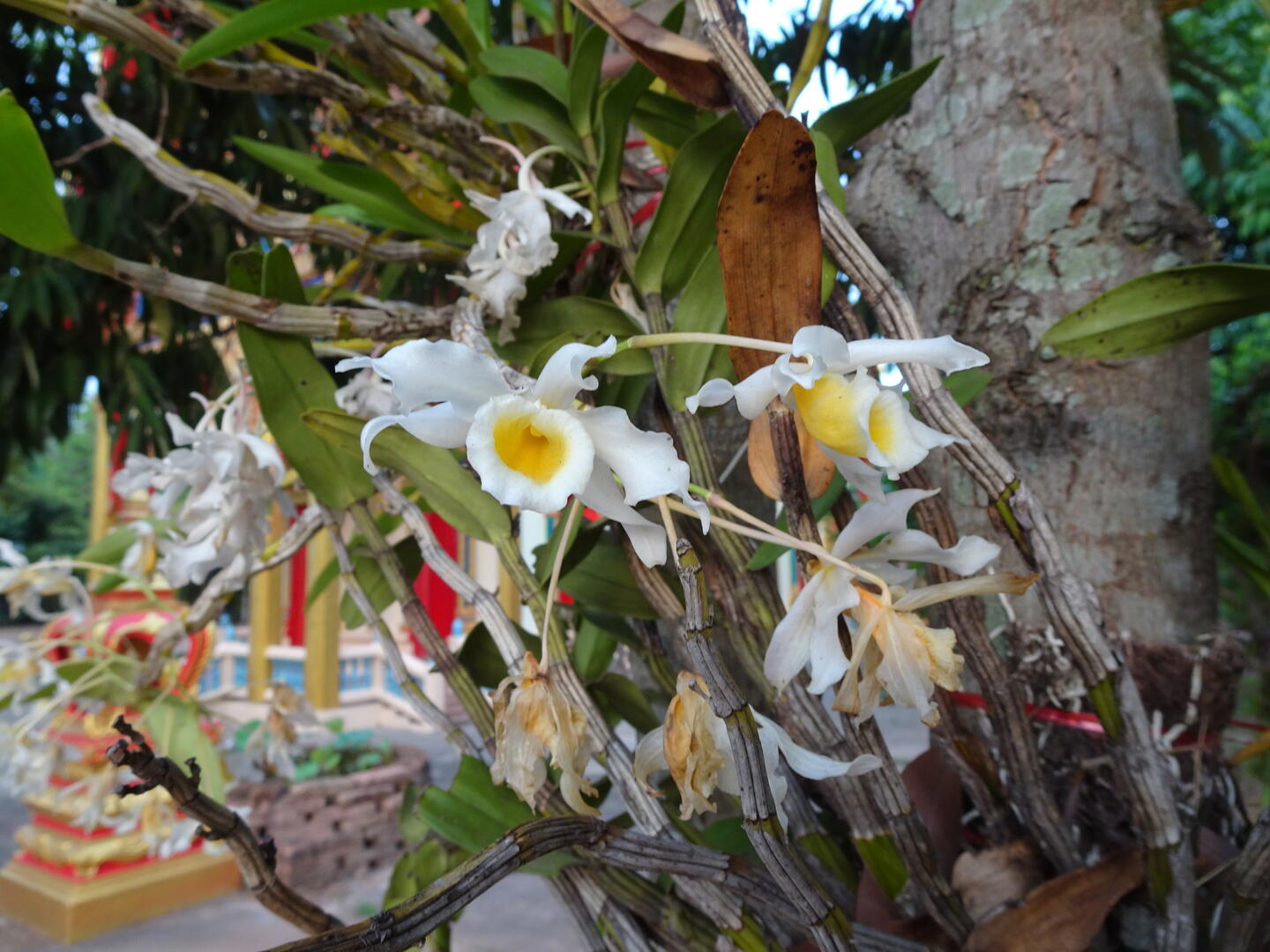 Orchideen, die an den Bäumen des Tempels wachsen Wo?Nach Rechtsklick