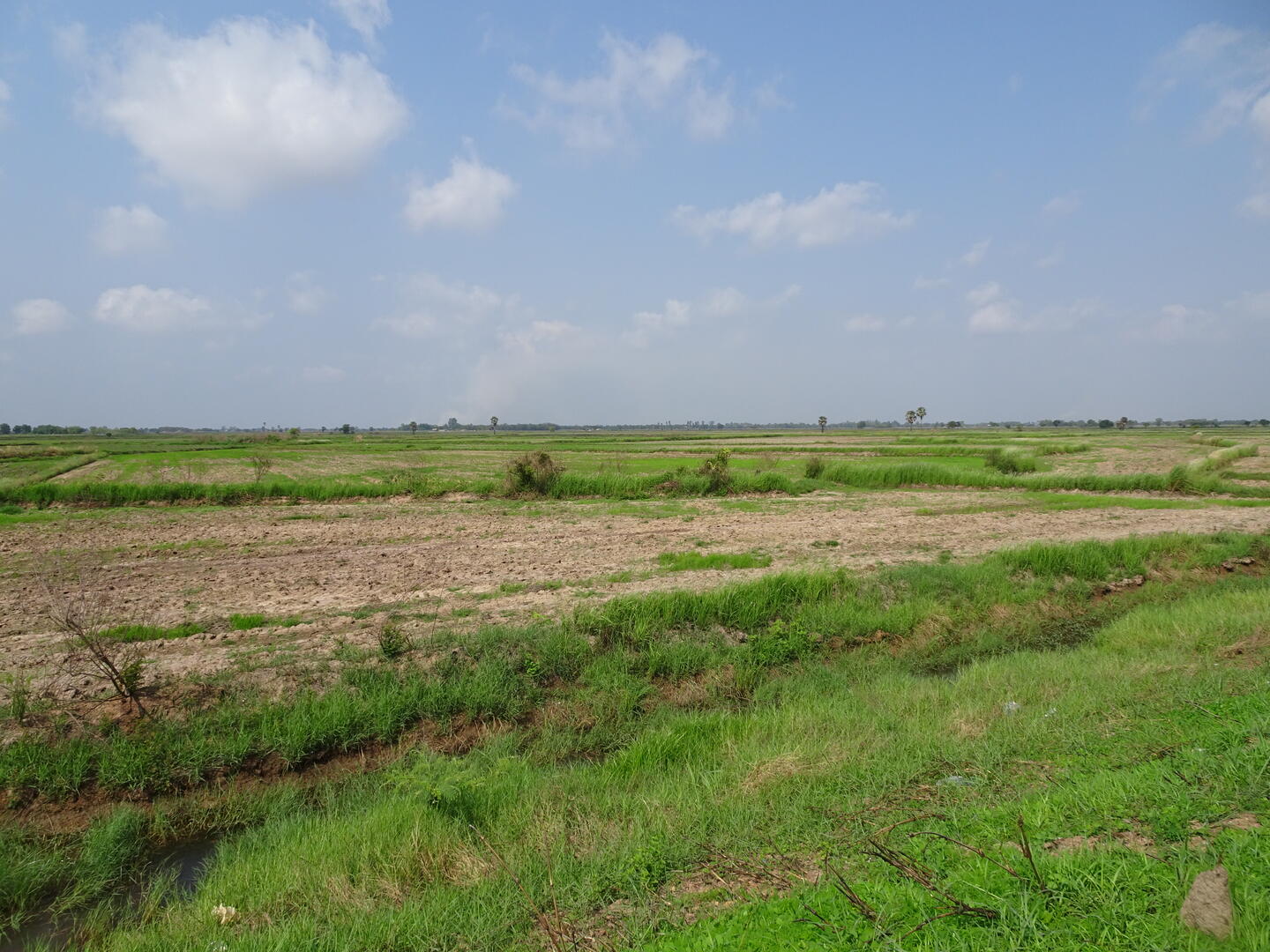 Je weiter wir nach Westen kommen, desto grüner wird es. Nach den ausgedörrten Landschaften in Kambodscha fallen die grünen Reisfelder besonders auf. Es scheint hier häufiger geregnet zu haben und die Niederschlagswahrscheinlichkeit der nächsten Tage ist nach langer Zeit wieder ein Thema geworden.