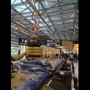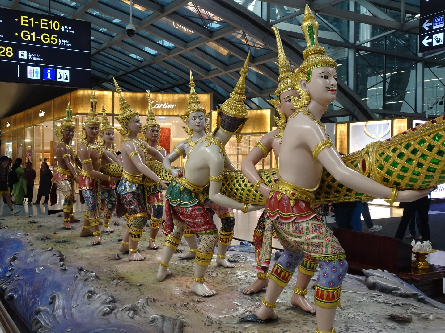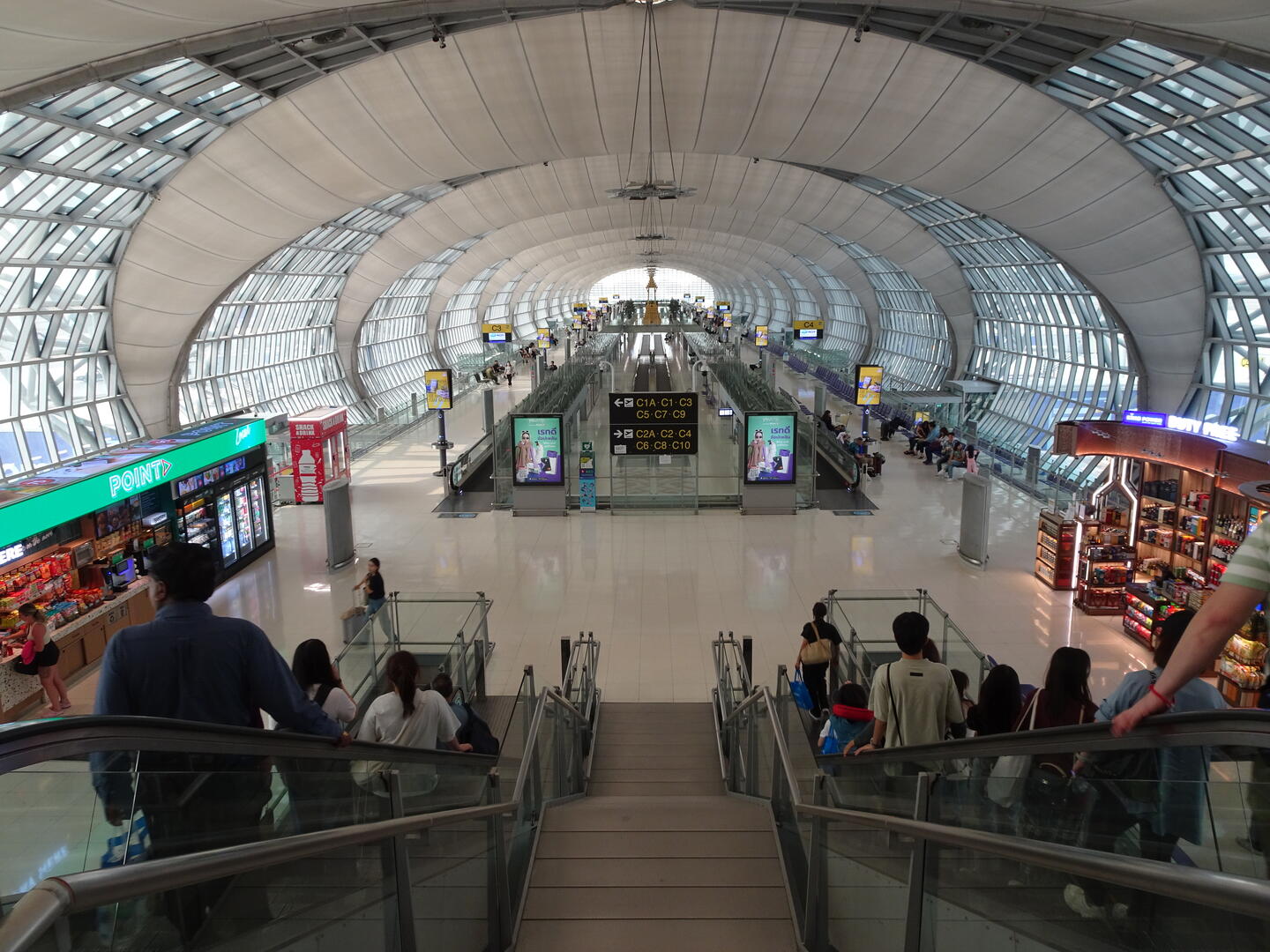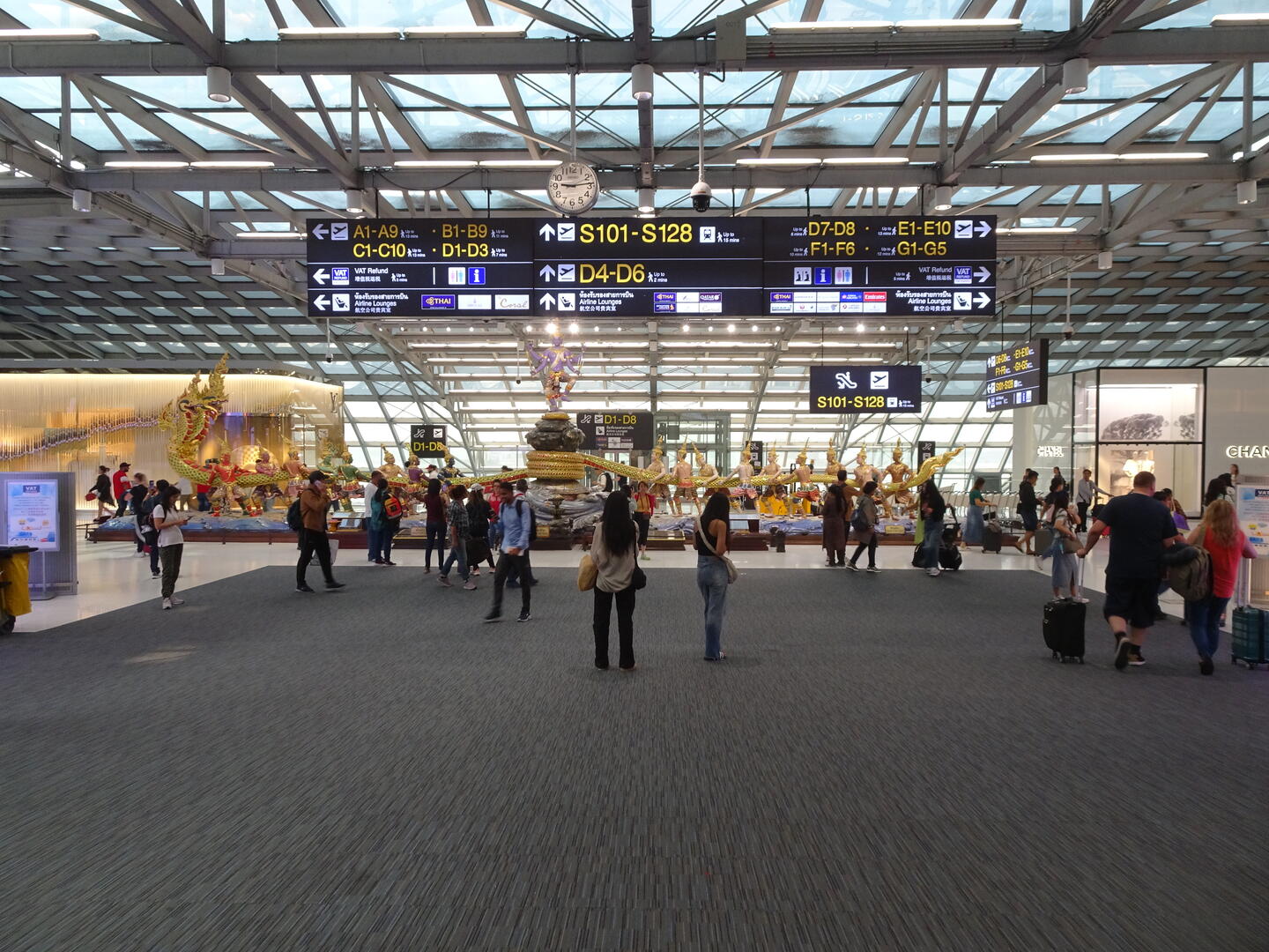 Für die Fahrt zum auf der anderen Seite von Bangkok liegenden Flughafen reservierten wir einen Pickup mit einem regendichten Aufbau über der Ladefläche. Wegen der unbekannten Fahrzeit planten wir mit einem üppigen Zeitpuffer. Entsprechend früh erreichten wir den Flughafen und konnten direkt nach Öffnung des Check-ins unser Gepäck aufgeben. Alles verlief reibungslos bis wir, bereits im Flugzeug sitzend, informiert wurden, dass ein Passagier nicht mitfliegen würde. Leider hatte er sein Gepäck bereits aufgegeben, das im Frachtraum gefunden und entladen werden musste, bevor wir starten konnten. Dadurch verzögerte sich der Start um 51 Minuten. Das bedeutete, dass sich die Landung in Amsterdam von 19:15 Uhr auf 20:06 Uhr verschieben würde und uns bis zum Schließen des Gates vom Anschlussflug um 20:20 Uhr nur 14 Minuten bleiben würden.