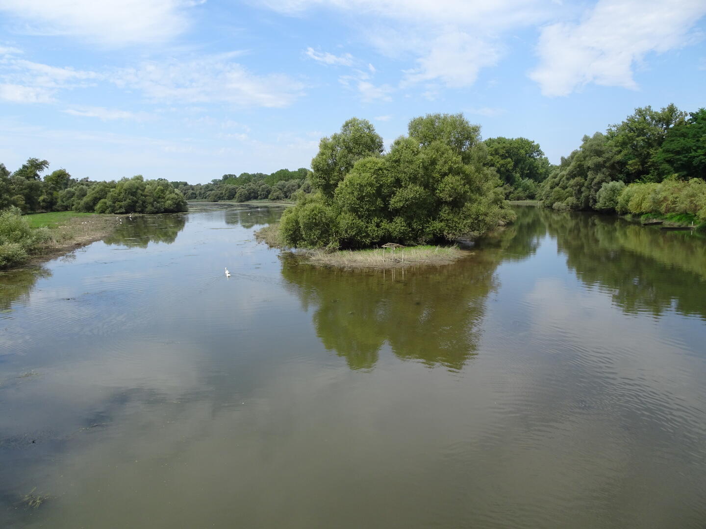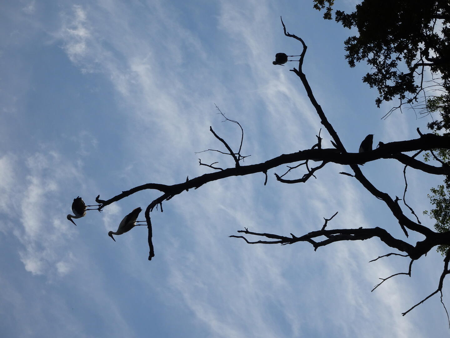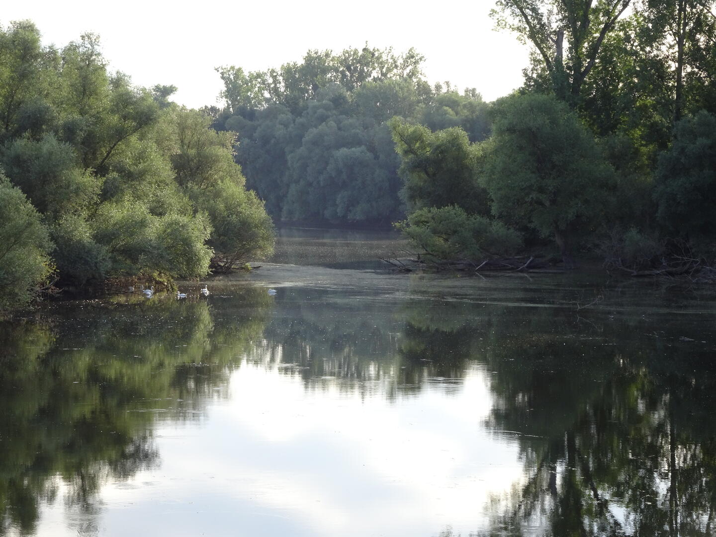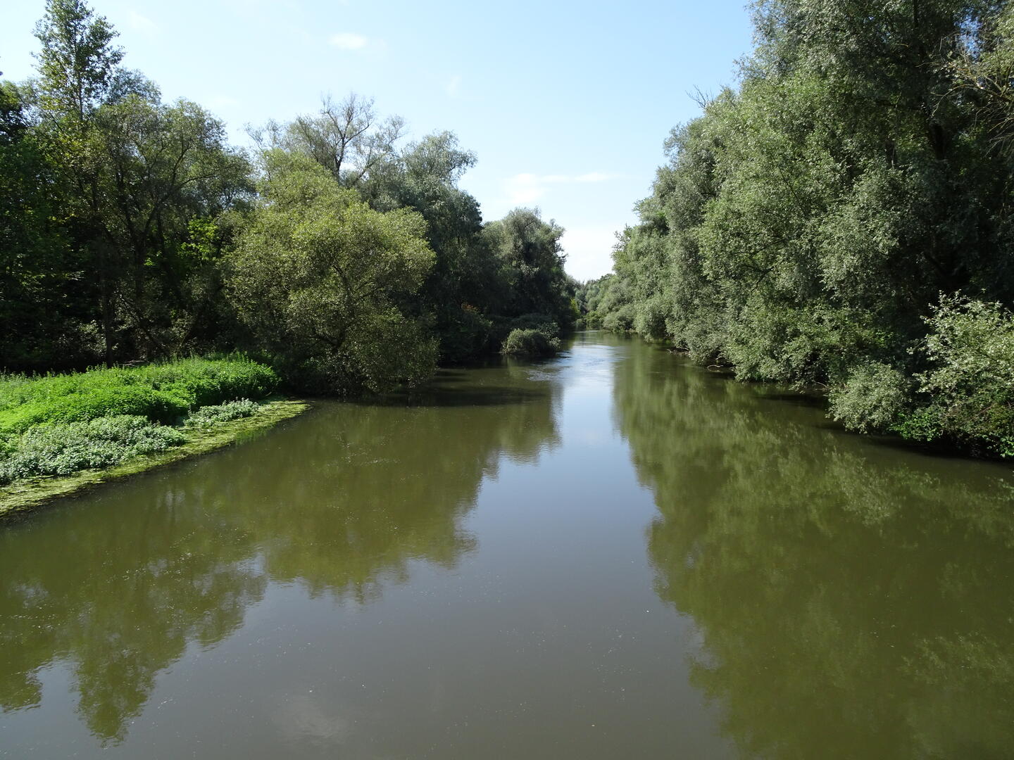 Wir hatten uns nach unserem Ruhetag am Sonntag gut vorbereitet und konnten schon um 7:10 Uhr losfahren. Nach wenigen Kilometern erreichten wir Germersheim, wo wir wieder auf unsere ursprünglich geplante Strecke trafen. Wir fuhren auf dem Hauptdeich des Rheins, sahen den Fluss aber selten, da die Rheinaue dicht mit hohen Bäumen und Büschen bewachsen ist. Gegen halb zehn verdunkelte sich der Himmel. Wir waren unsicher, ob wir uns unterstellen oder riskieren sollten, nass zu werden. Wir stellten uns bei einem Einkaufsmarkt unter und nutzen die Pause zu einem zweiten Frühstück mit einigen Brezeln. Die Entscheidung, weiterzufahren, erwies sich als richtig, denn es begann nur leicht zu regnen und wir hatten das Regengebiet verlassen, lange bevor wir durchnässt waren. Nach etwa 44 km erreichten wir die unspektakuläre Grenze nach Frankreich. Hier verläuft der Fahrradweg öfter abseits vom Autoverkehr durch ein Gebiet, was sich anscheinend weitgehend selbst überlassen wird. Wir sahen an einer Stelle 22 Störche, die sich vermutlich zum Flug in den Süden sammeln. Ein großer Schwarm Gänse hatte wahrscheinlich ähnliches vor und auch die Stare werden wohl bald aufbrechen. Nach etwa 95 km fanden wir ein gutes Hotel mit einem ausgezeichneten Restaurant. Von hier aus wollen wir morgen Straßburg besuchen.