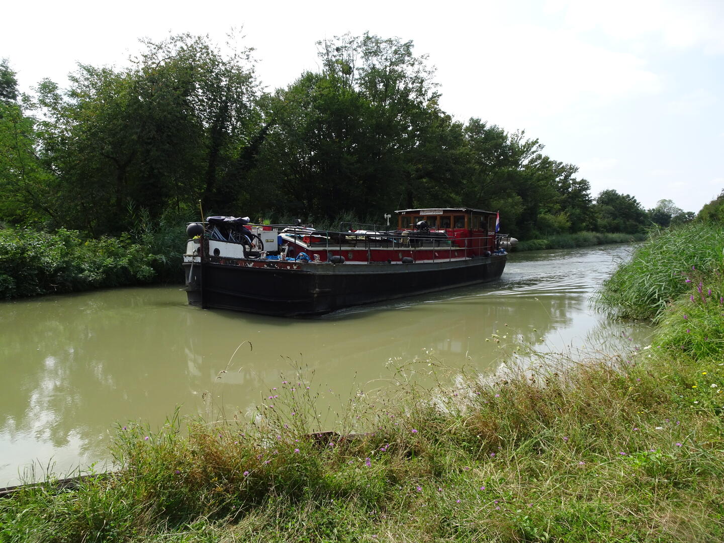 Je weiter wir uns der Saône näherten, nahm der Schiffsverkehr und der Betrieb an den Schleusen zu. Am Nachmittag erreichten wir das Ende des Kanals mit seiner letzten Schleuse. Richtung Mittelmeer fahren die Schiffe auf der breiten, schiffbaren Saône weiter, die später in die Rhône mündet, womit die Verbindung zum Rhein geschlossen wird.