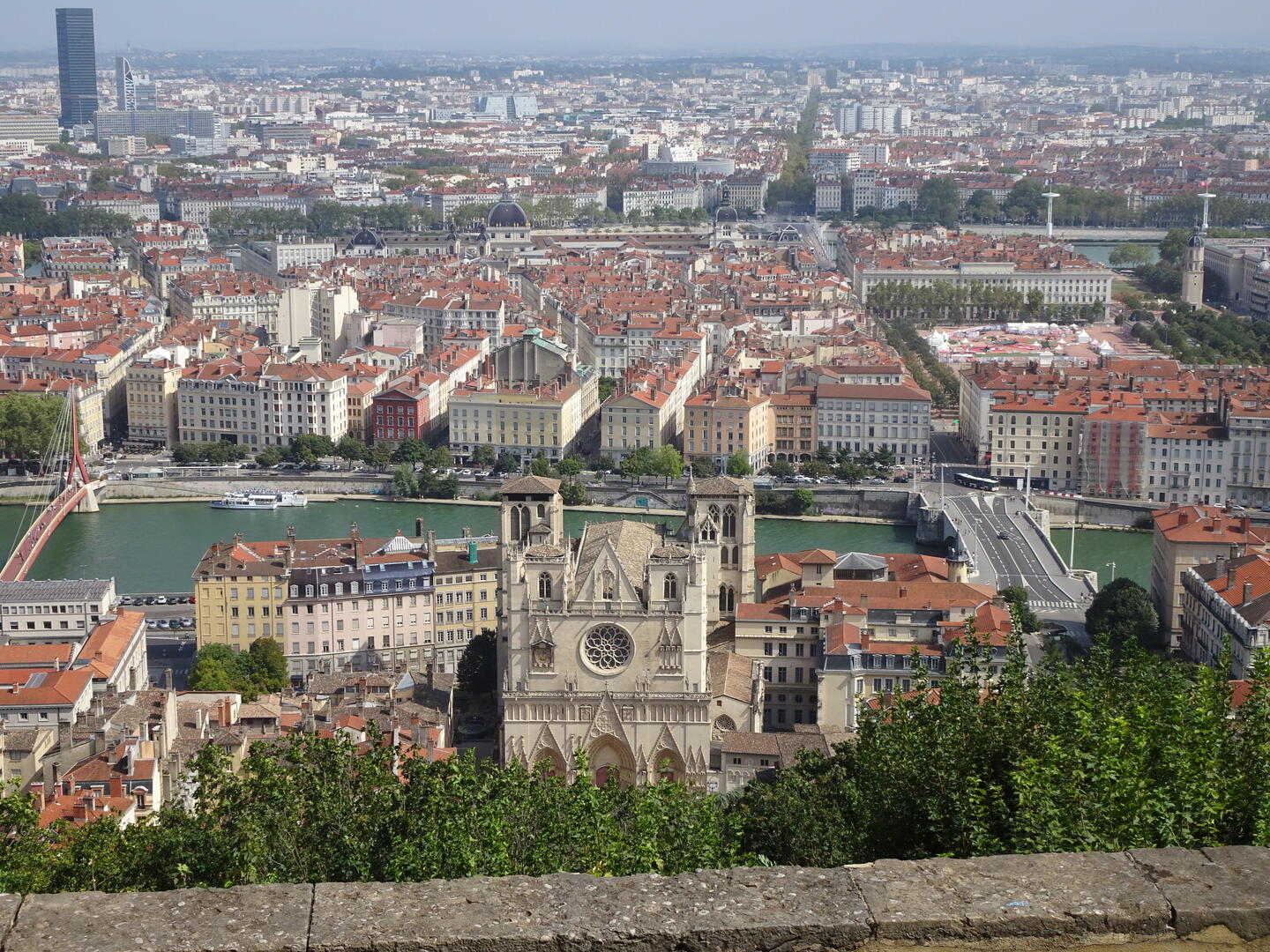 Blick vom Fourvière-Hügel auf die Kathedrale und einen Teil der von der Saône (vorne) und Rhone umflossenen Halbinsel Wo?Nach Rechtsklick